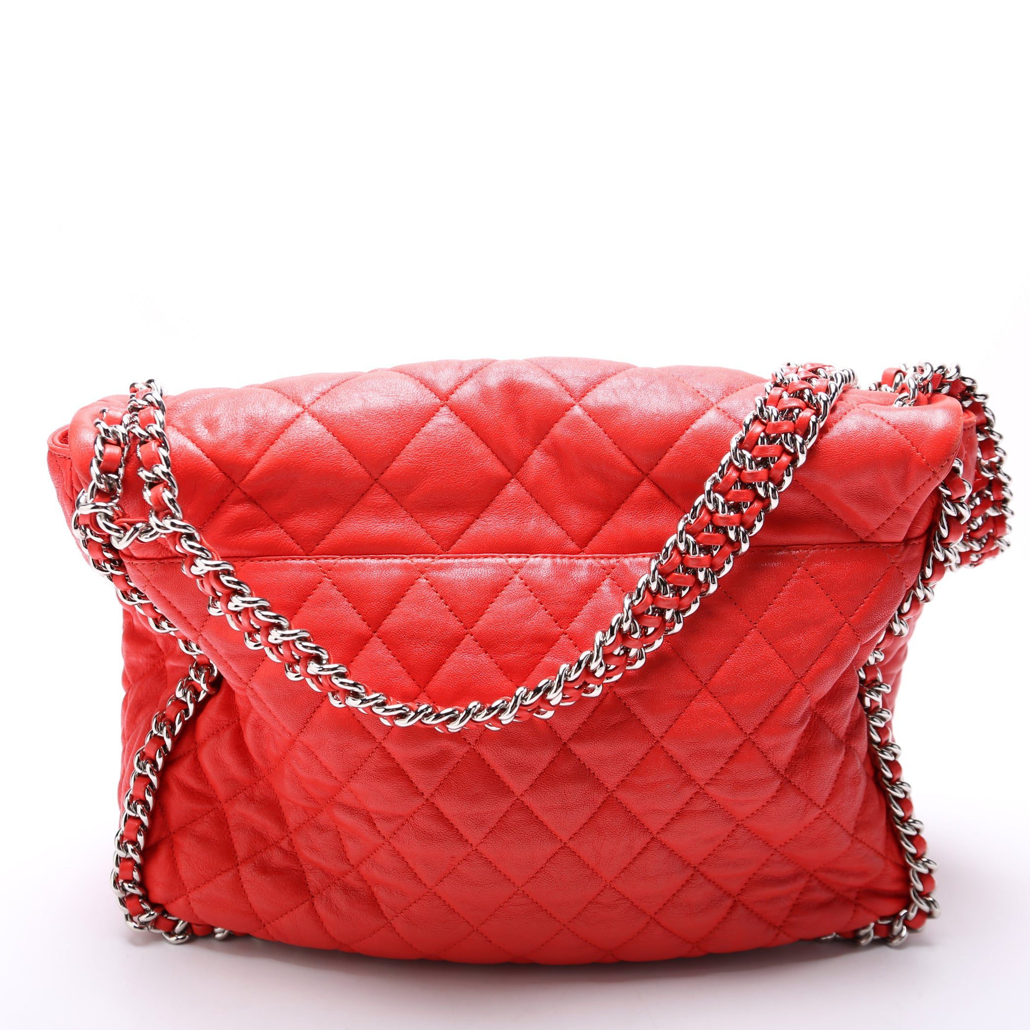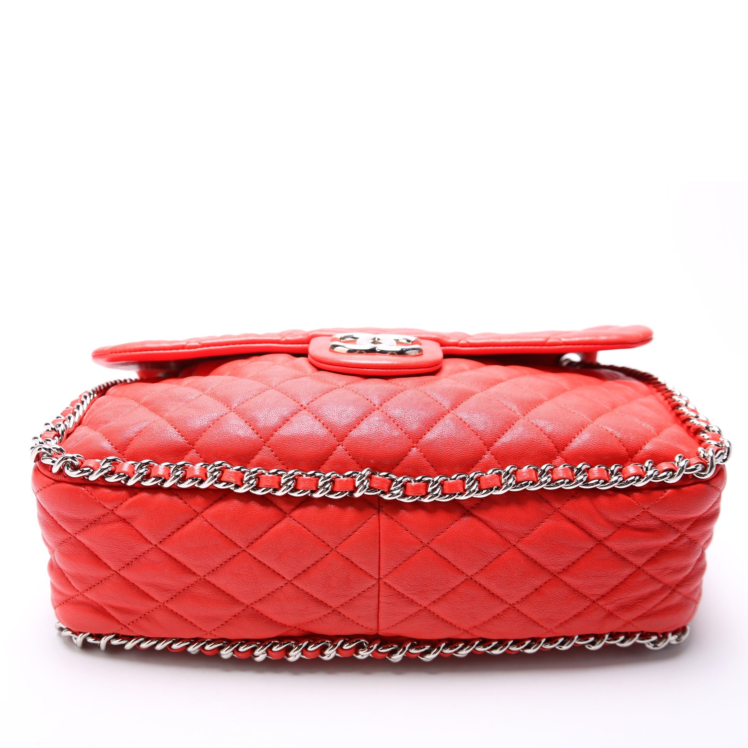 Chanel Chain Around Maxi Flap Bag Quilted Lambskin 15M�. The exterior is in the classic Chanel quilted lambskin leather.