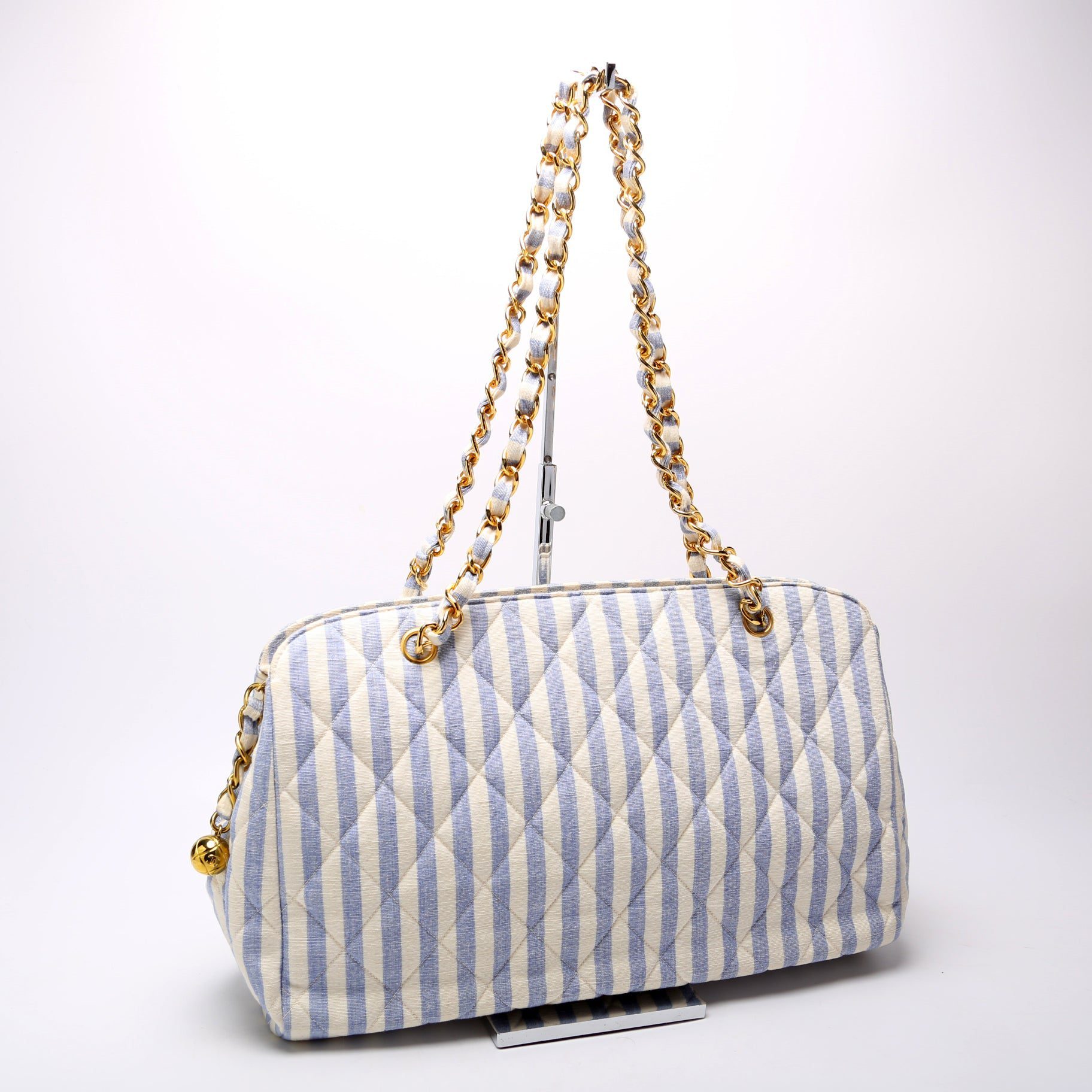 Chanel Chain Tote Striped Linen 3M.