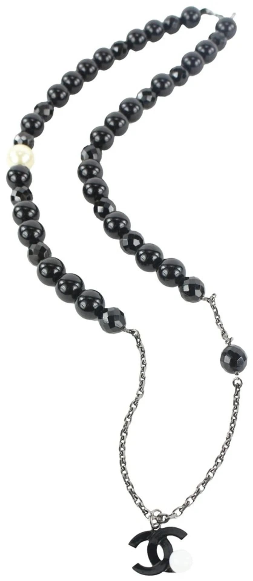 CHANEL 05P BLACK PEARL CC NECKLACE WITH FLOWER DETAILÂ