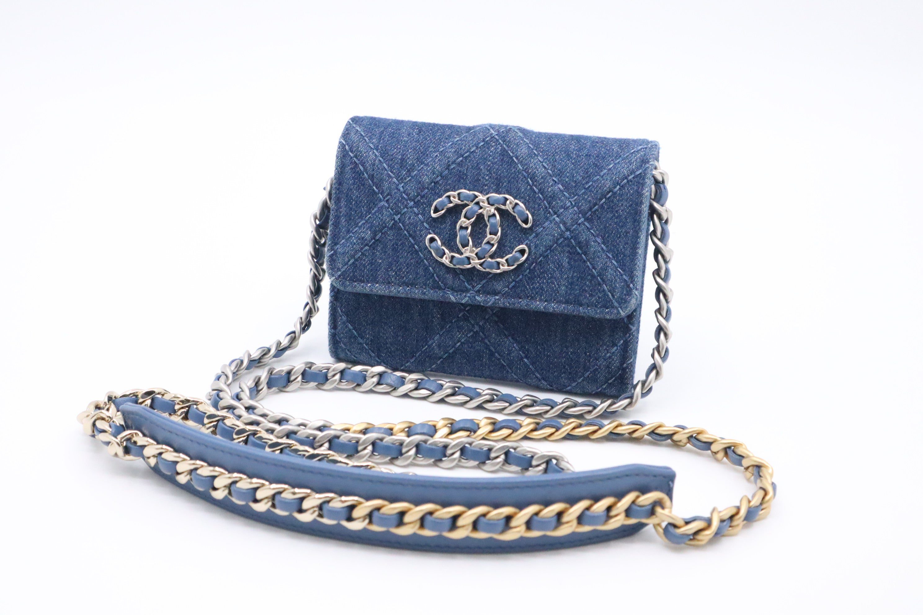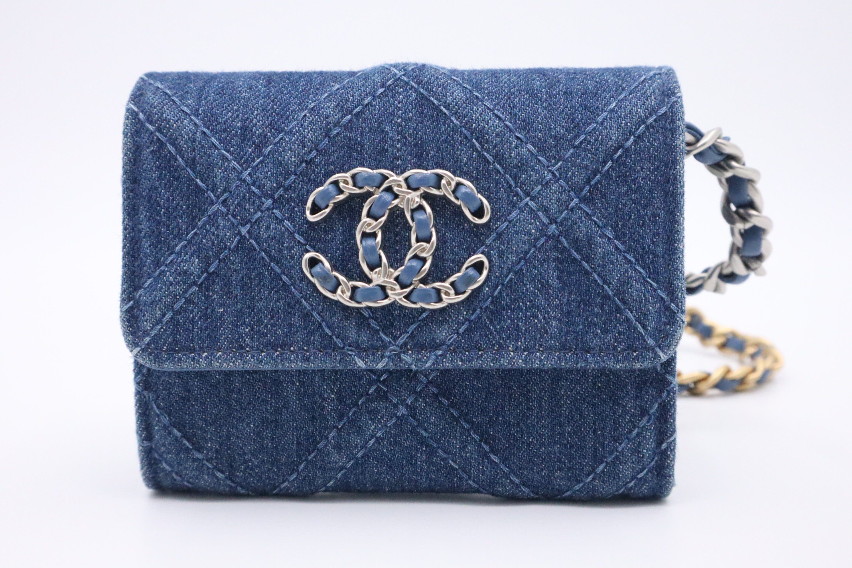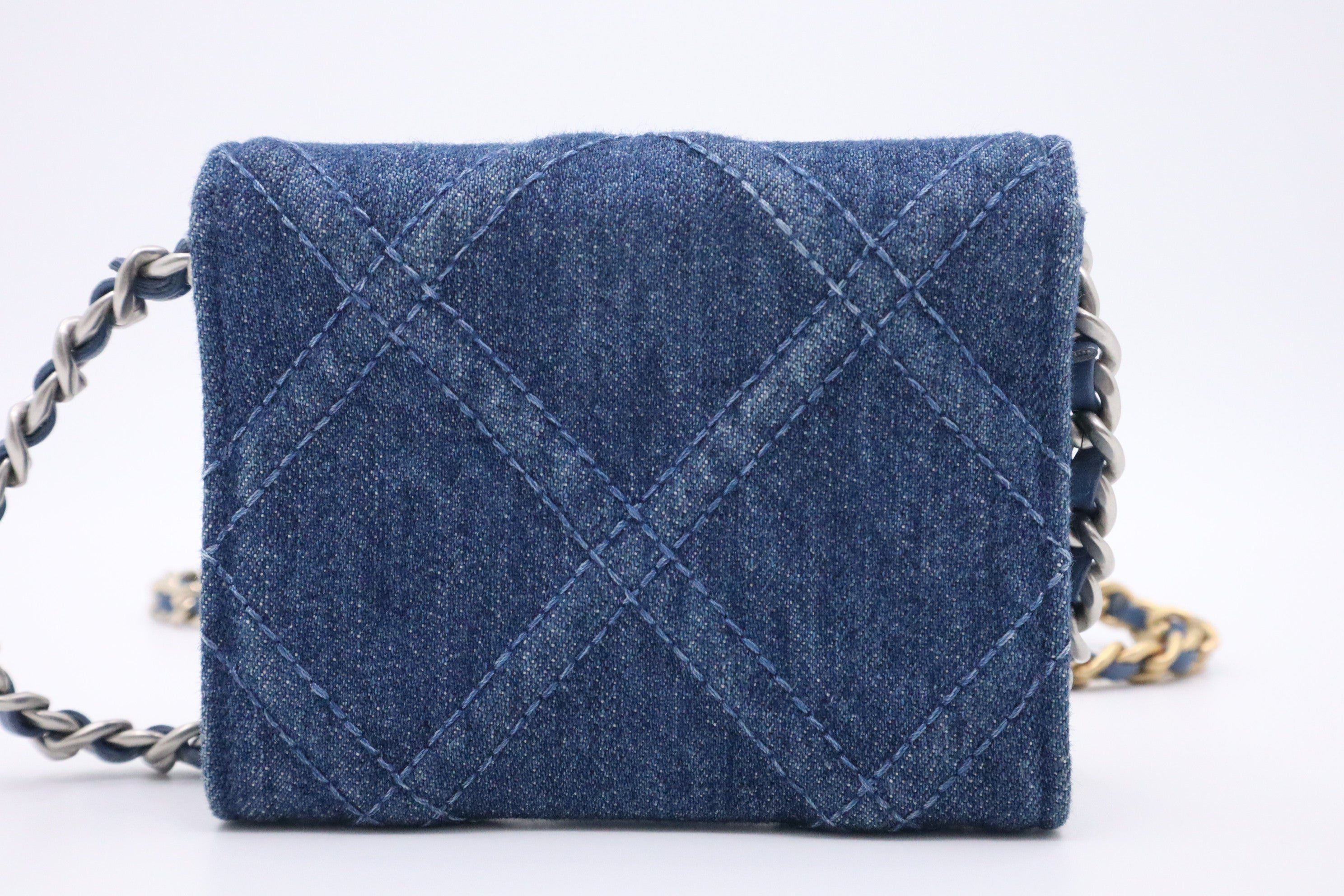 Chanel 19 Card Case on Chain in Denim CanvasChanel 19 Card Case on Chain in Denim Canvas