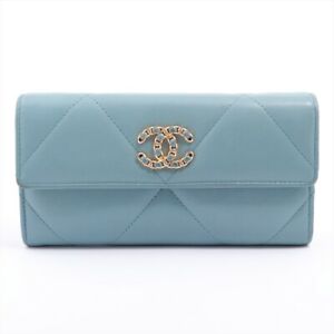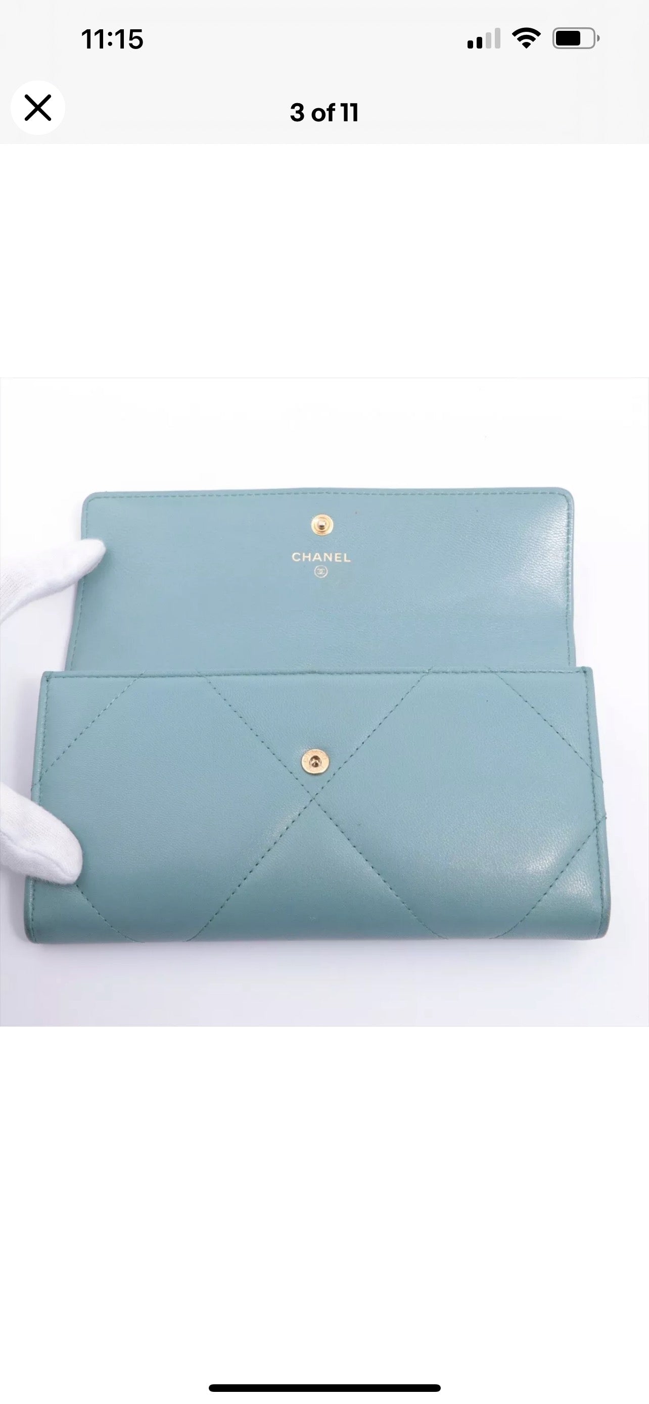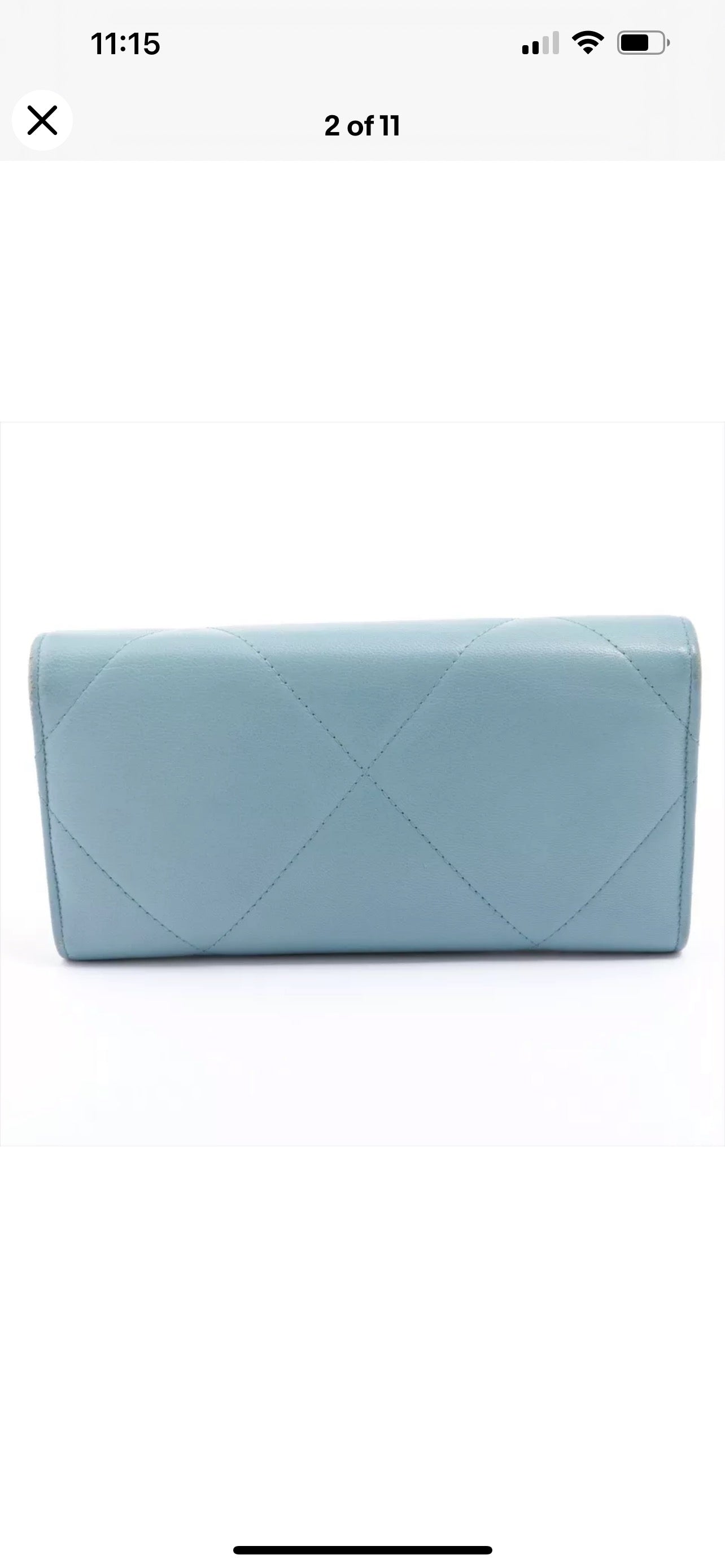 CHANEL CHANEL 19 LAMBSKIN CC FLAP WALLET-TIFFANY BLUEÂ
