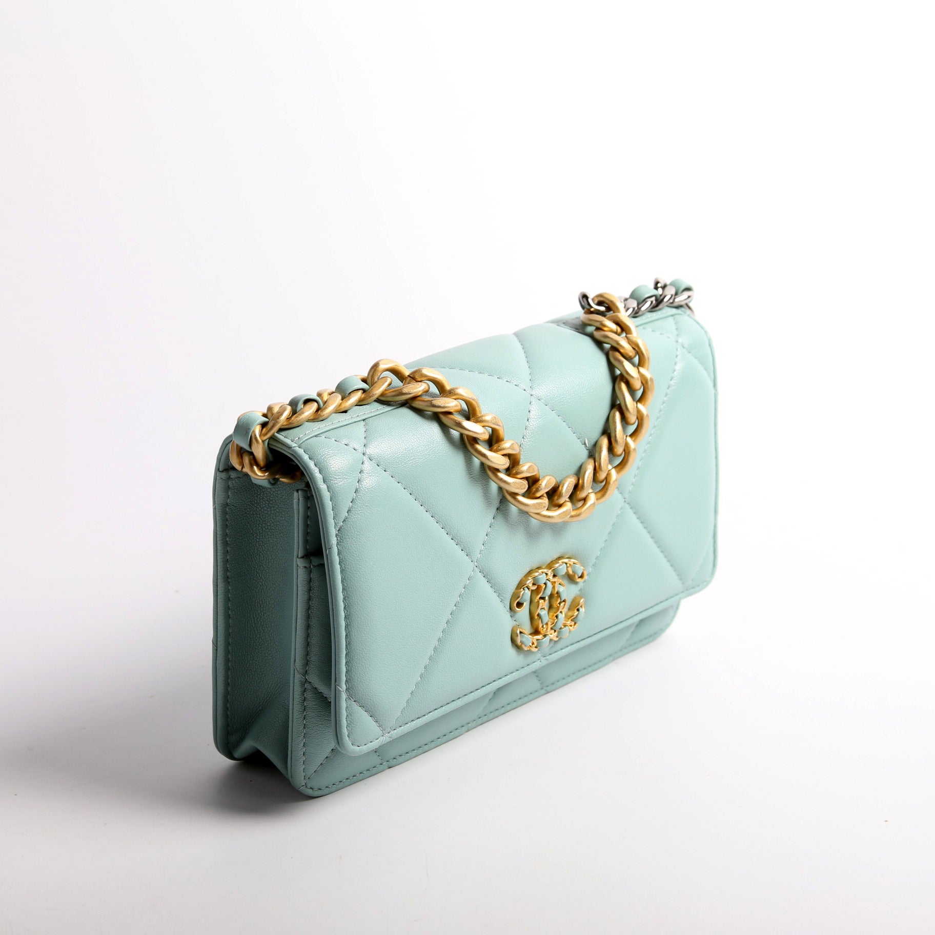 Chanel 19 WOC. The exterior is in the classic Quilted Lambskin.Â
