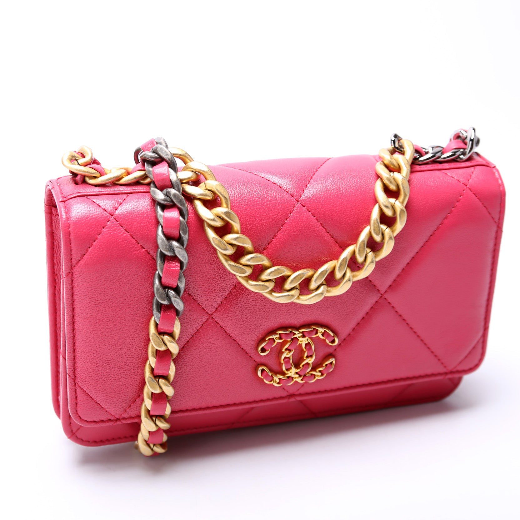 Chanel 19 WOC. The exterior is in the classic Quilted Lambskin.Â