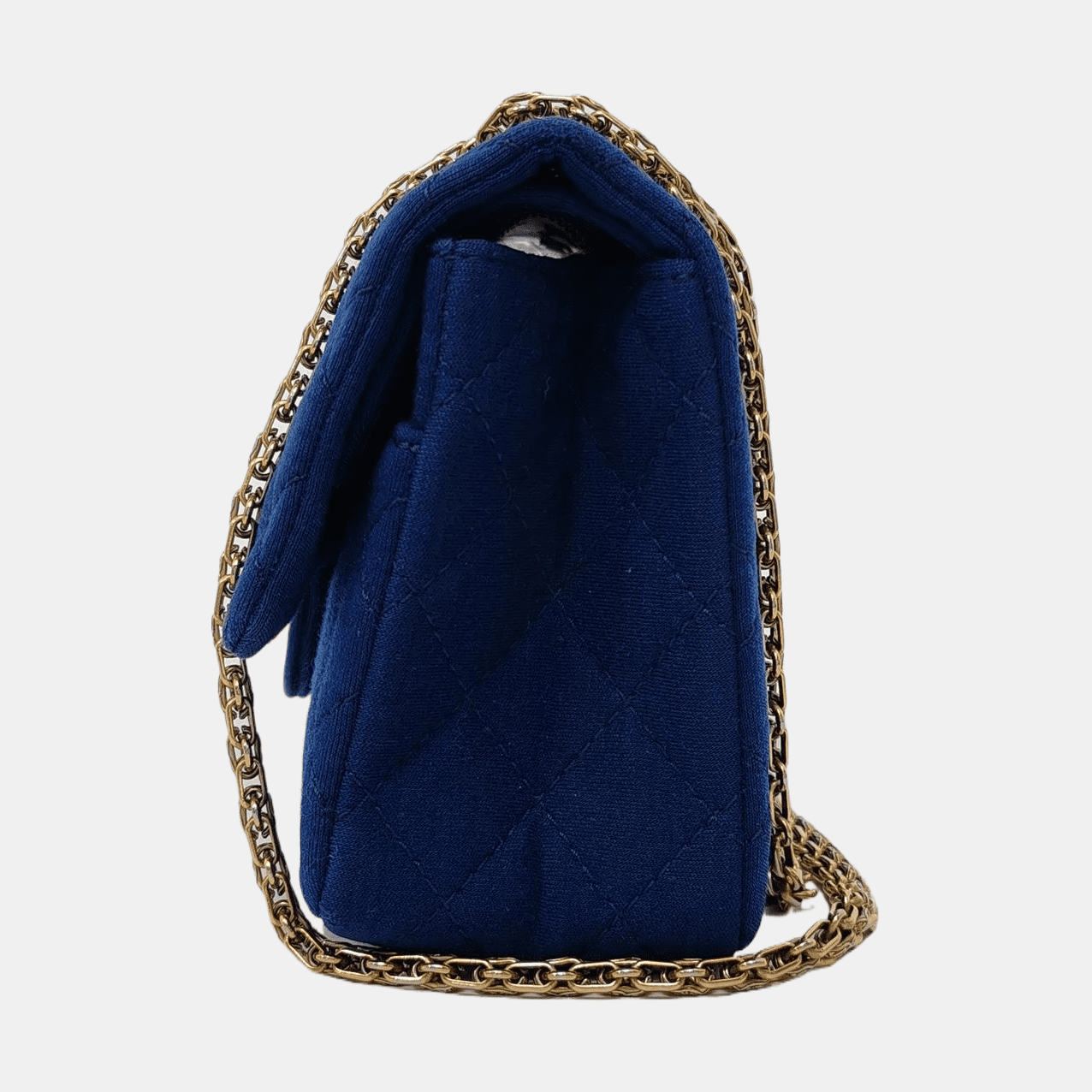 Be the first to review “Chanel 2.55 Double Flap Medium Royal Blue Fabric Gold Chain Strap”