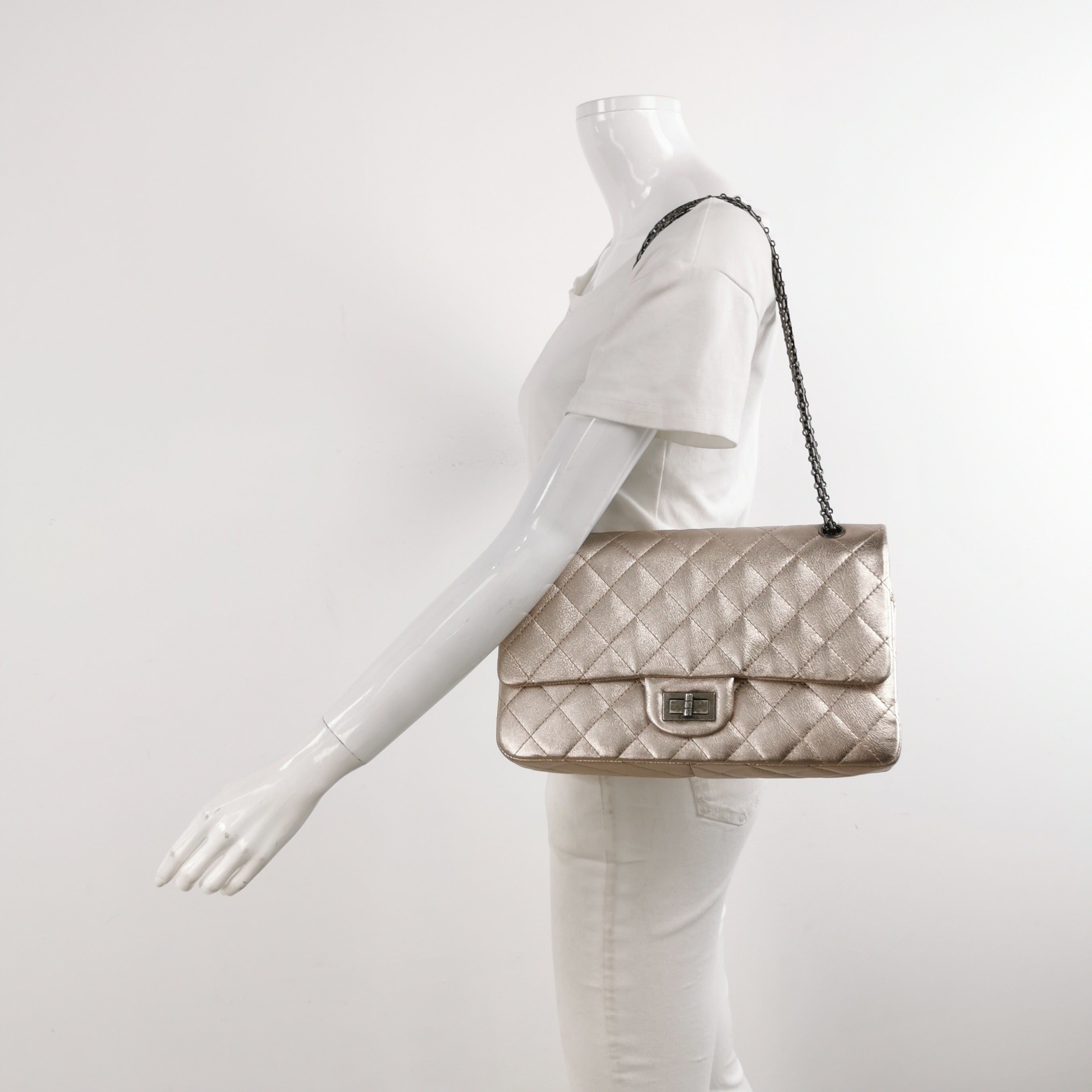 Chanel 2.55 Flap Bag Maxi Rose Gold Iridescent Lambskin Leather Silver HardwareChanel 2.55 Flap Bag Maxi Rose Gold Iridescent Lambskin Leather Silver Hardware