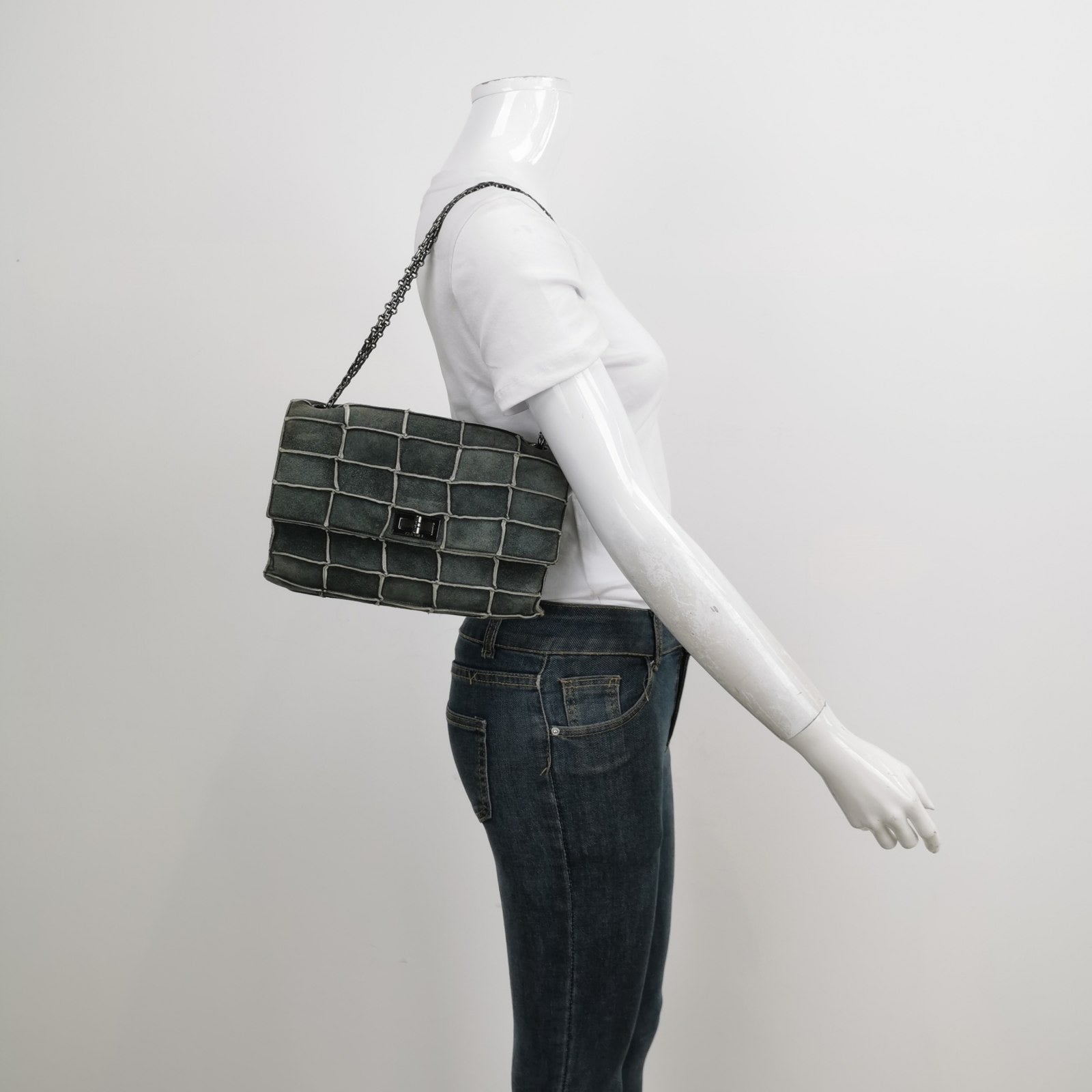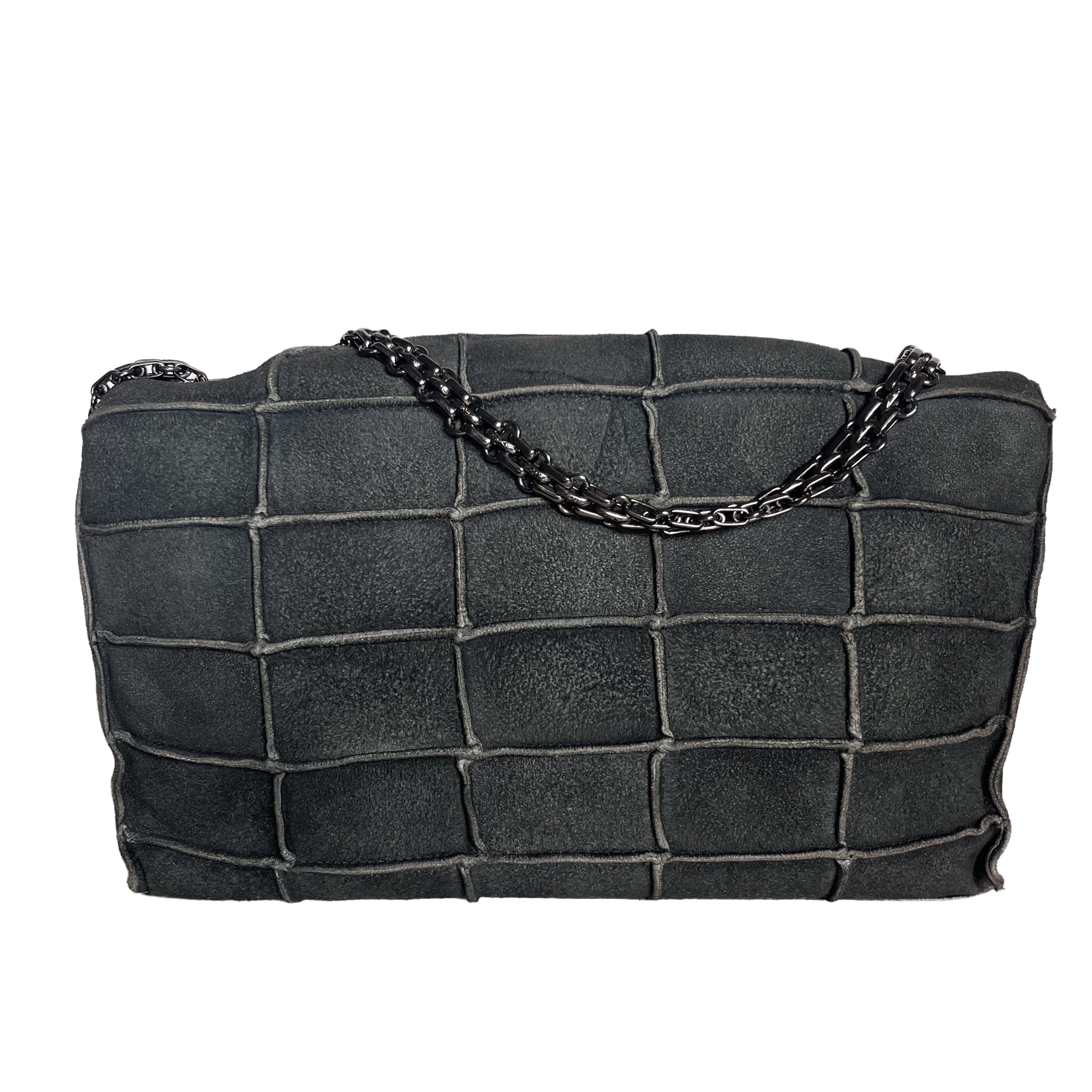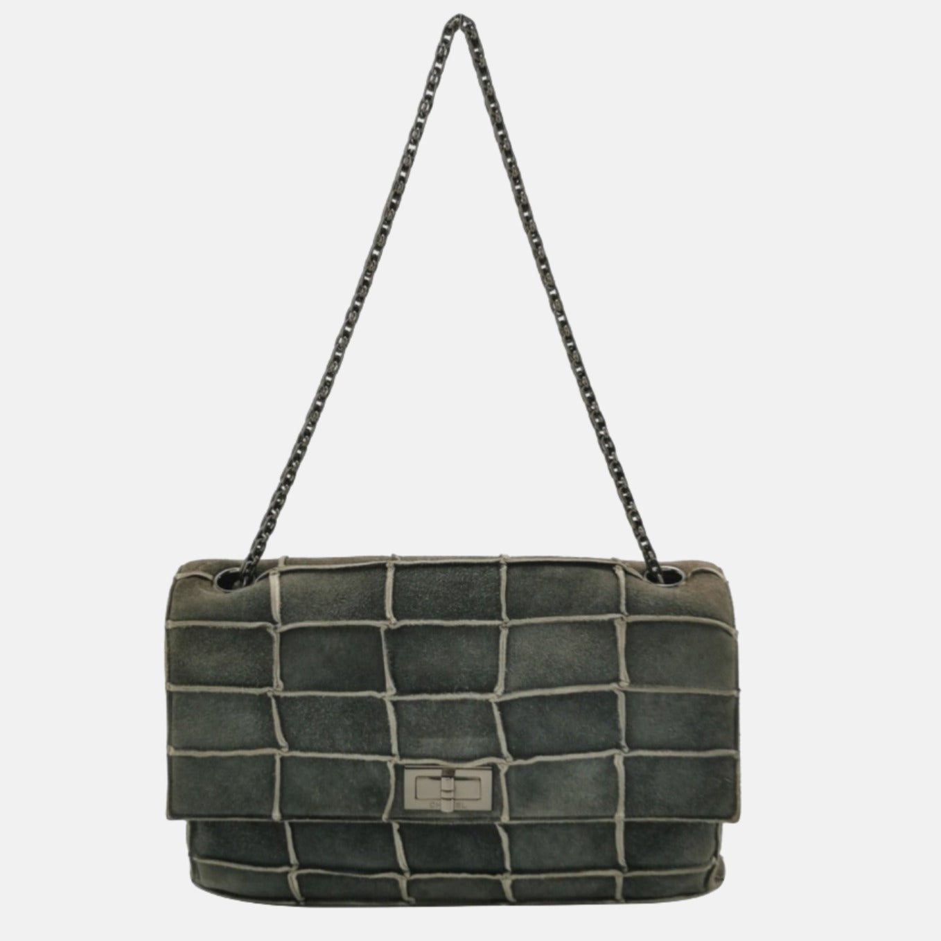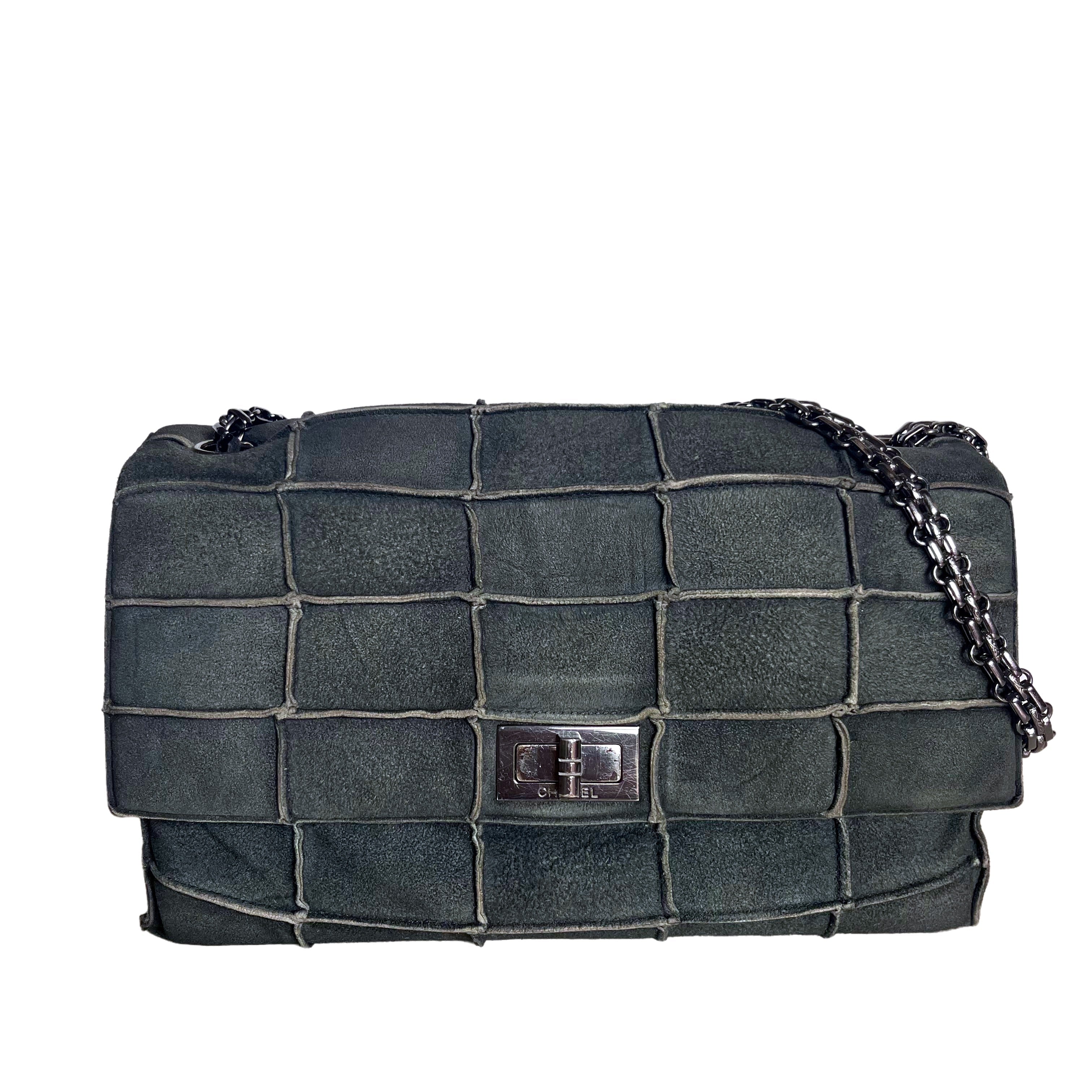 This Chanel 2.55 Flap bag features a mademoiselle turn lock and is made of suede leather, square quilt wild stitch, accented with silver hardware.