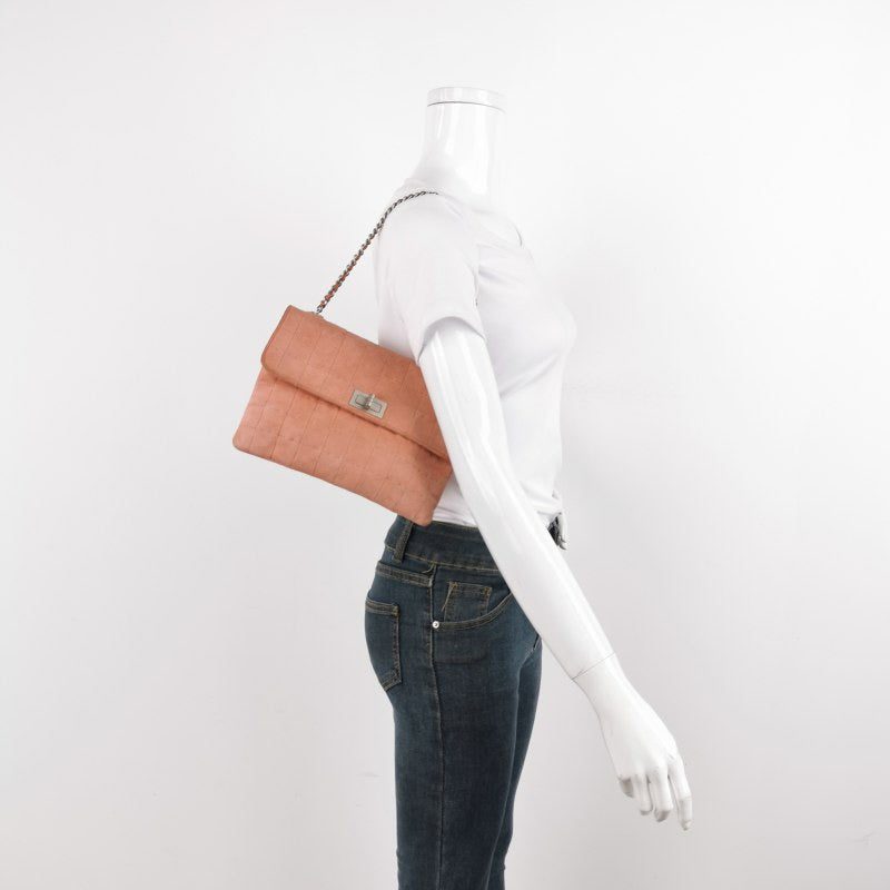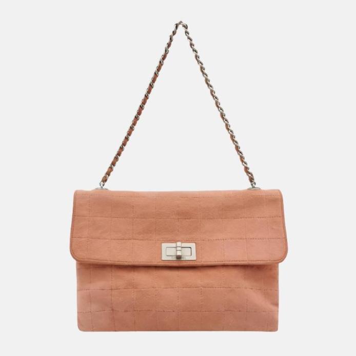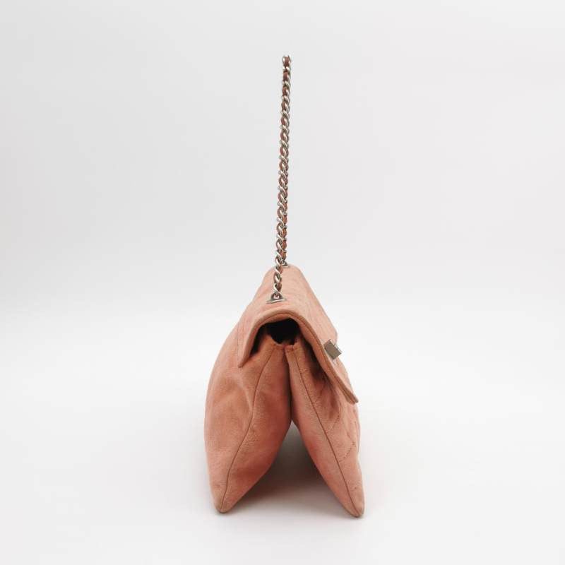 This Chanel 2.55 Flap bag features a mademoiselle turn lock and is made of suede leather, square quilt wild stitch, accented with silver hardware.