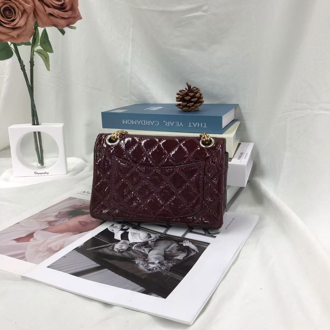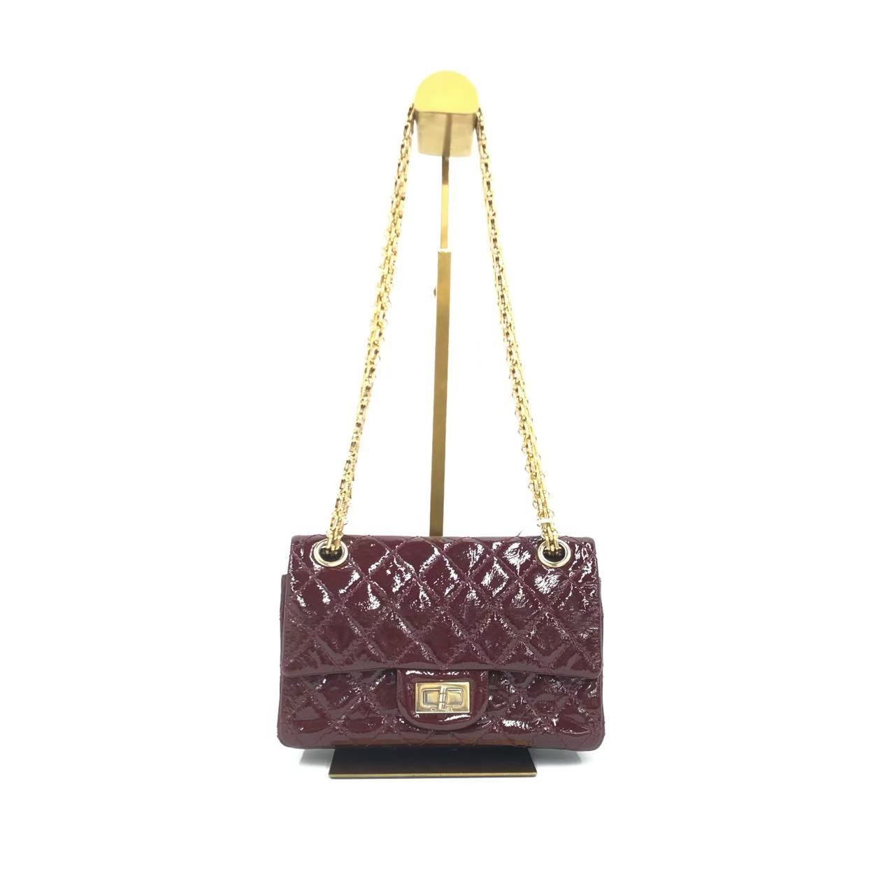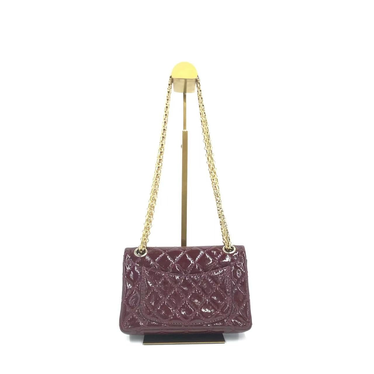 Chanel 2.55 Mini Reissue Quilted Burgundy Patent Leather Double Flap Gold HWChanel 2.55 Mini Reissue Quilted Burgundy Patent Leather Double Flap Gold HW