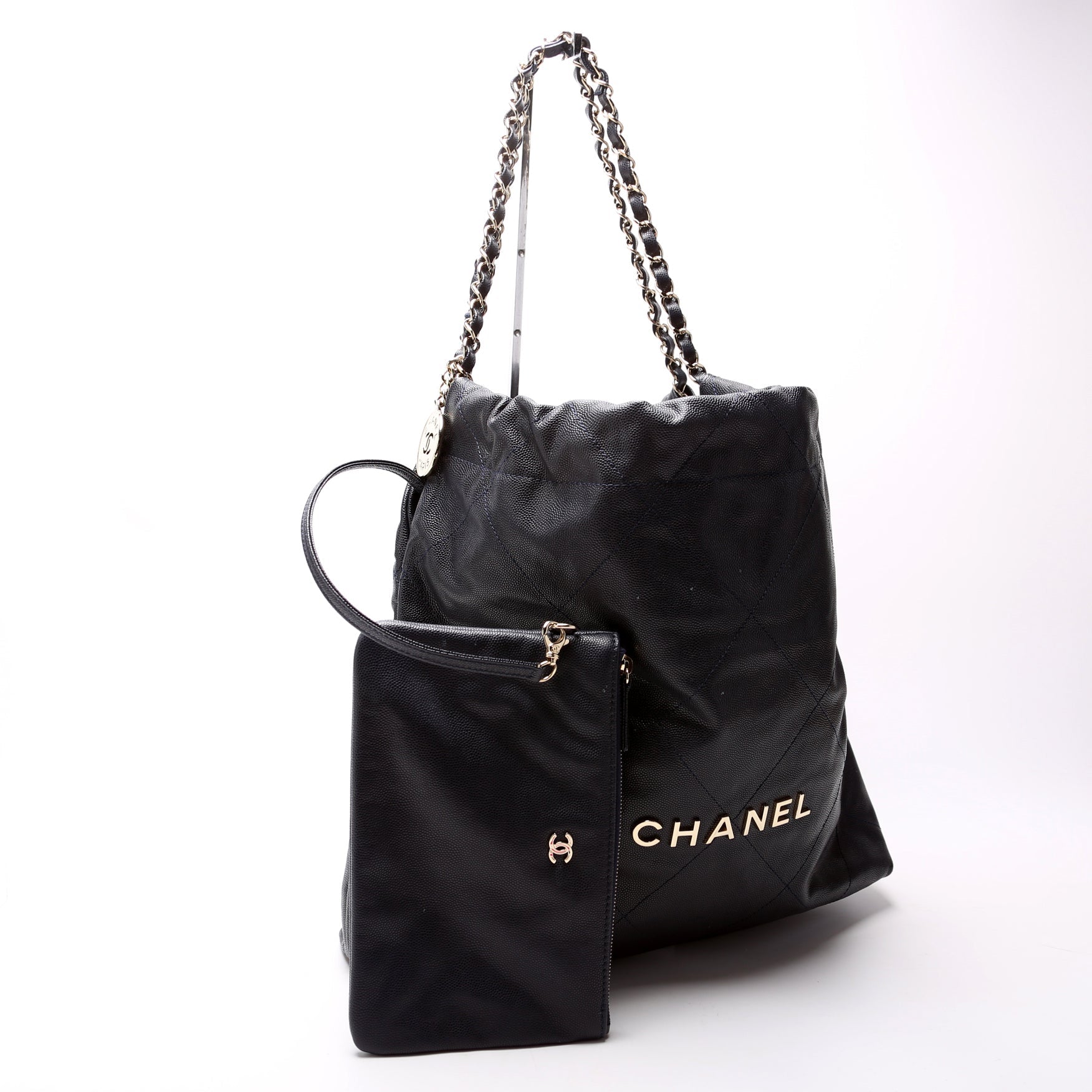 Chanel 22. The exterior is in the classic Chanel Caviar leather.
