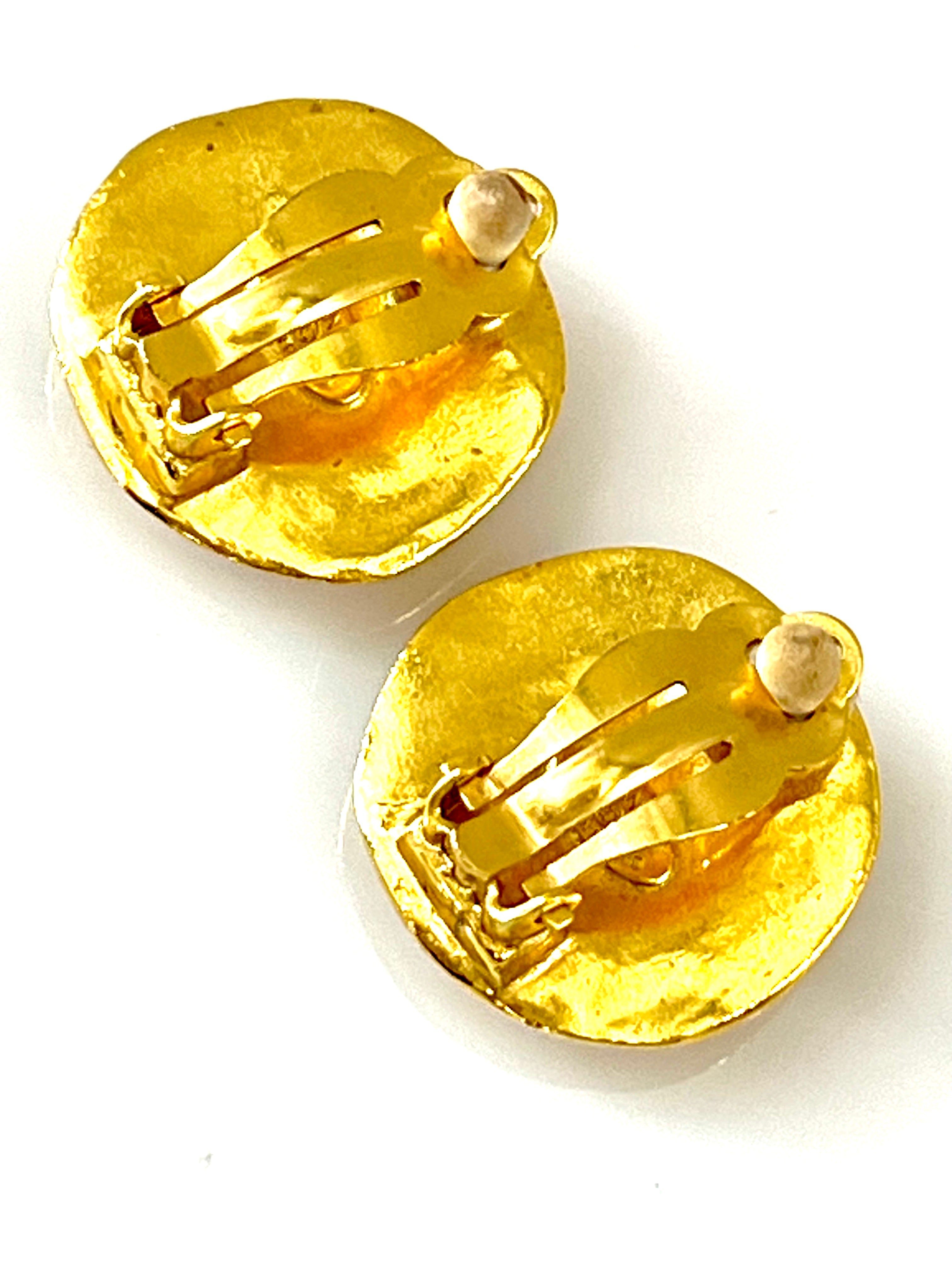 CHANEL 96P 24K GOLD PLATED CC CLIP ON EARRINGS