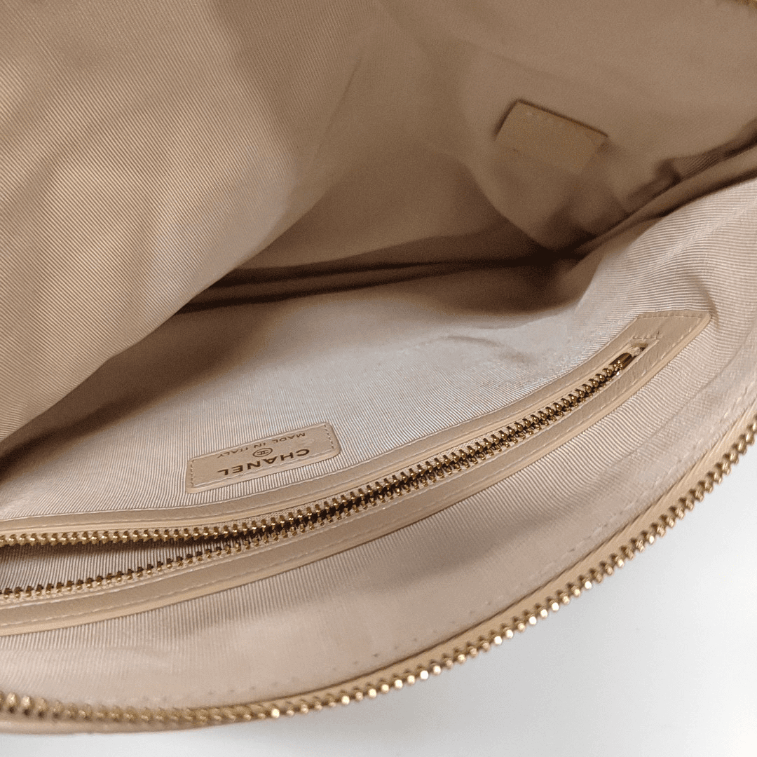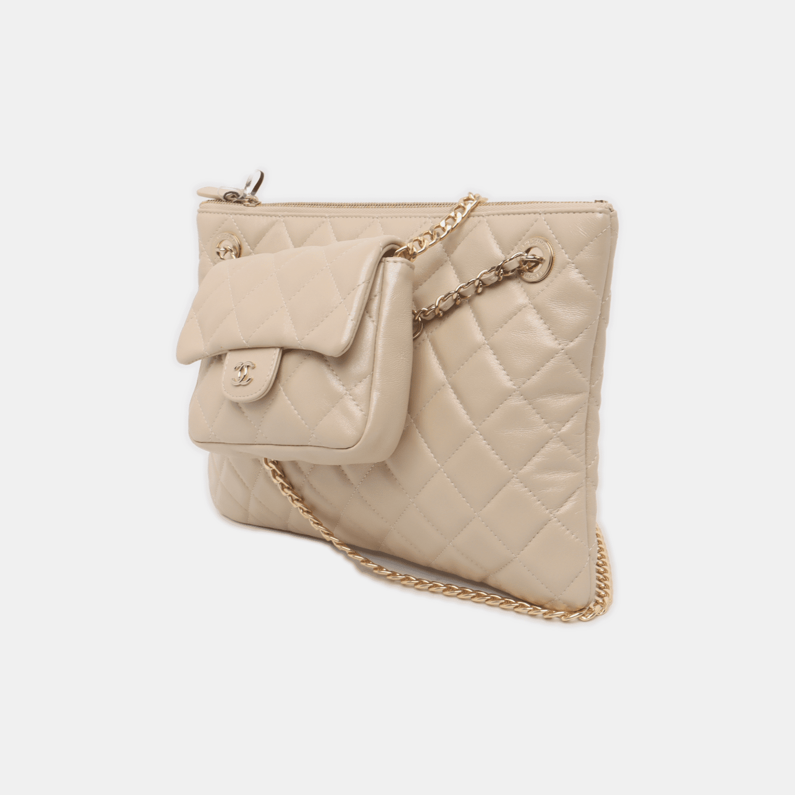 Chanel Beige Iridescent Lambskin Quilted Pouch with Mini Flap PurseChanel Beige Iridescent Lambskin Quilted Pouch with Mini Flap Purse