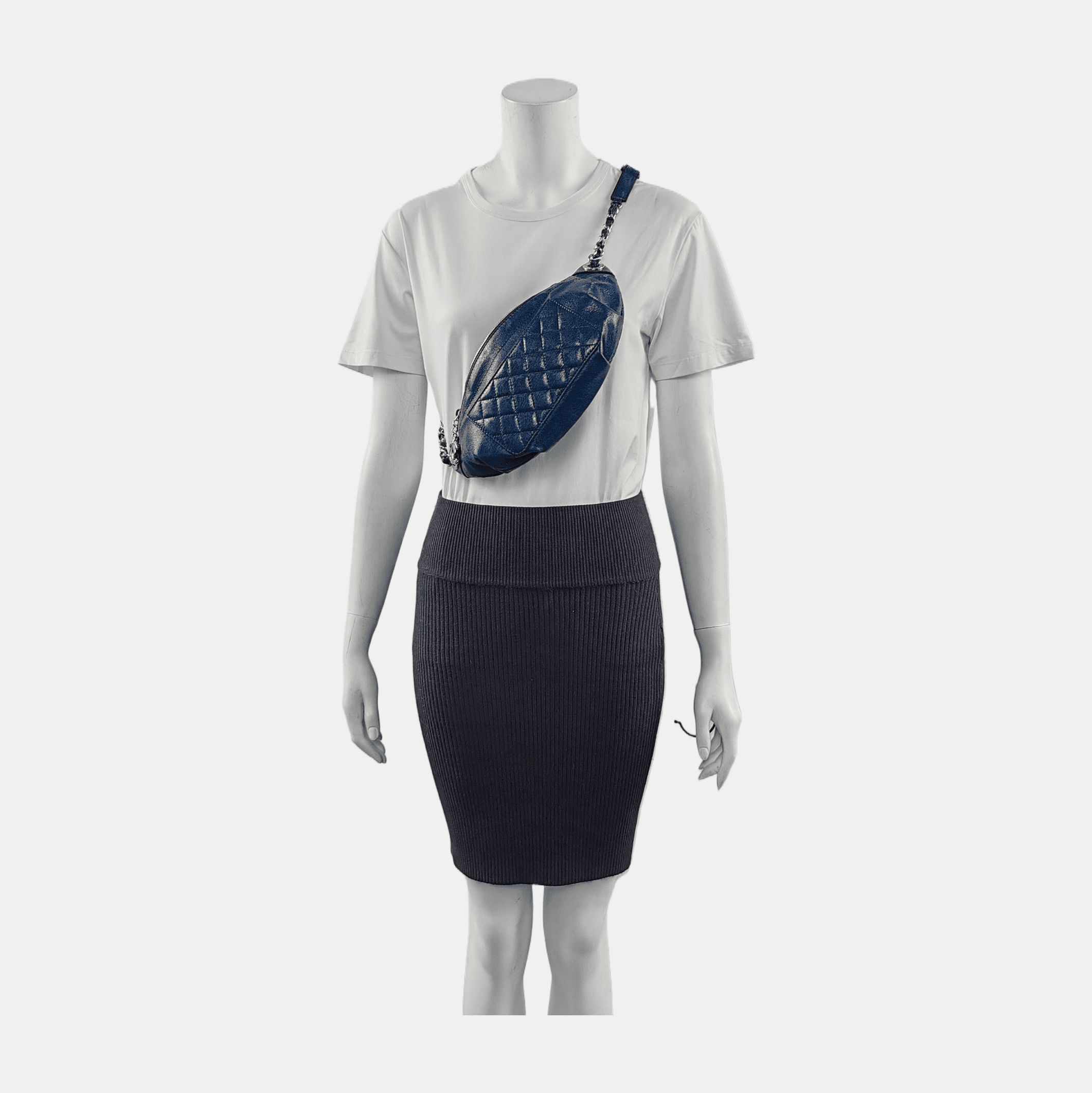 Chanel Belt Bag Navy Shiny Calfskin Skin Leather Gold-tone HardwareChanel Belt Bag Navy Shiny Calfskin Skin Leather Gold-tone Hardware