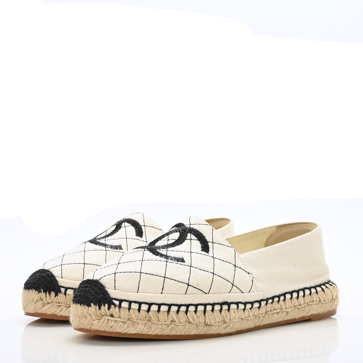 CHANEL BIARRITZ CC QUILTED CANVAS ESPADRILLSÂ