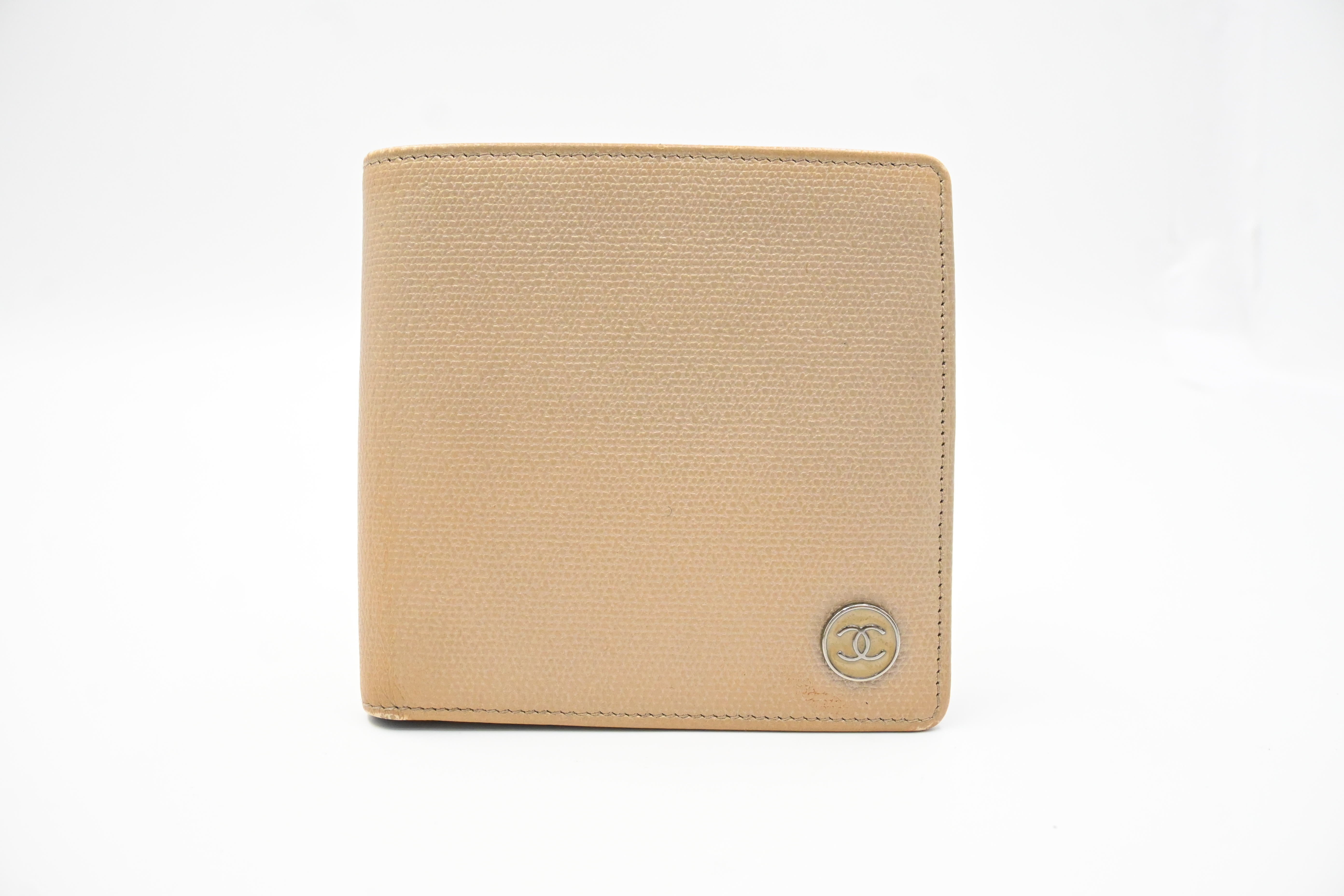 – Hardware: Beige enamel and silver tone metal, light surface wear, interior button snap is strong