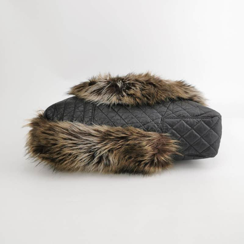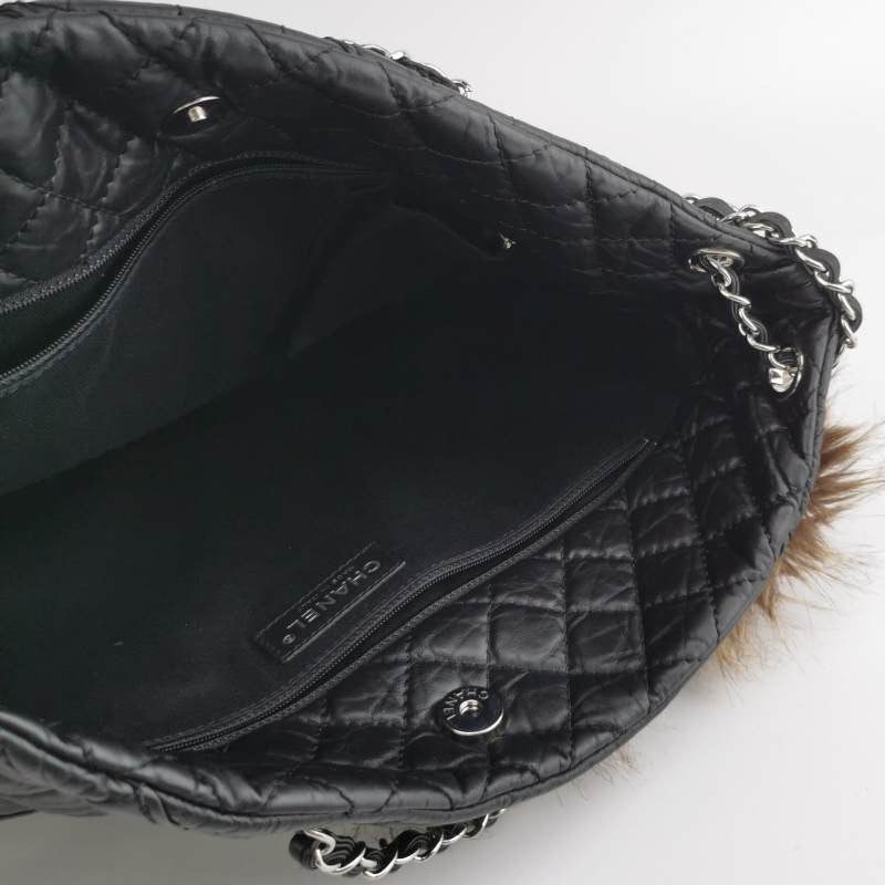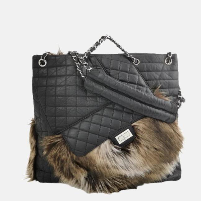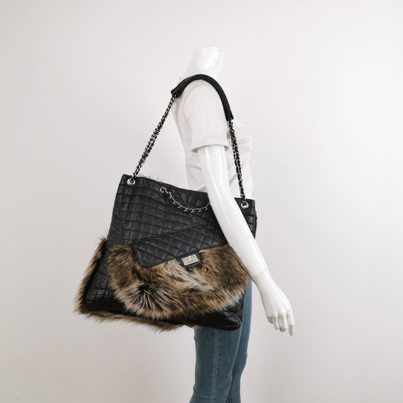 Expertly crafted from calfskin leather and luxurious fur, this Chanel tote bag features a front pocket secured with a mademoiselle lock, making it both rare and fun.