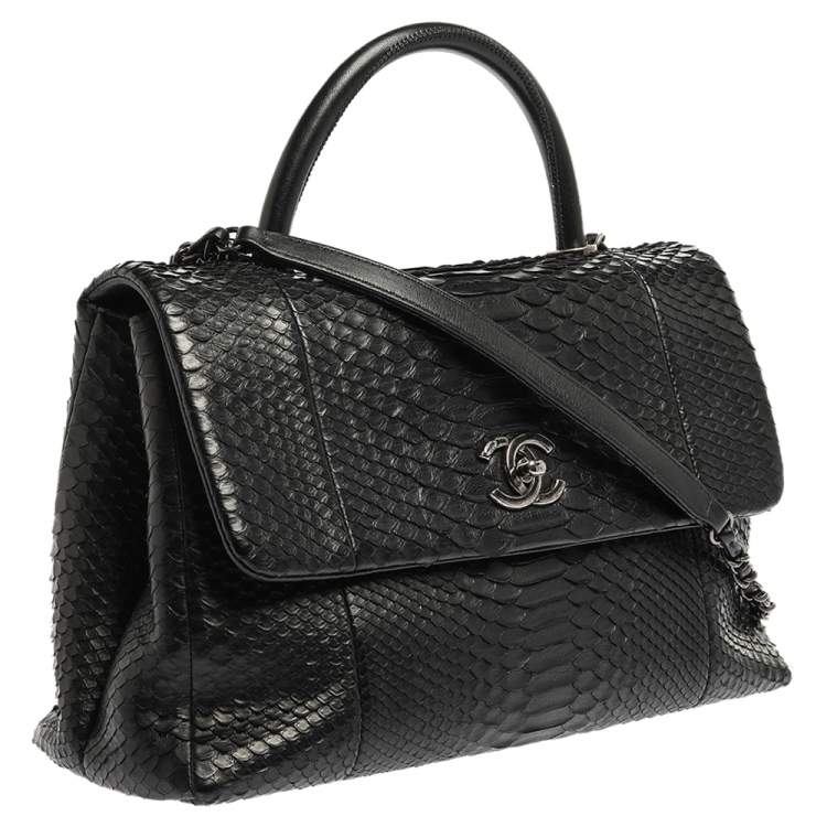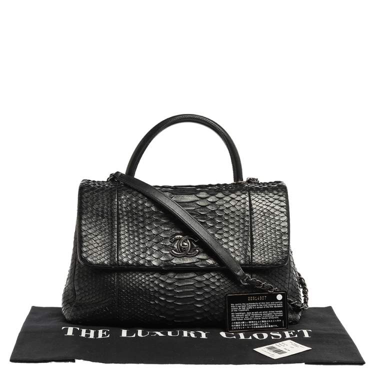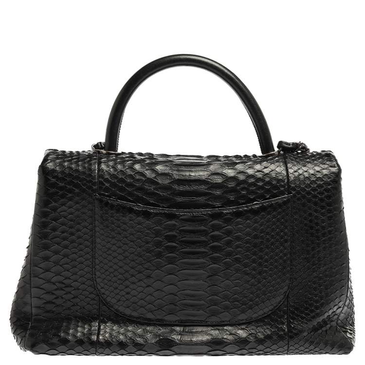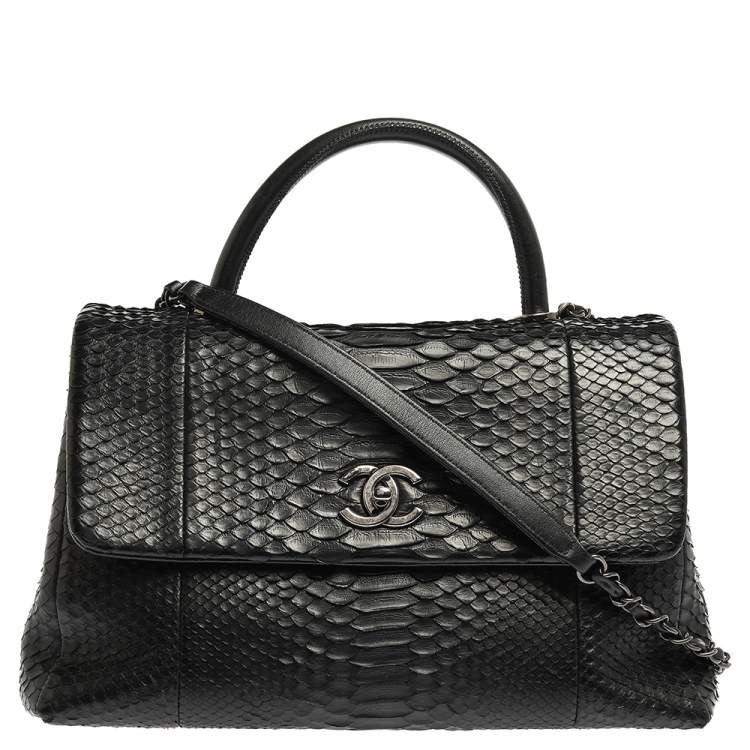 crafted from python and enhanced with silver-tone hardware. The bag flaunts a top handle and a shoulder strap and the front flap proudly exhibits the iconic CC twist-lock.Â