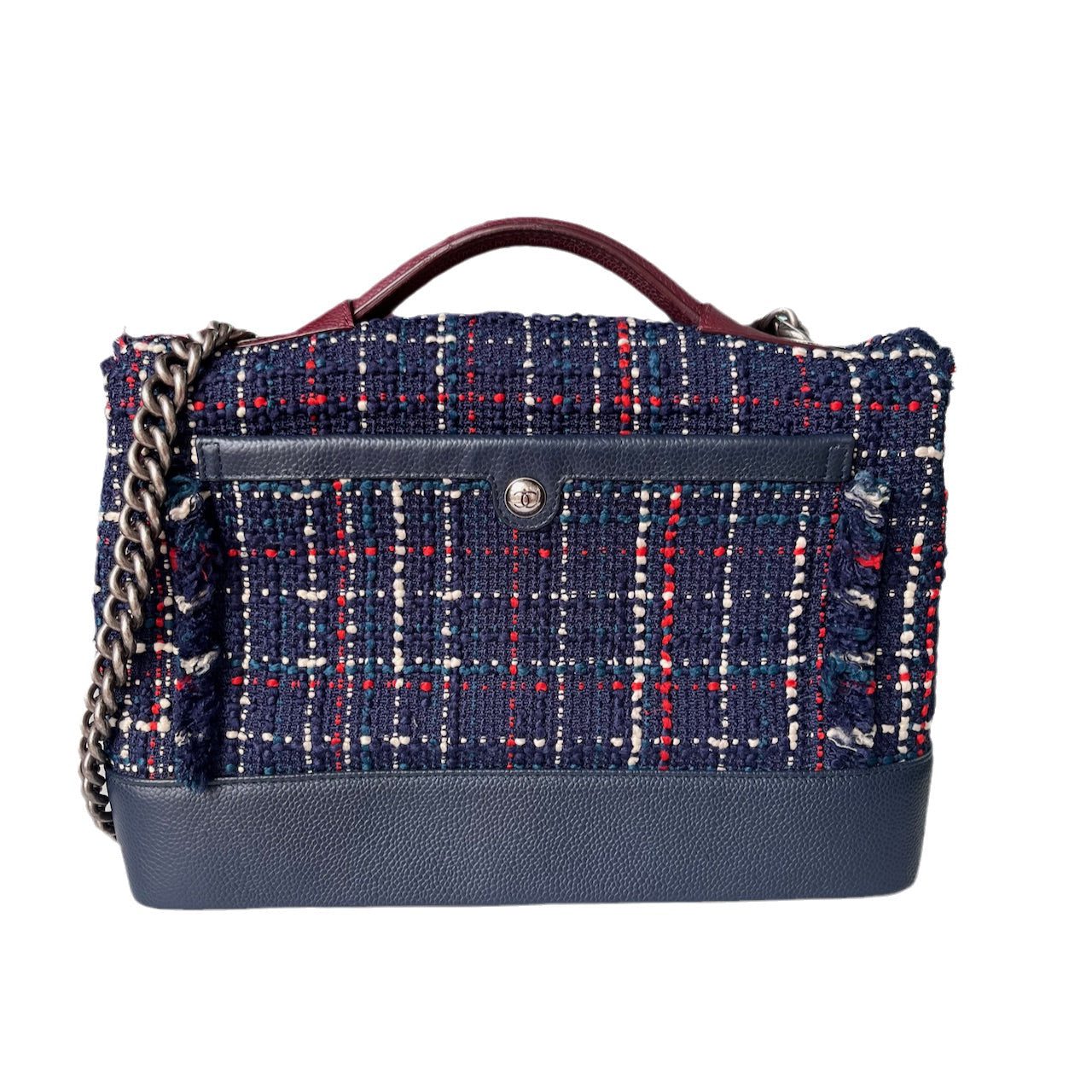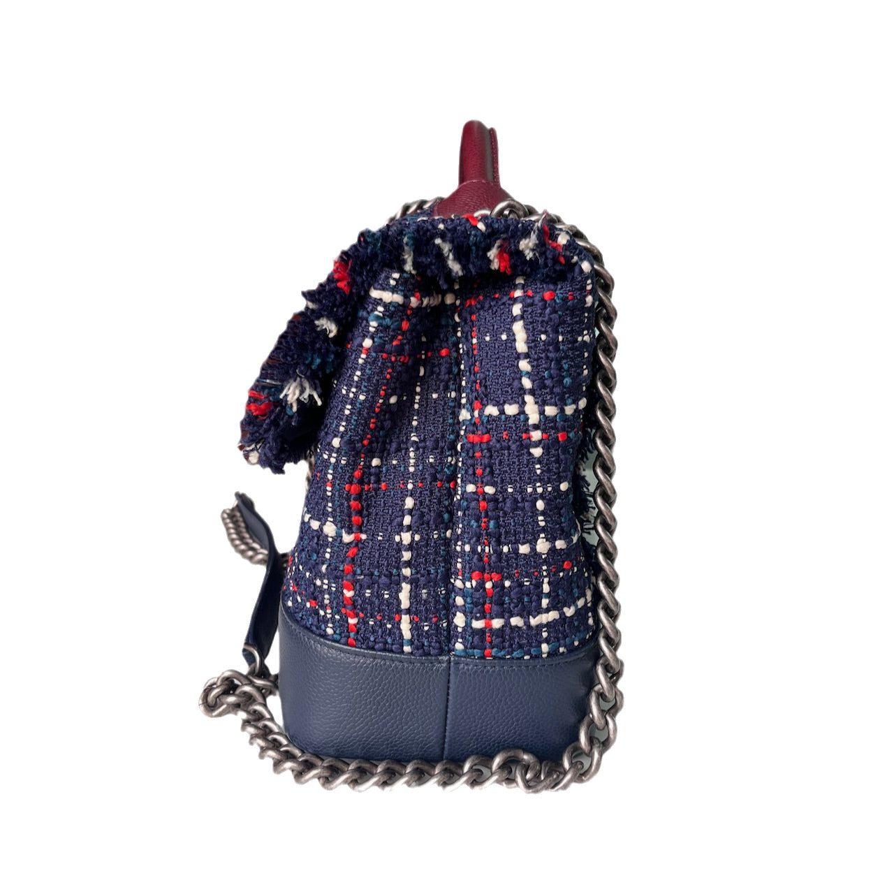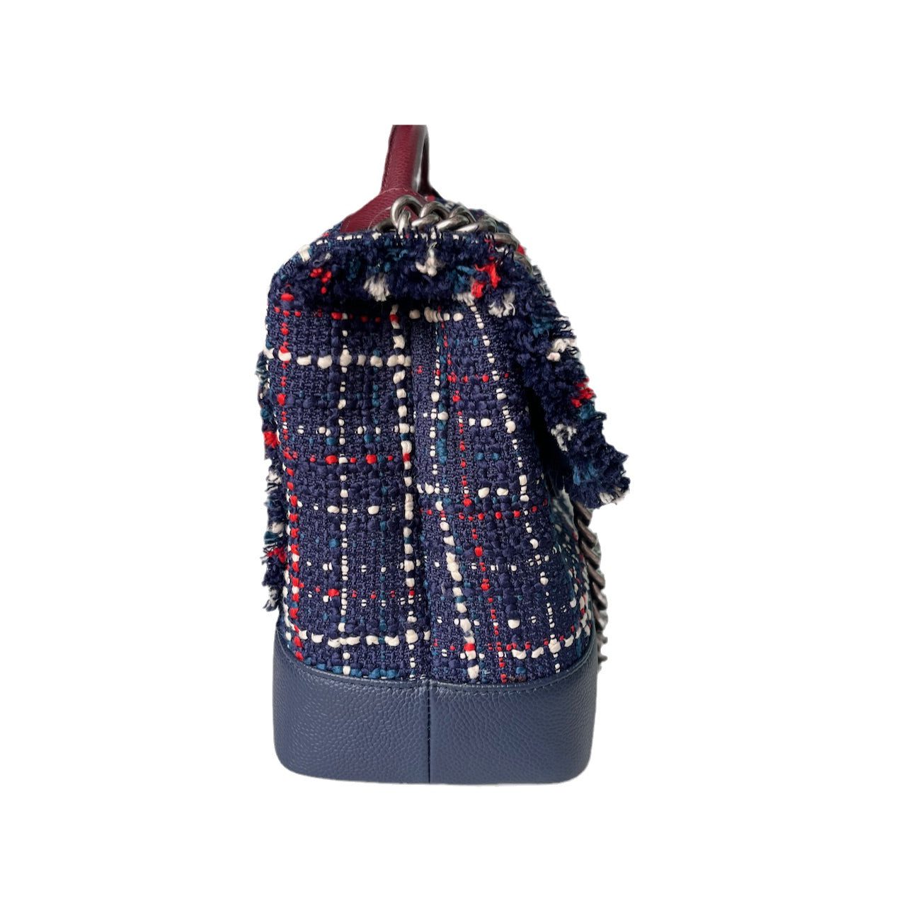 Chanel Blue and Red Tweed and Caviar Airline Flap Bag Silver Hardware 2016