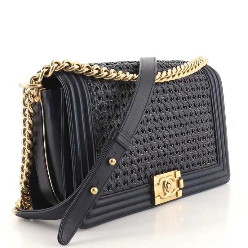 The Chanel Boy Flap Braided Sheepskin New Medium Bag is a classic and timeless piece that can elevate any outfit. Its combination of elegance and practicality makes it a versatile accessory that can be worn for any occasion.