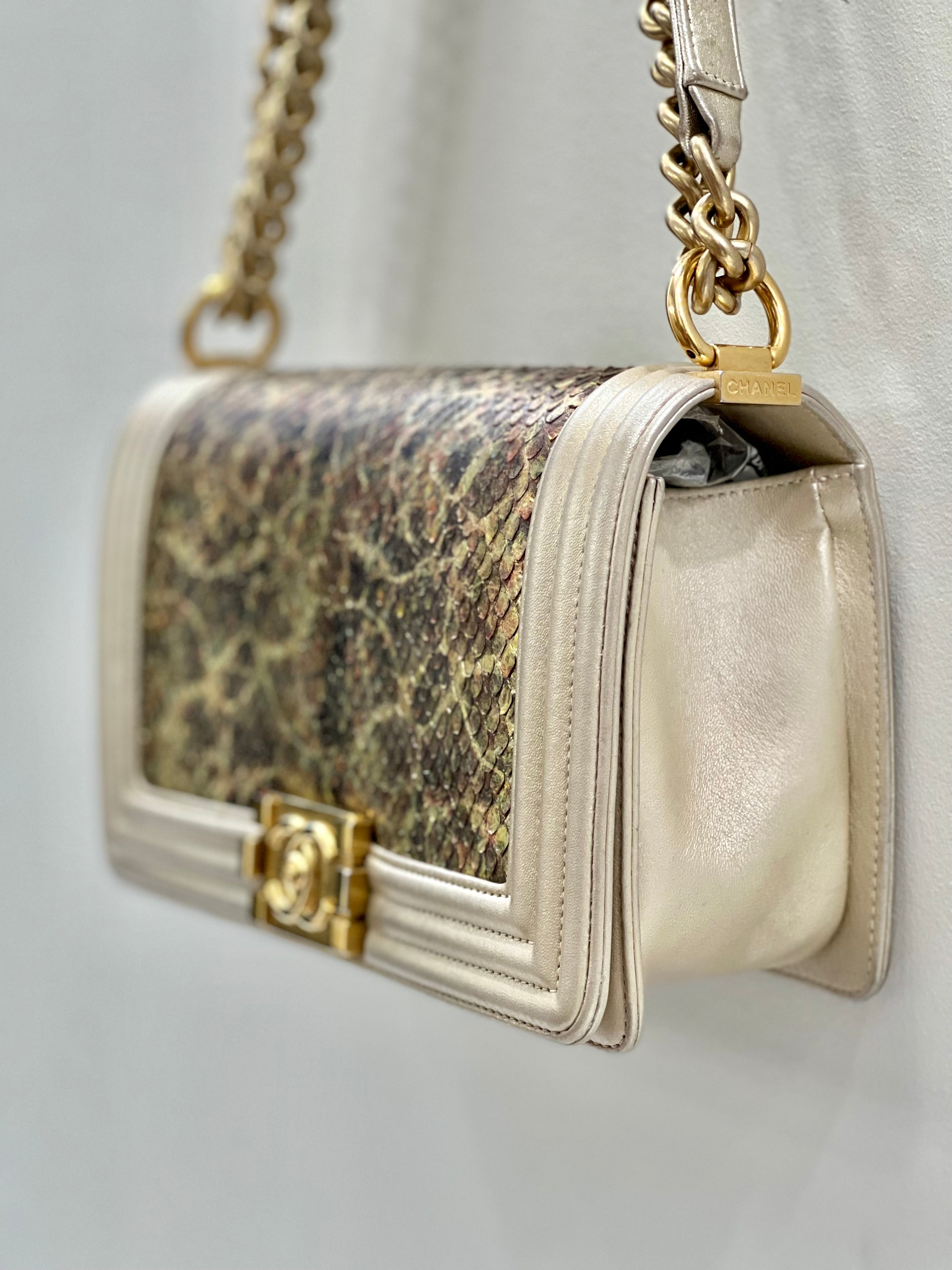 Chanel Boy Medium Metallic Gold Python Flap Bag
