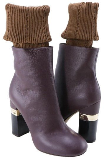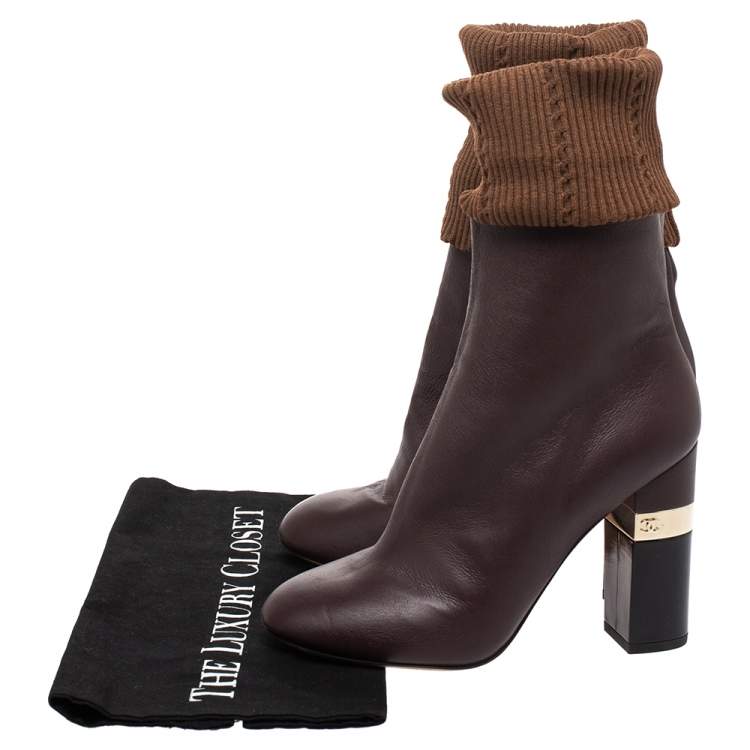 CHANEL BROWN MAILER 16K CHUNKY HEEL LOGO BOOTSCHANEL BROWN MAILER 16K CHUNKY HEEL LOGO BOOTS