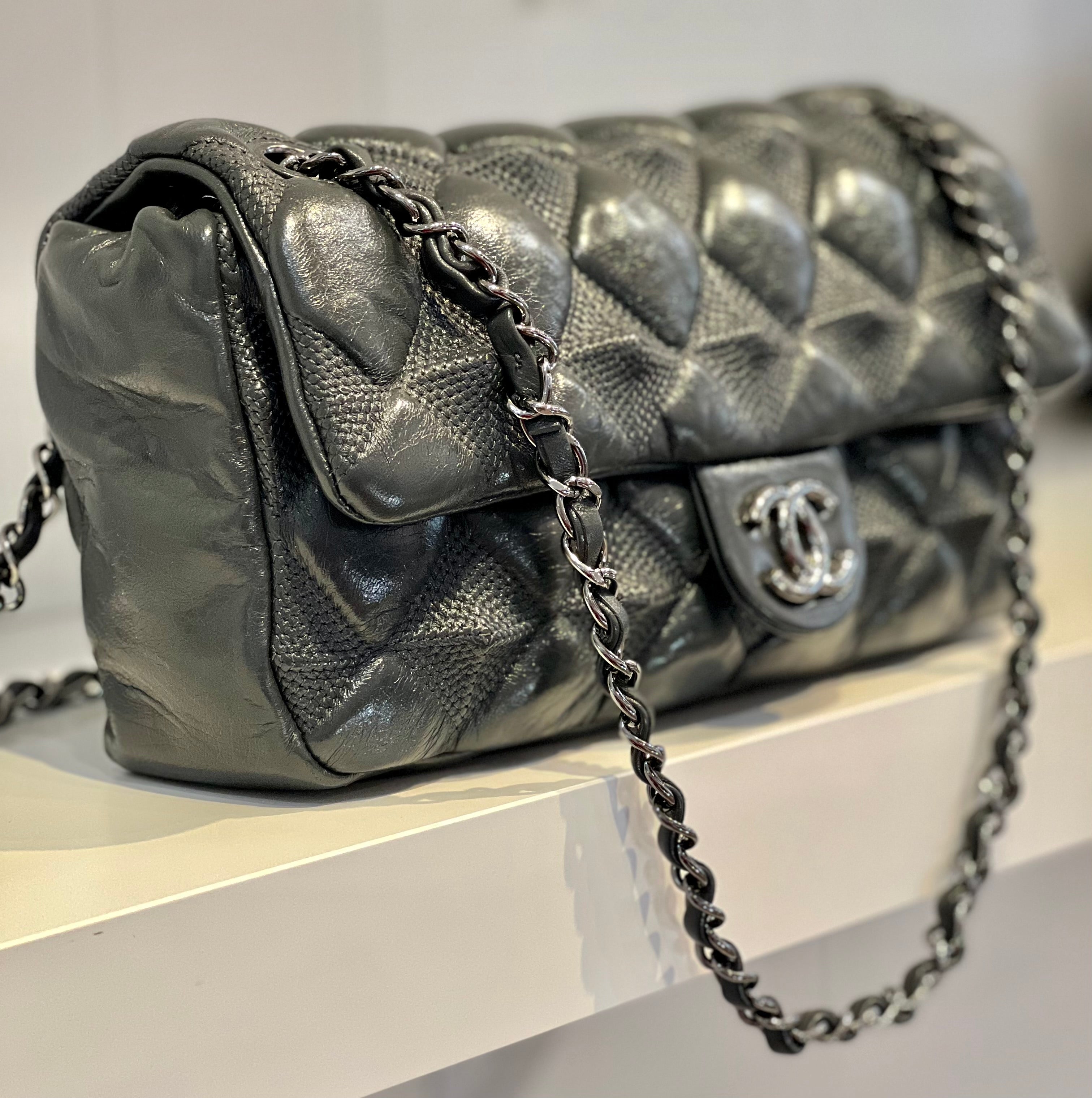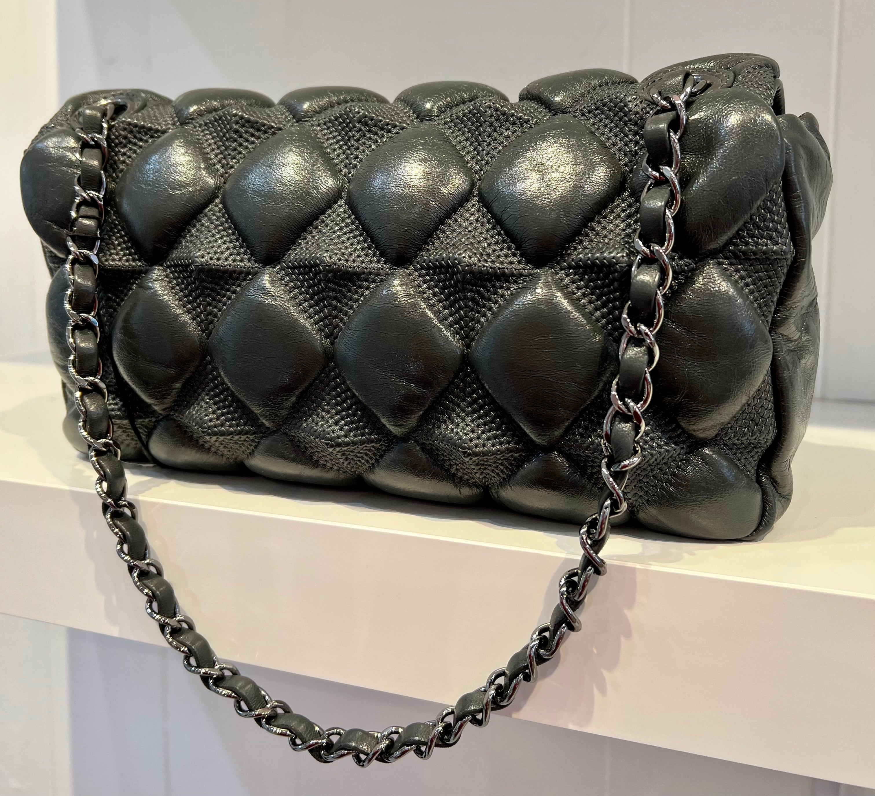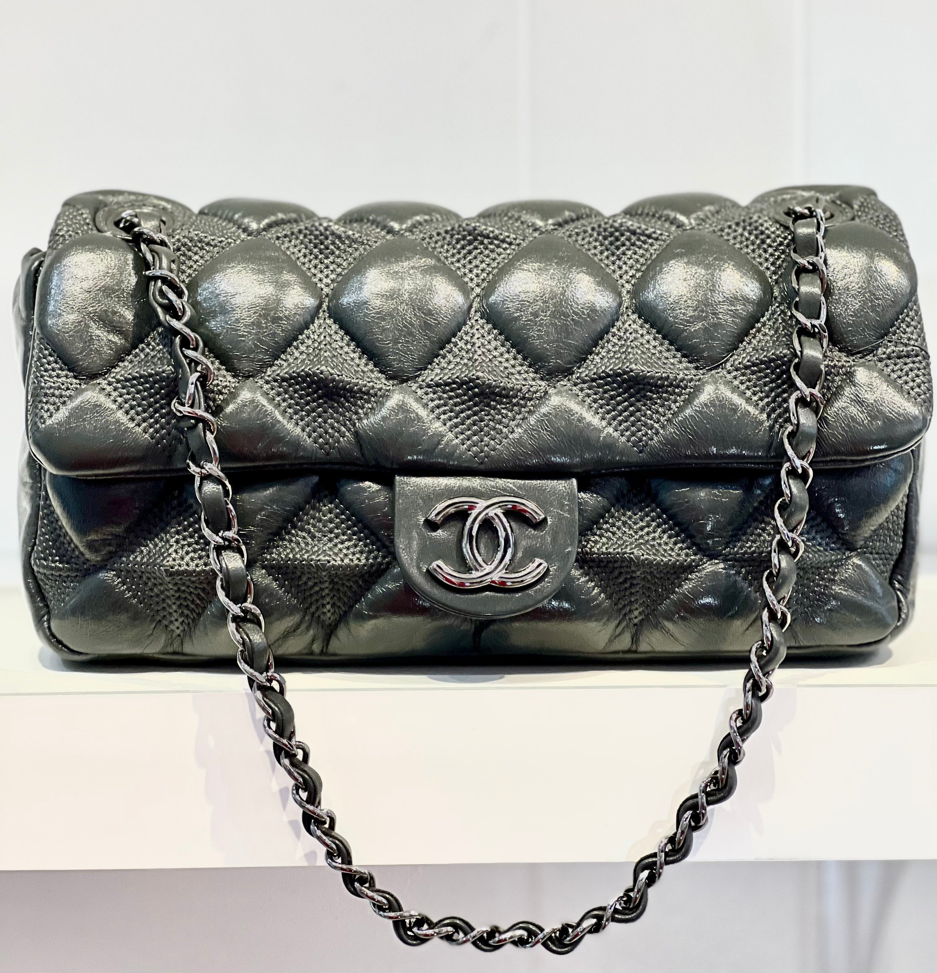 CHANEL Bubble Flap Lambskin Bag-Dark Grey