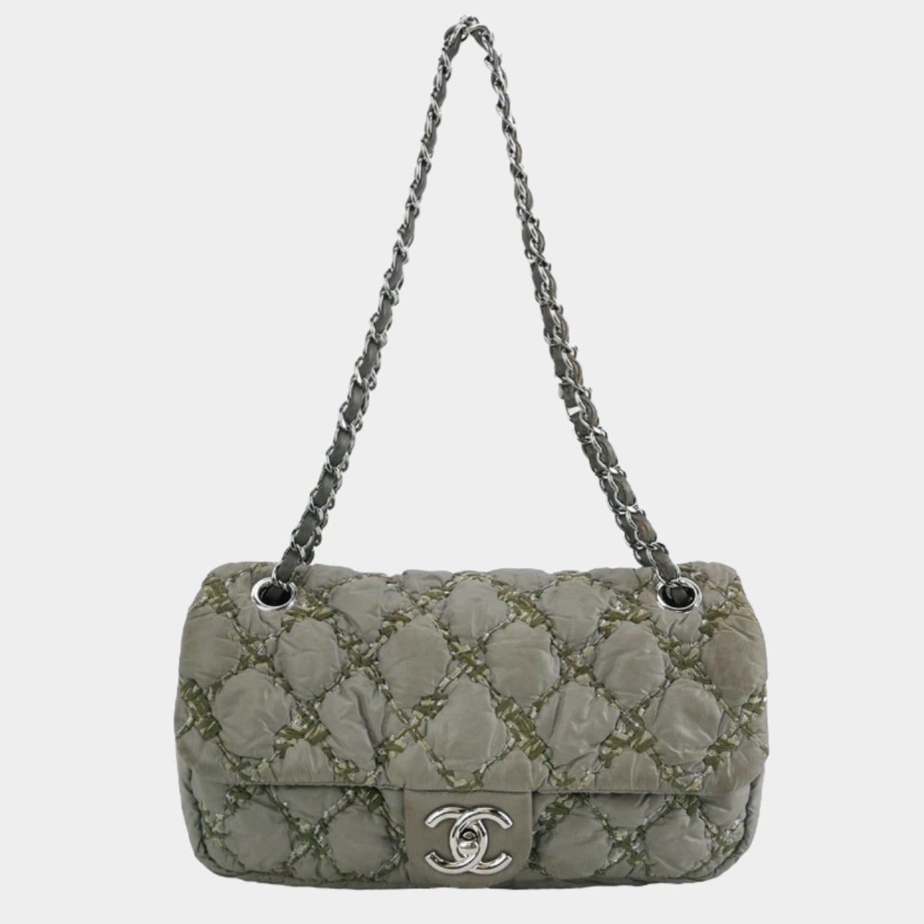 Chanel 2011 Paris-Byzance Tweed On Stitch Nylon Quilted Flap Bag GreyChanel 2011 Paris-Byzance Tweed On Stitch Nylon Quilted Flap Bag Grey