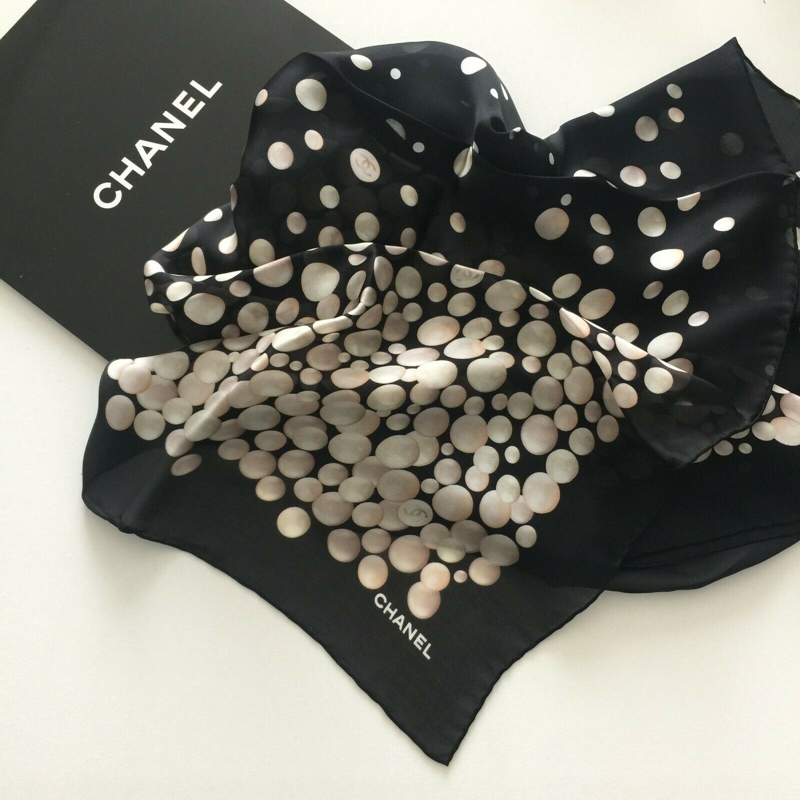 Chanel Bubbles Geometric Print 20P Silk Chiffon Scarf-Excellent Condition.