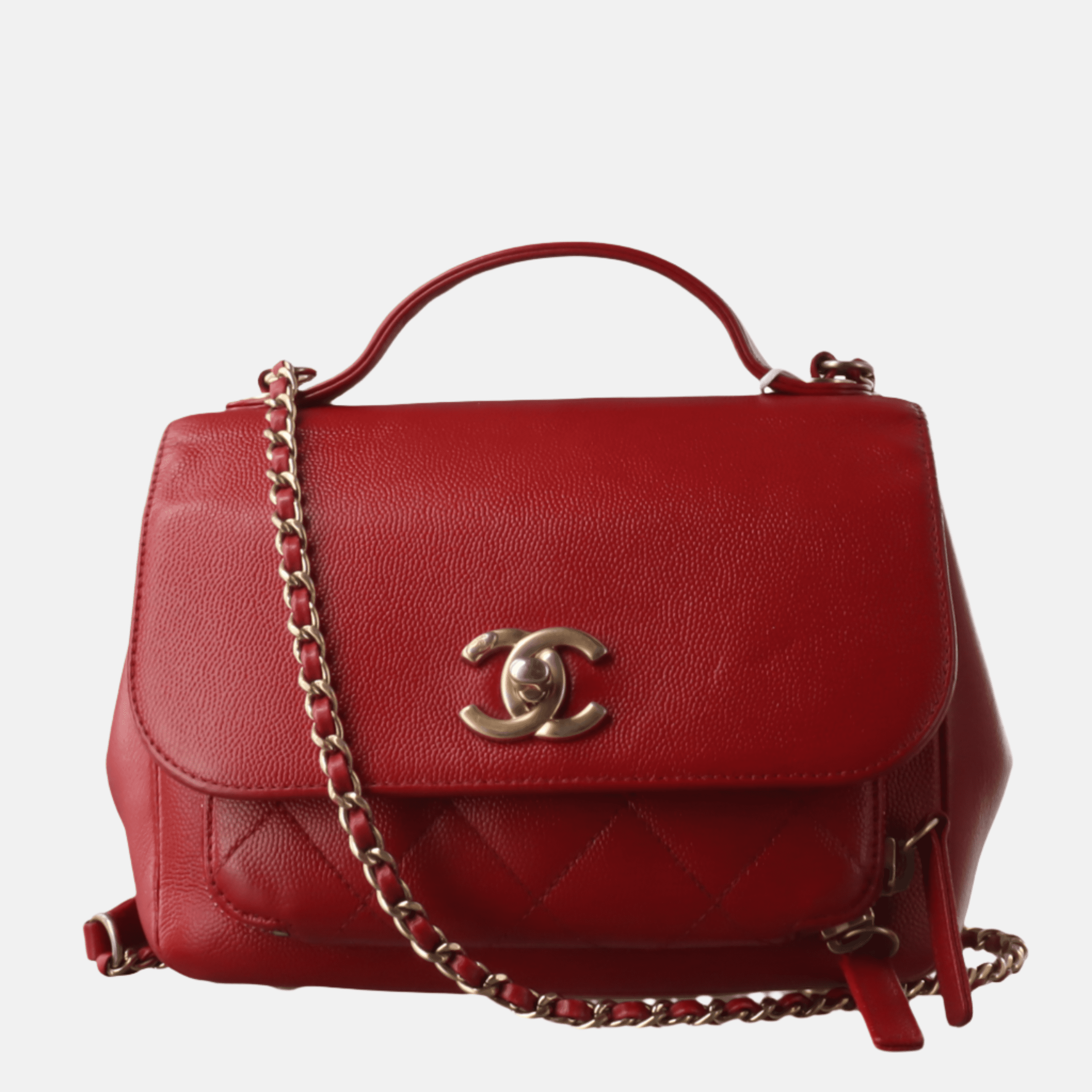 Chanel Business Affinity Medium Red Caviar Leather Top Handle Crossbody Bag