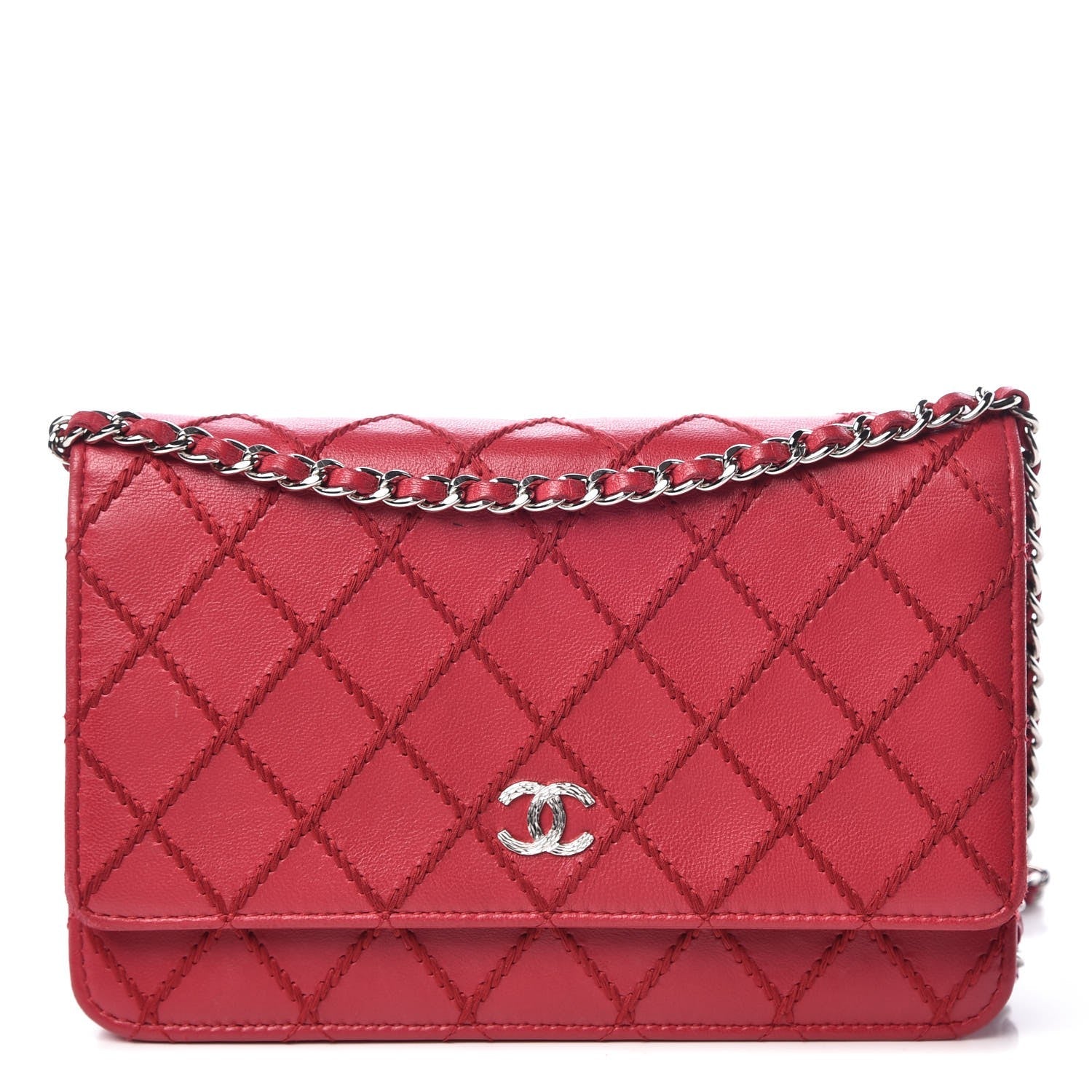 This Stunning Chanel Stitch Leather CC Wallet-on-Chain Clutch Bag. It features gorgeous leather and a small textured CC logo on the front. The versatile leather strap chain can be worn cross-body, on the shoulder, doubled up to wear with a shorter drop or tucked in to use as a Clutch.