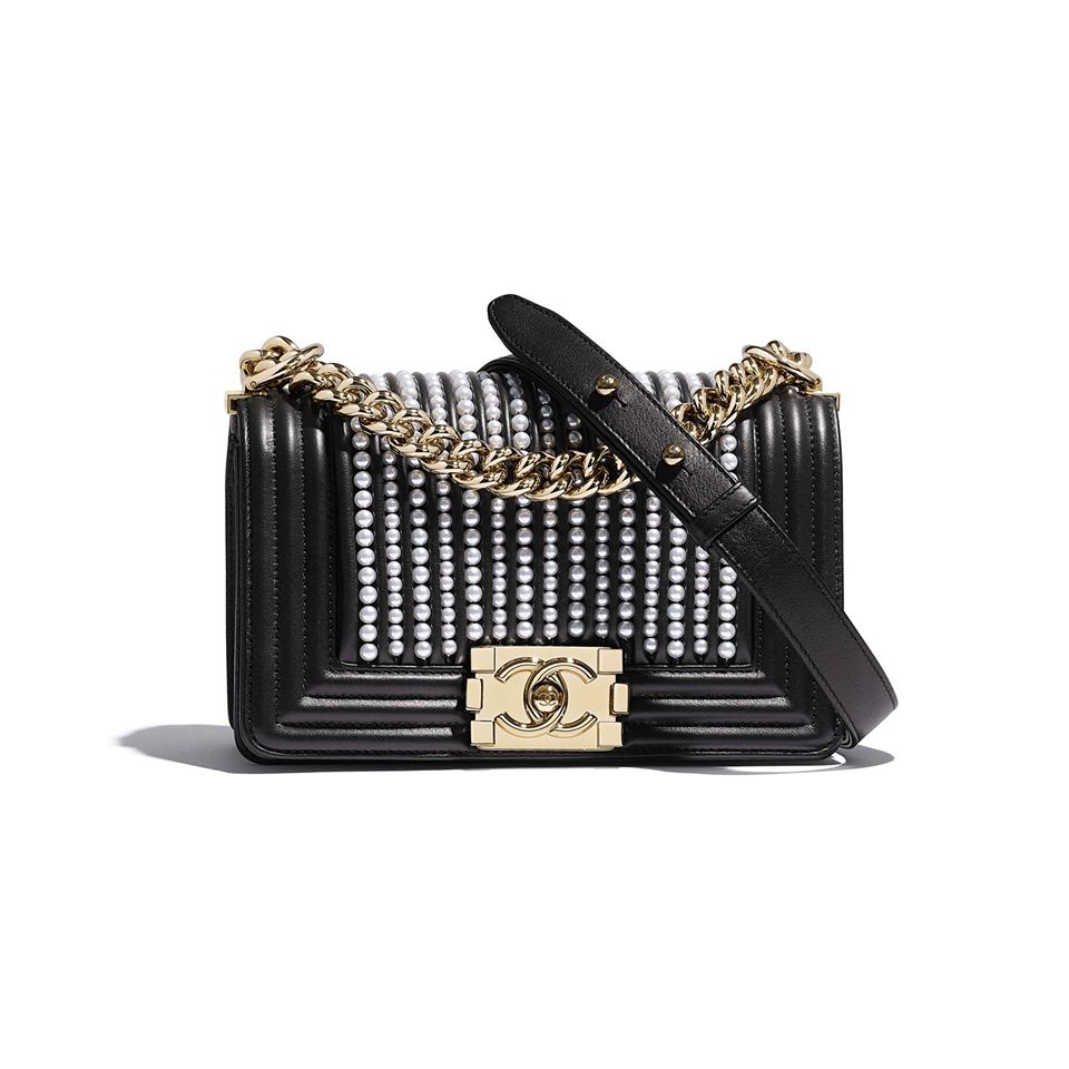 CHANEL CALFSKIN MEDIUM PEARL BOY BAG