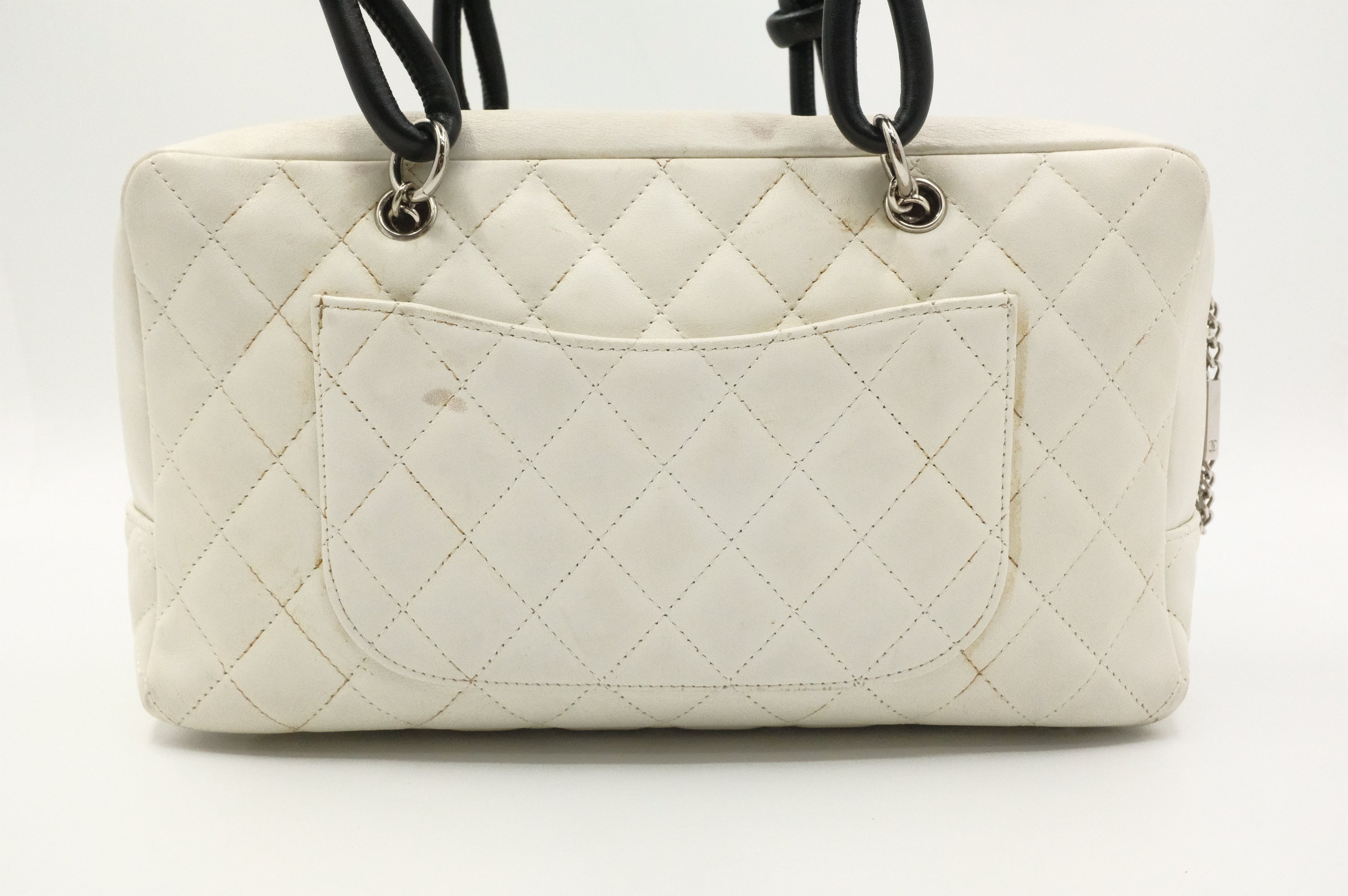 Chanel Cambon Bowling Bag in White Matelassé Leather