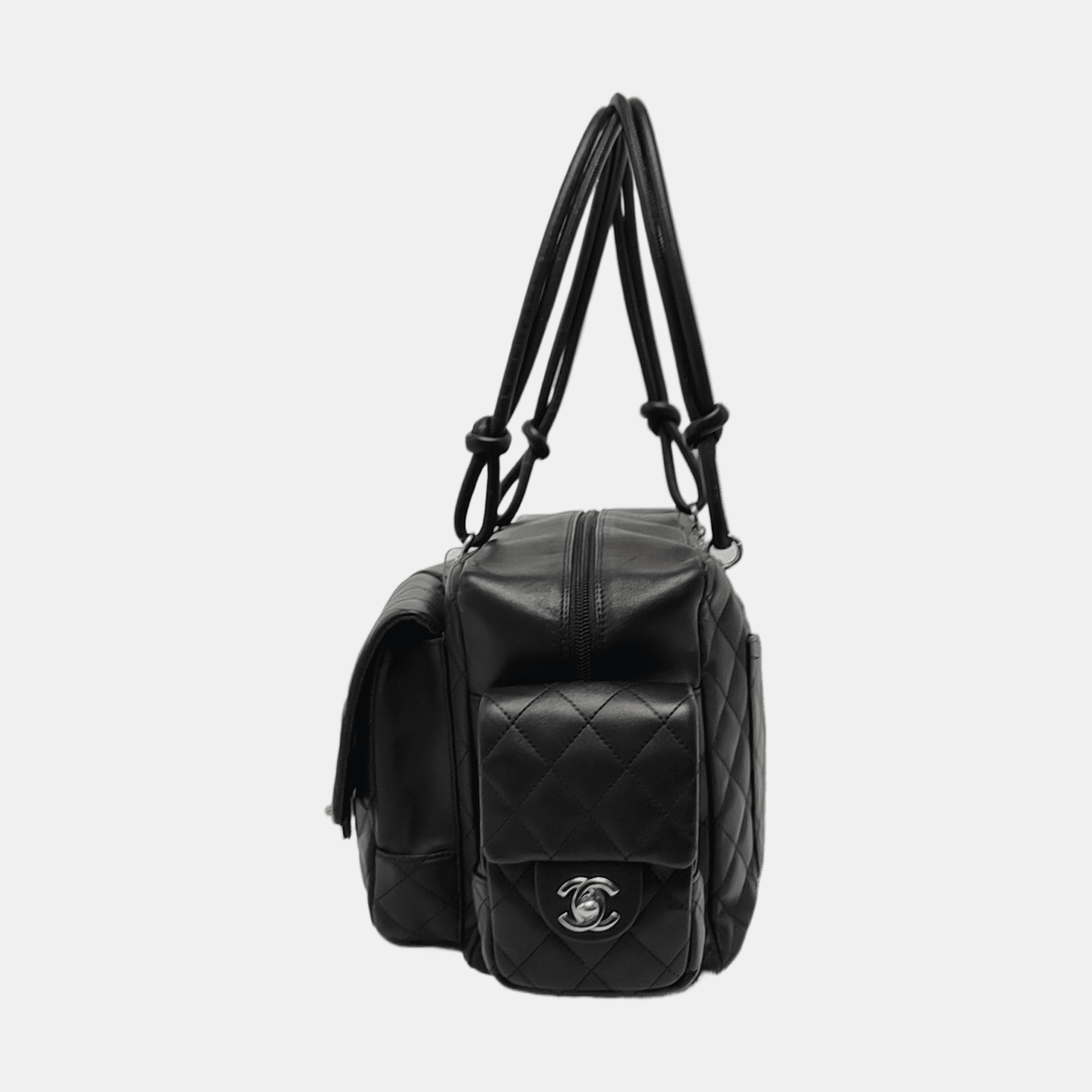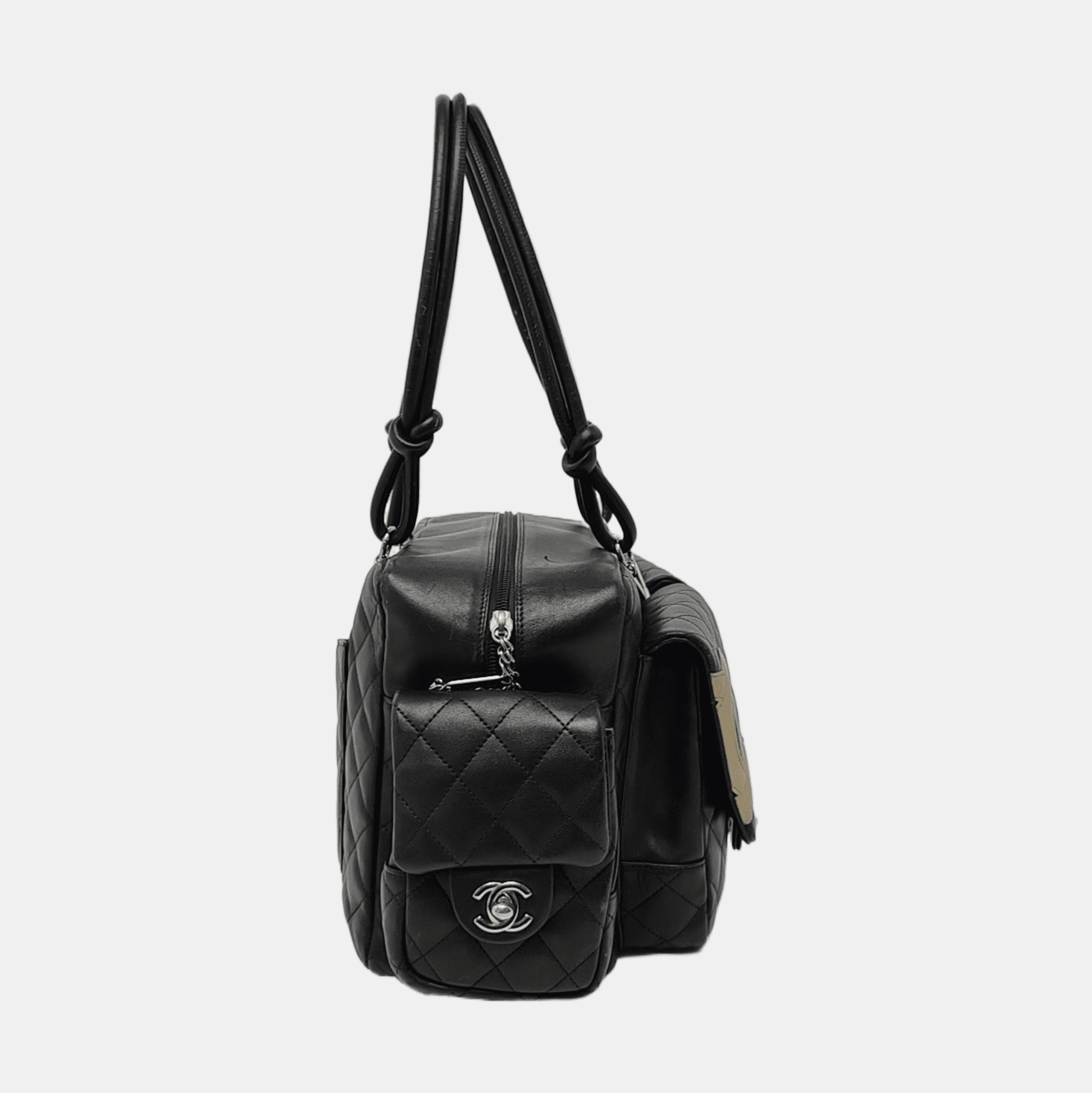 Named after the Cambon street in Paris the Chanel store is located. This highly coveted bag is inspired by classic utility bag.The exterior of this bag features multiple pockets, each with a secure CC turnlock closure, perfect for storing your cell phone and other small belongings. This combination of utilitarian functionality and luxurious design is sure to impress.