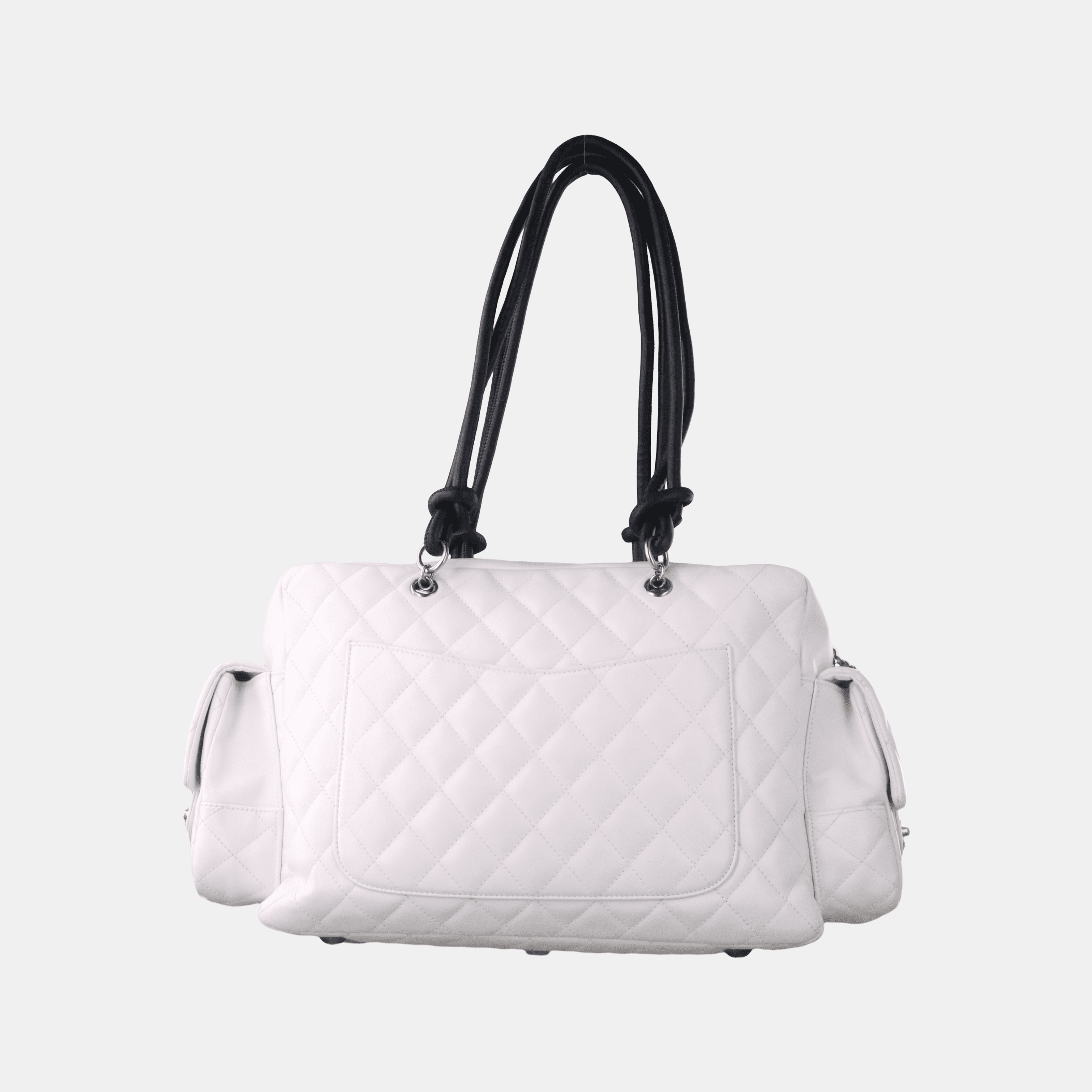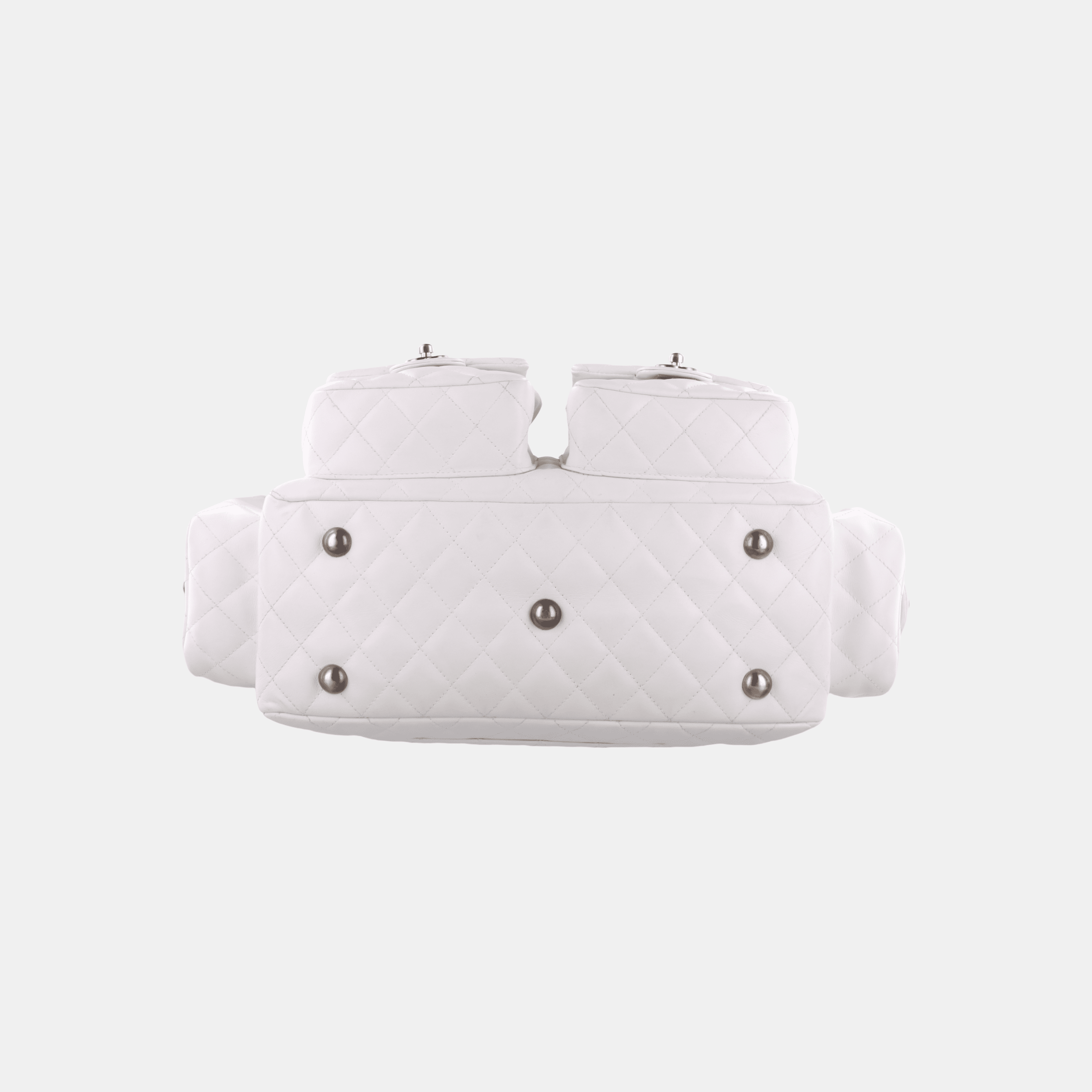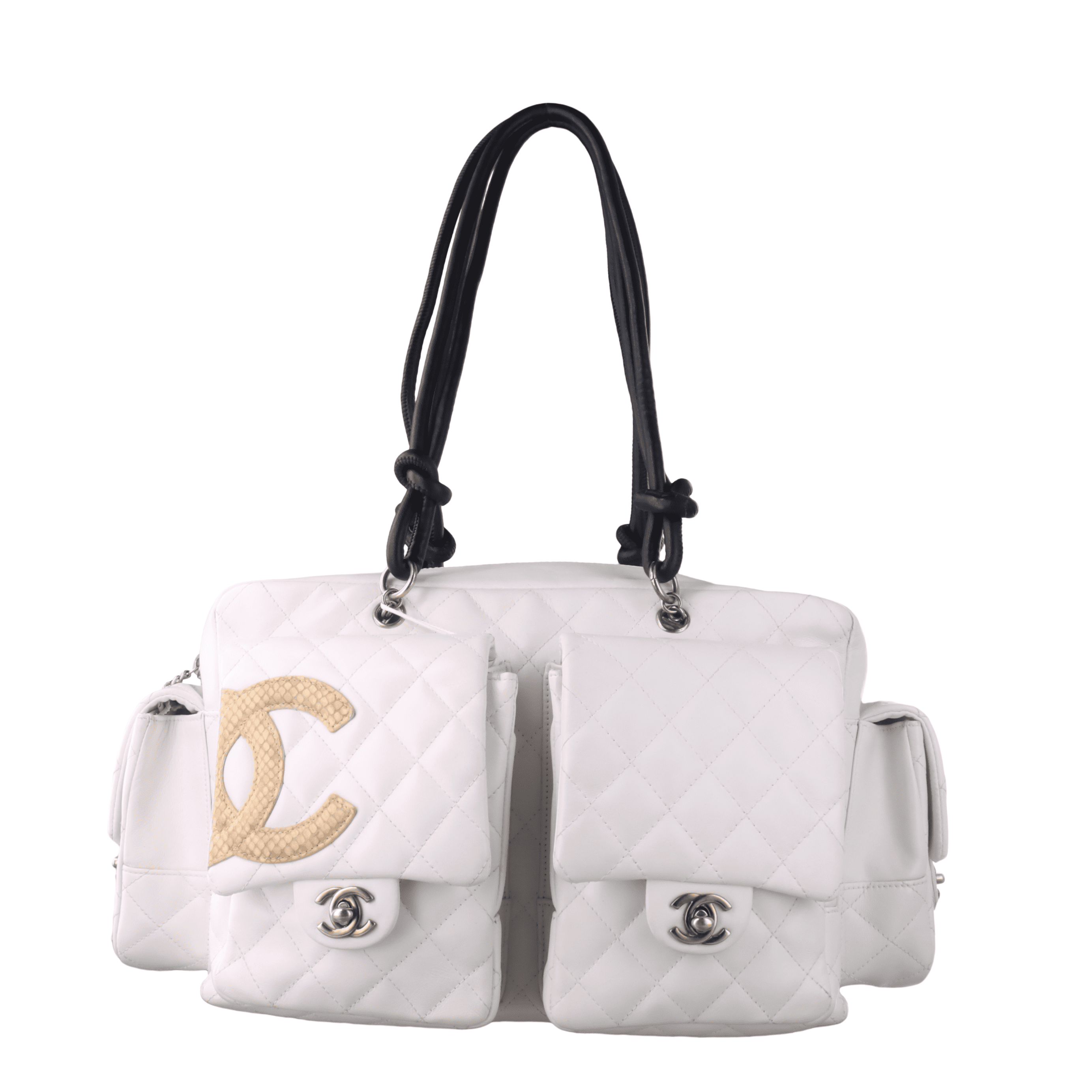 Named after the Cambon street in Paris the Chanel store is located. This highly coveted bag is inspired by classic utility bag.The exterior of this bag features multiple pockets, each with a secure CC turnlock closure, perfect for storing your cell phone and other small belongings. This combination of utilitarian functionality and luxurious design is sure to impress.