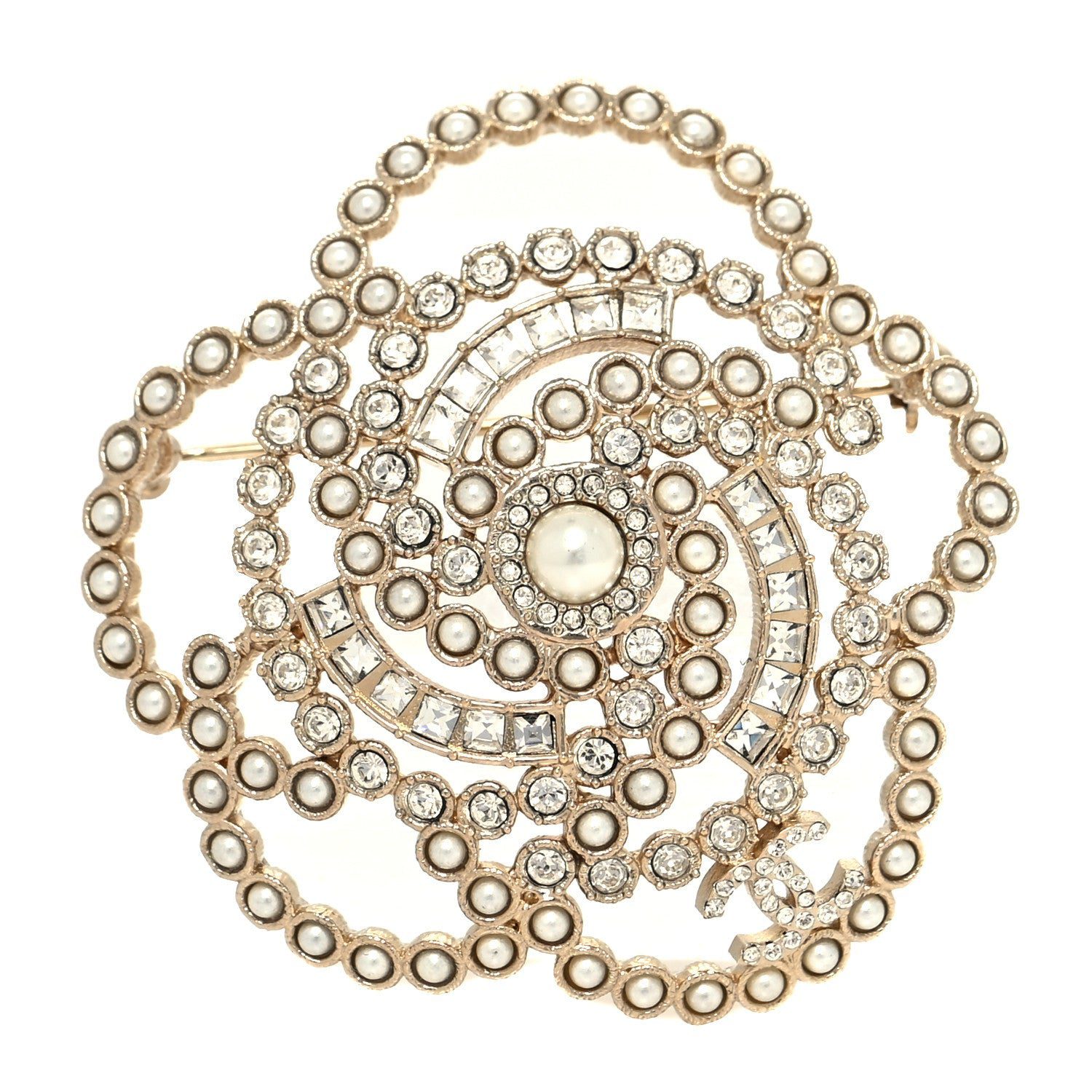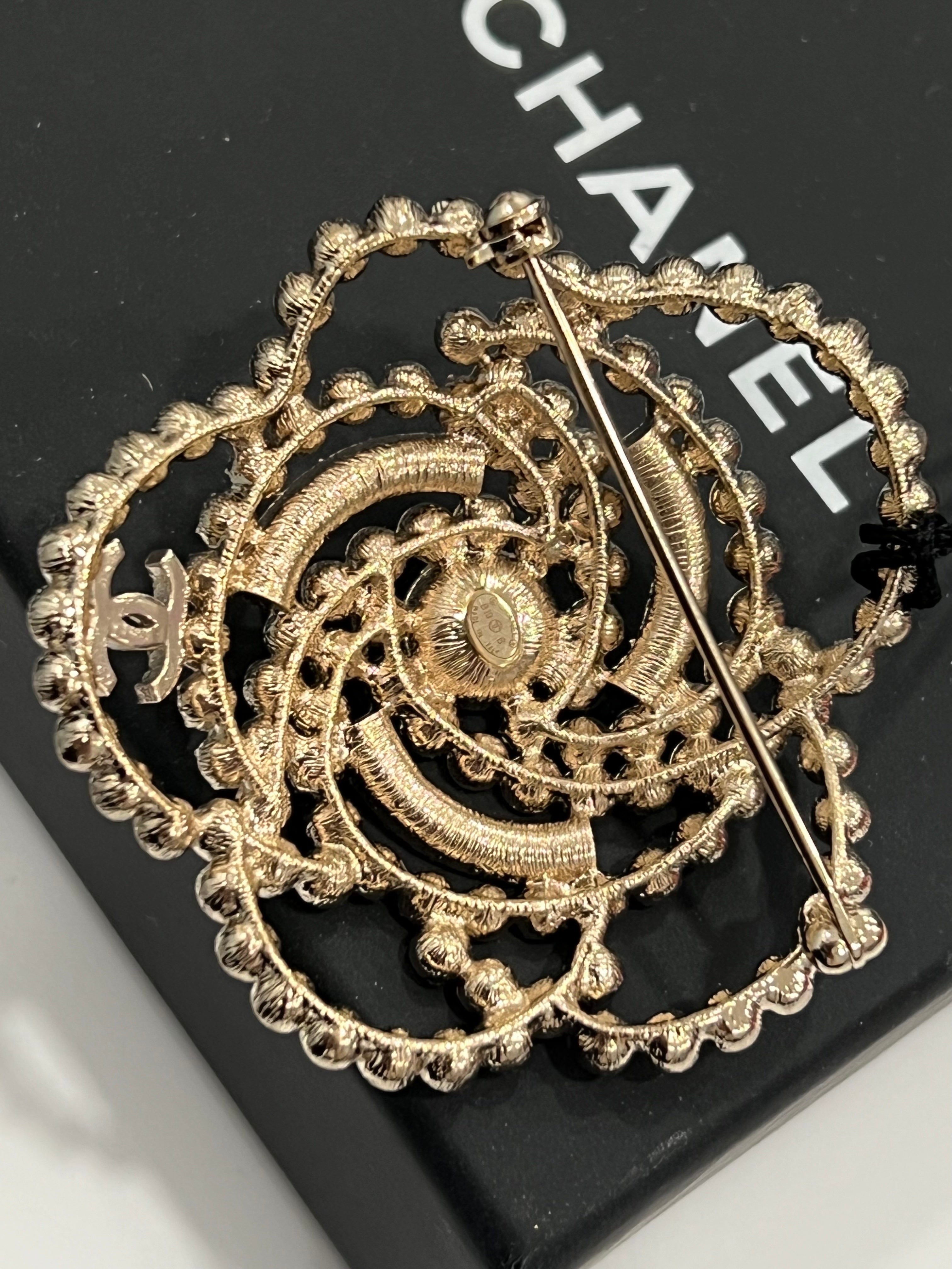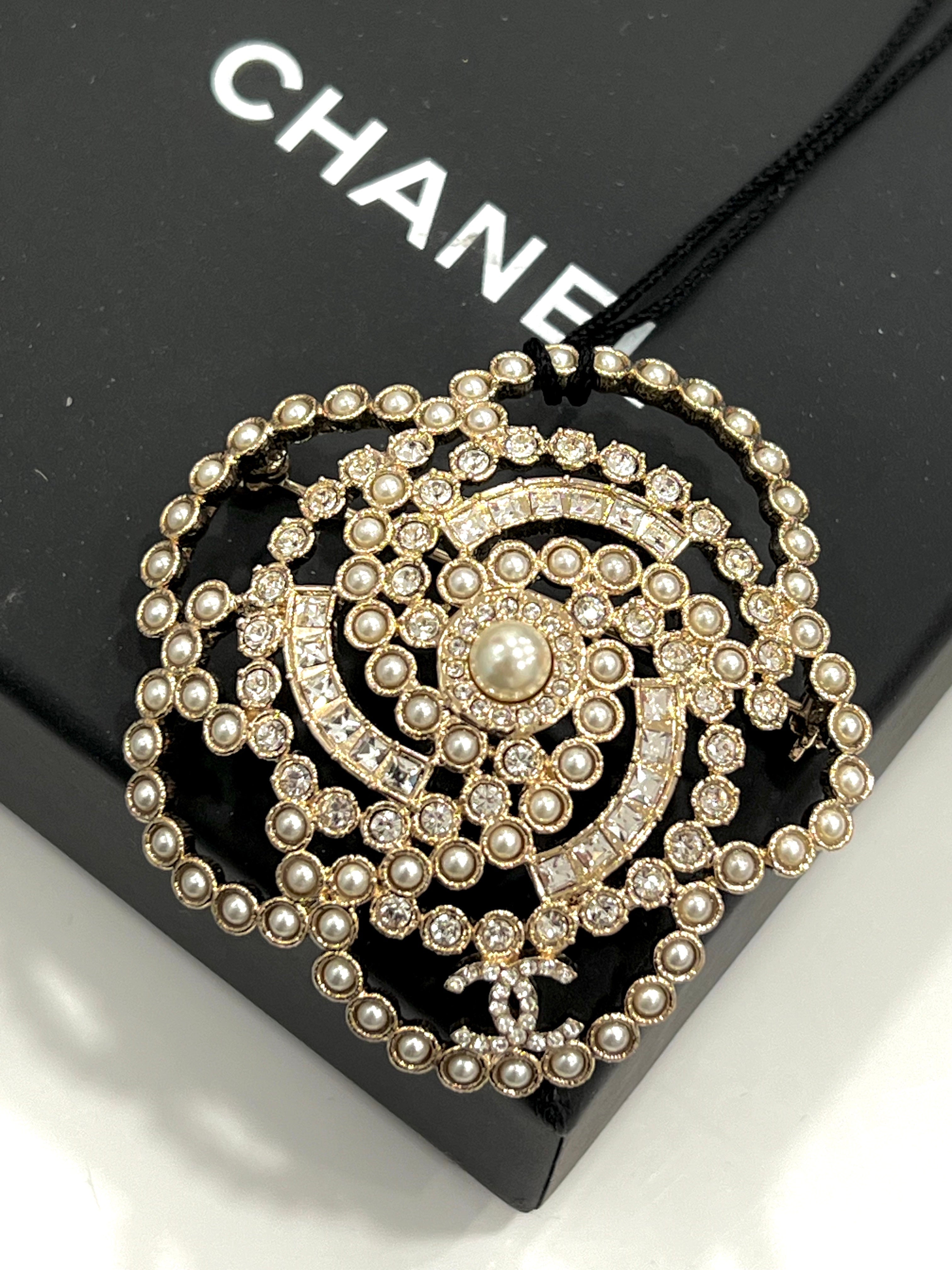 CHANEL CAMELLIA PEARL CRYSTAL LACE BROOCH