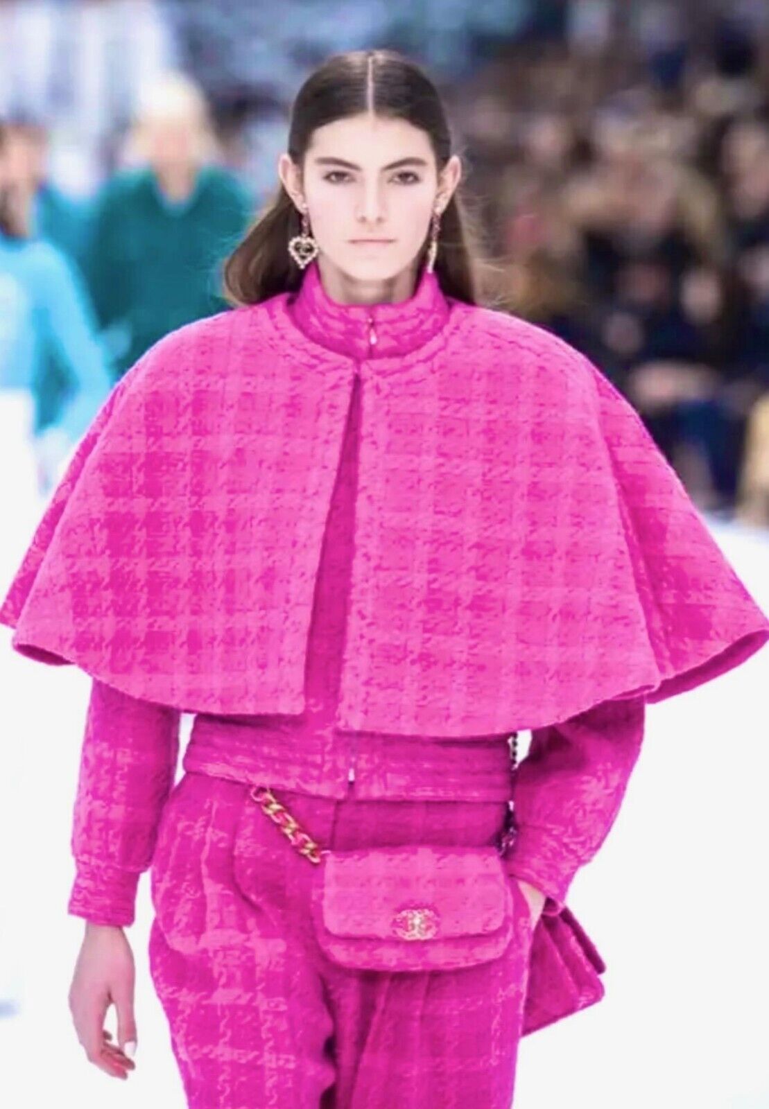 The CHANEL Camellia Tweed Cape Jacket is a high-end women’s garment designed and produced by the luxury fashion brand CHANEL. This jacket is made from a high-quality tweed fabric that has a soft texture and features the signature CHANEL camellia embroidered throughout the fabric.
