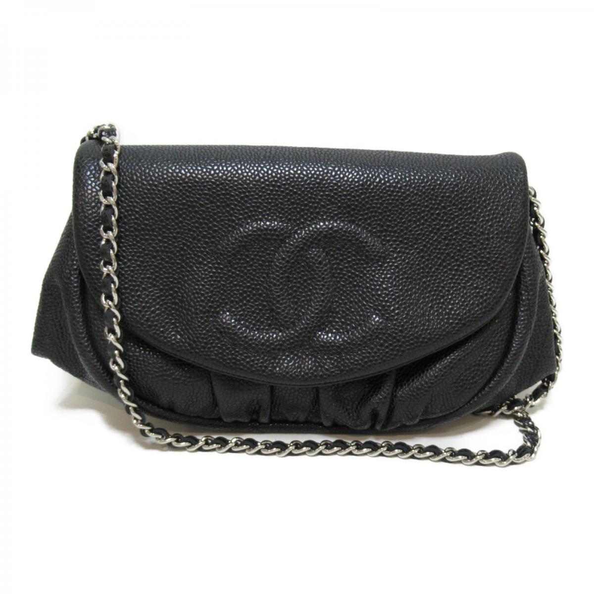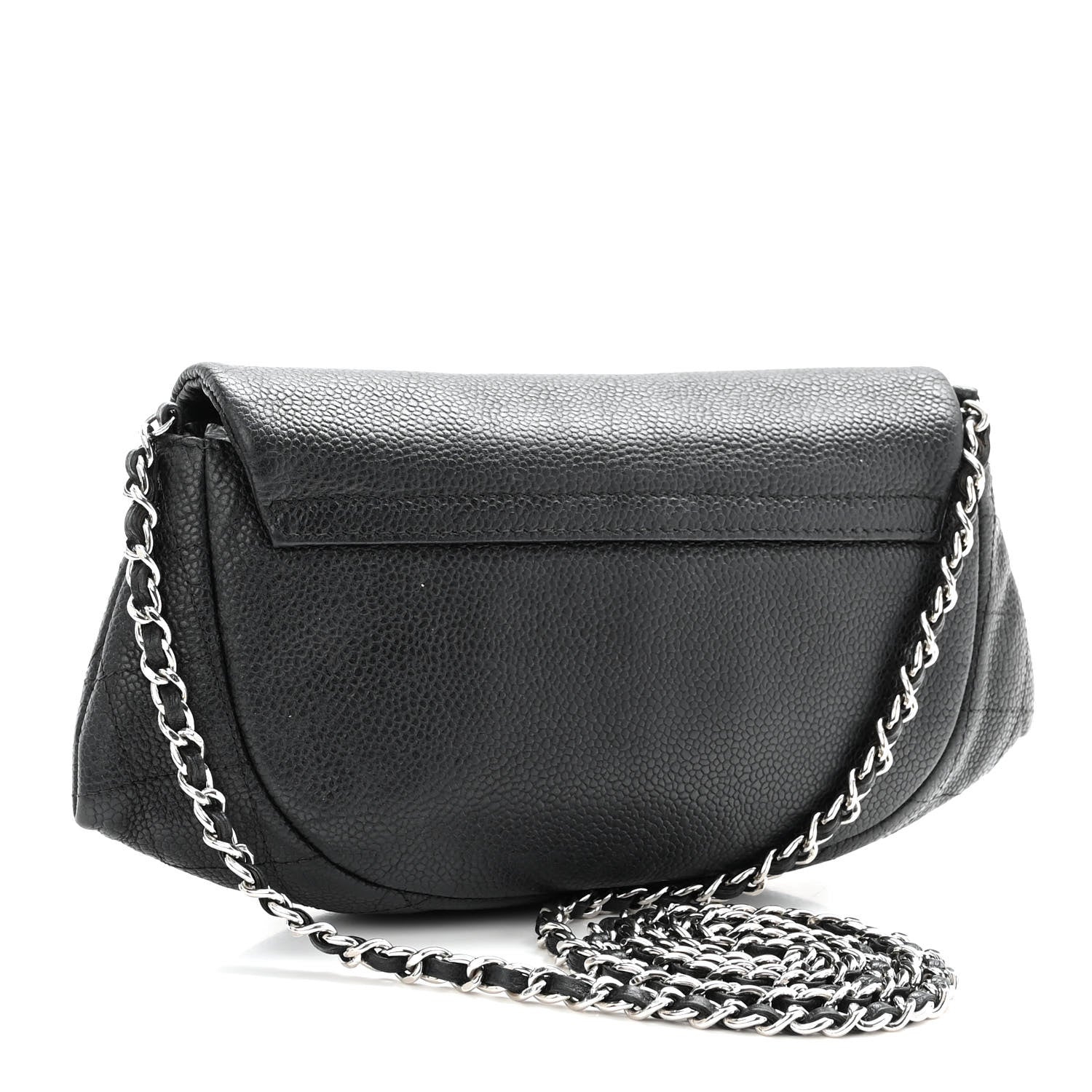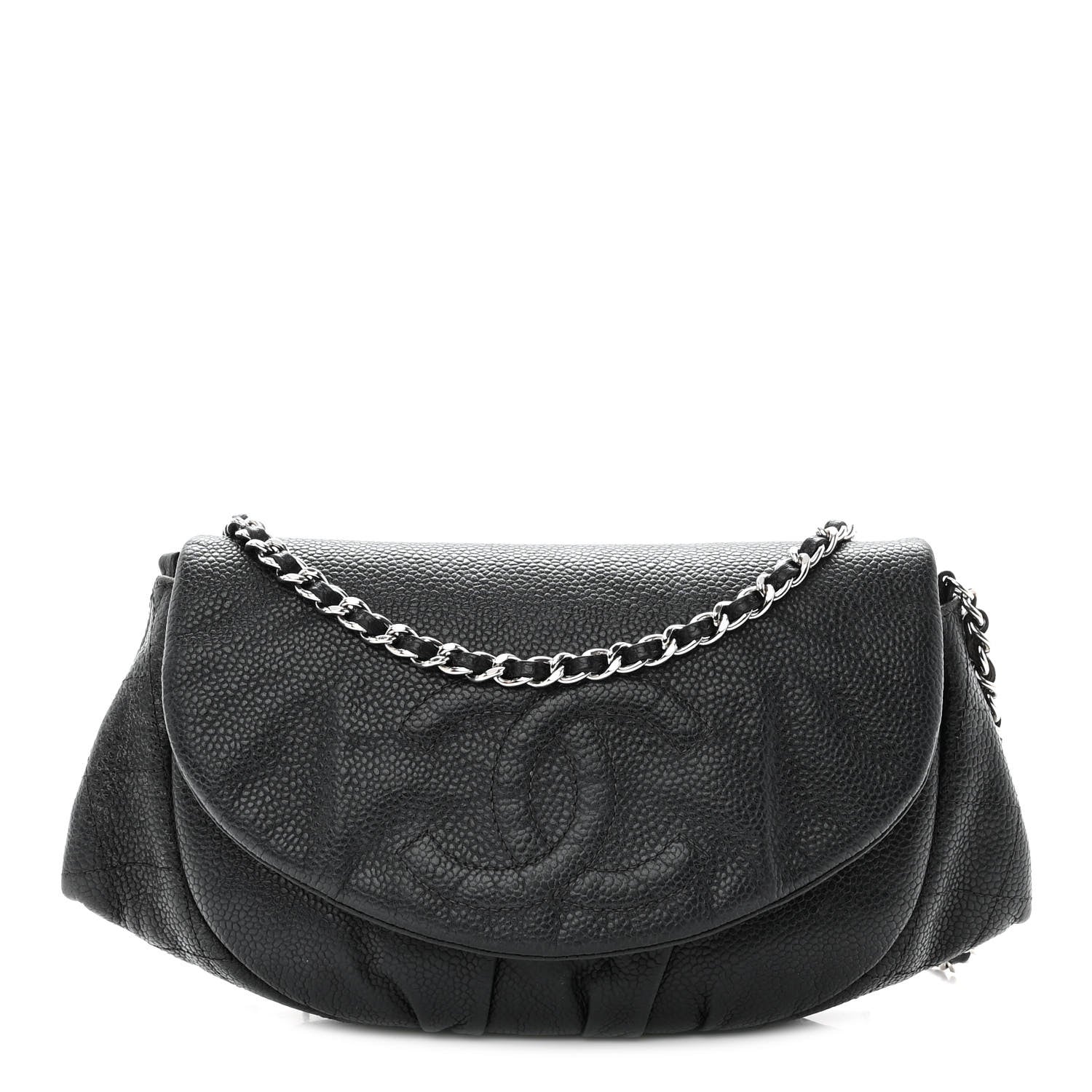 CHANEL CAVIAR LEATHER HALF MOON WALLET ON A CHAINCHANEL CAVIAR LEATHER HALF MOON WALLET ON A CHAIN