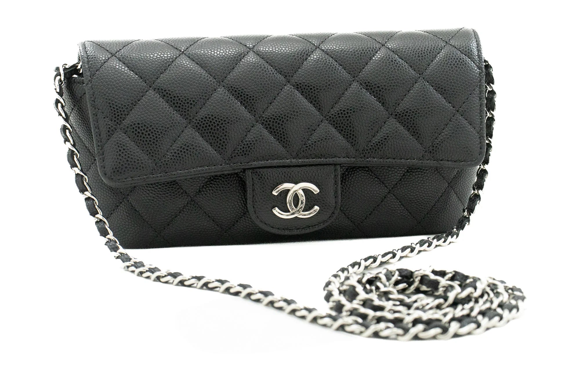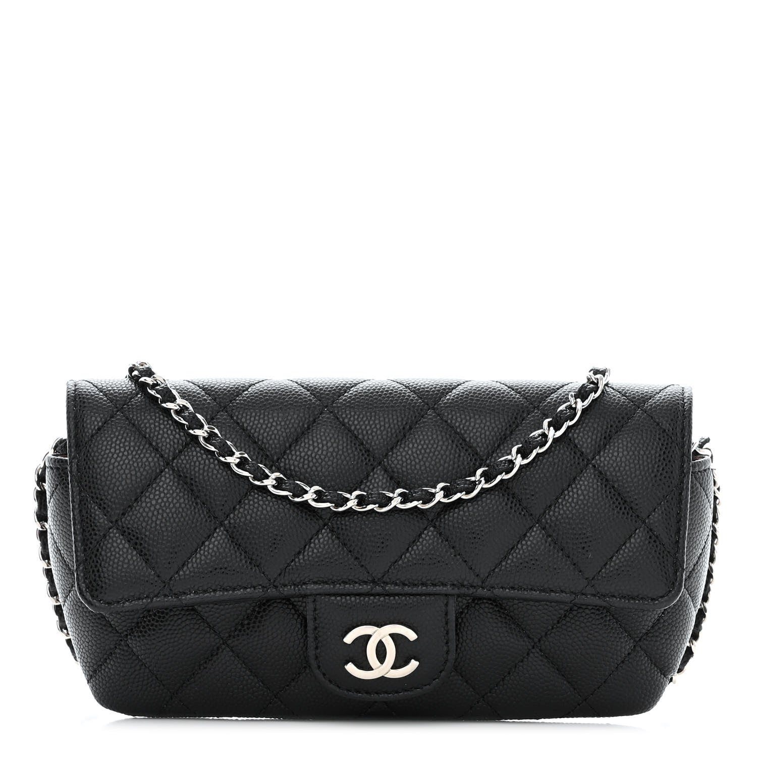 CHANEL CAVIAR QUILTED GLASSES CELL PHONE CASE WITH CHAIN