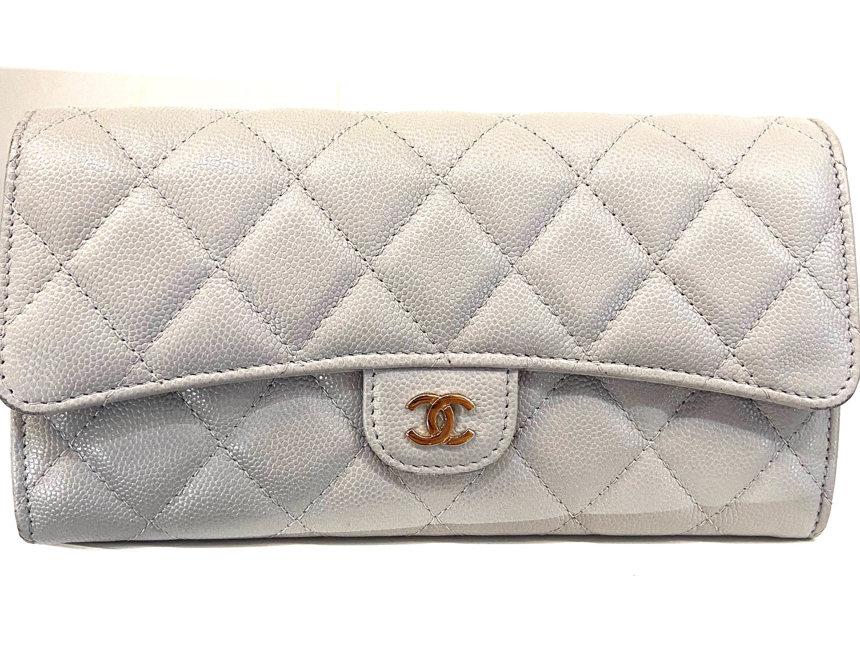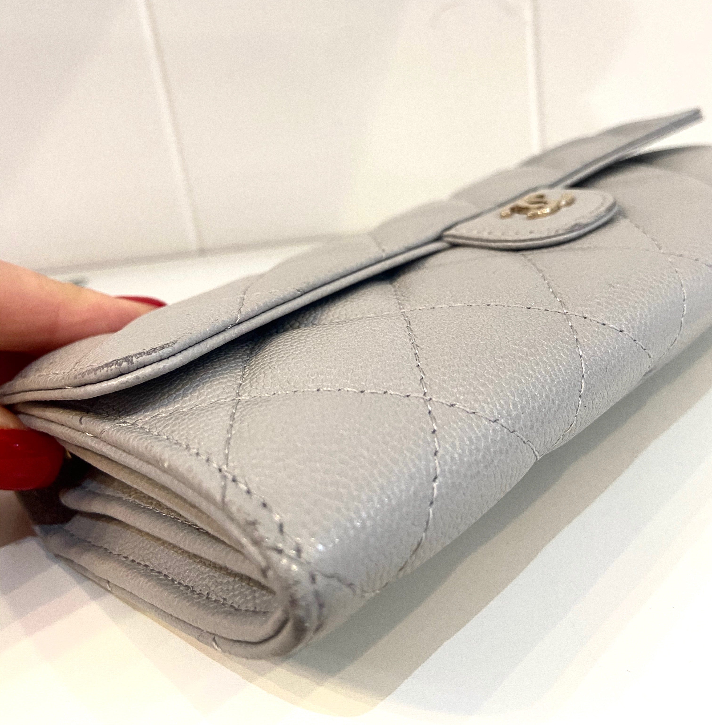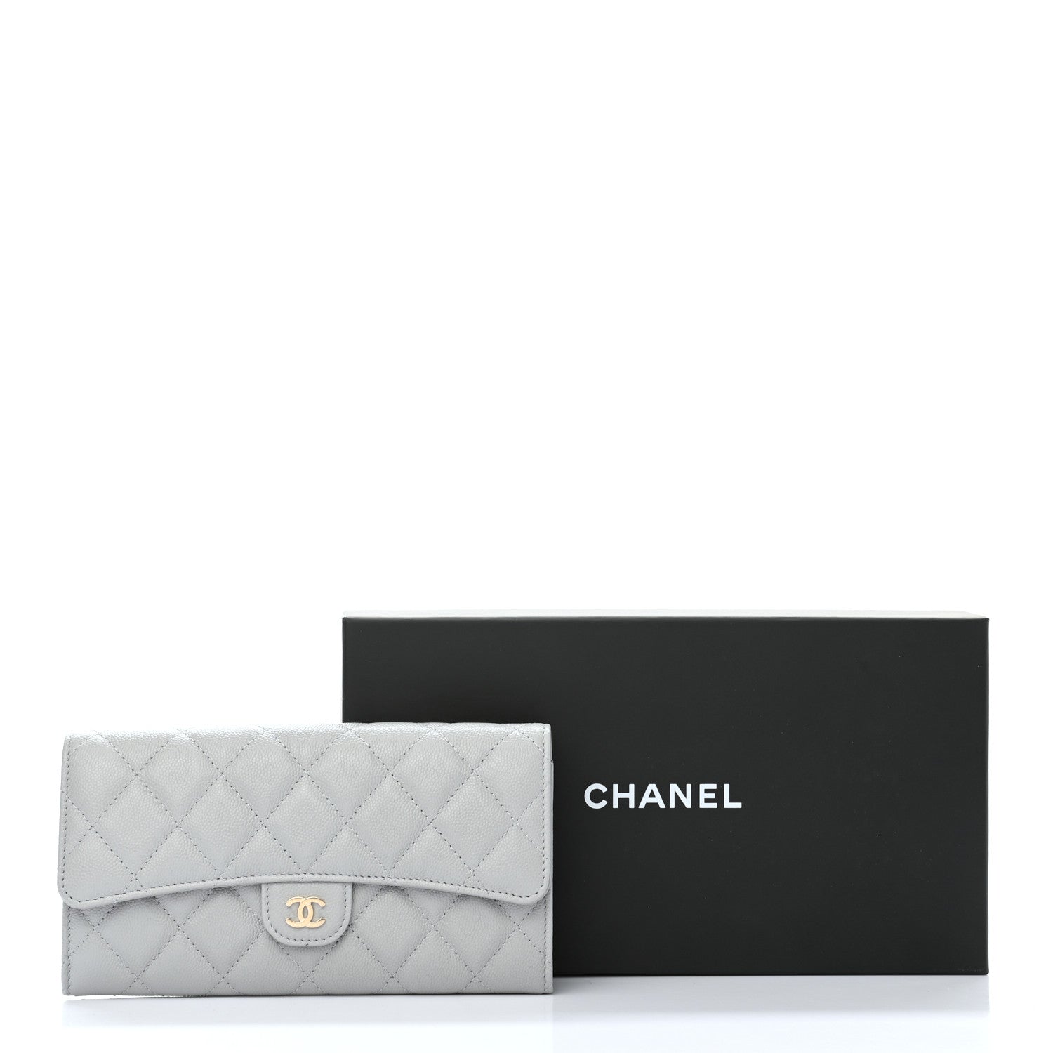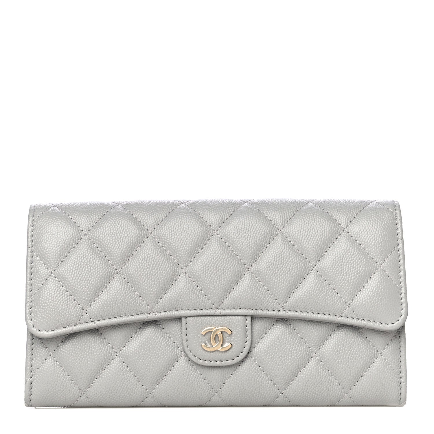 CHANEL CAVIAR QUILTED LARGE FLAP WALLET LIGHT GREY