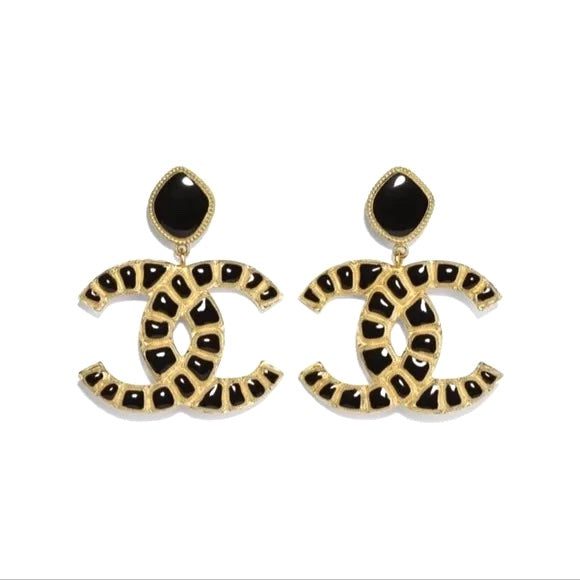 Chanel Large CC Logo Clip-on Earrings in Yellow Gold Brass  color and Black Onyx.