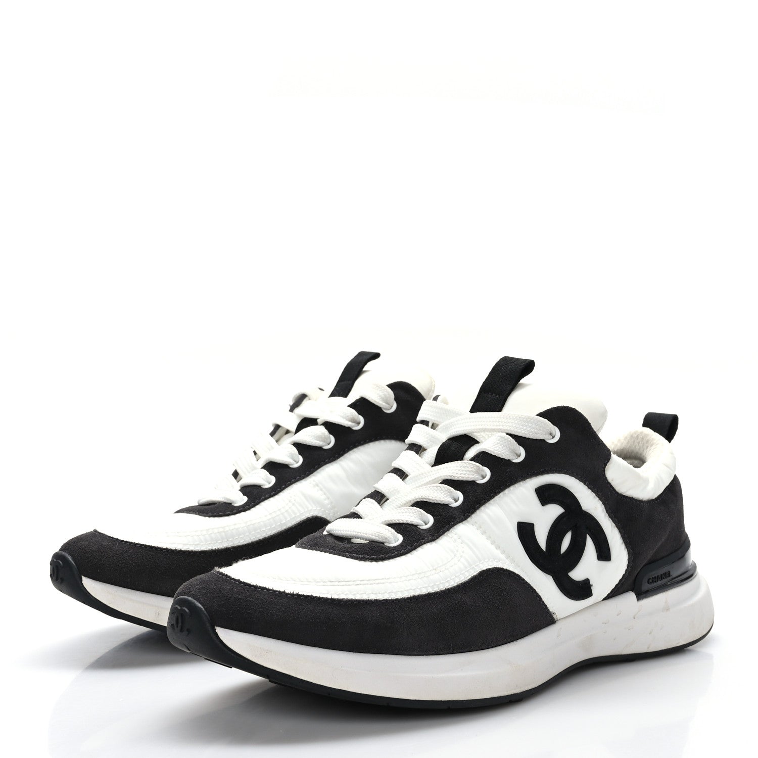 CHANEL CC CALFSKIN SUEDE & NYLON SNEAKERS