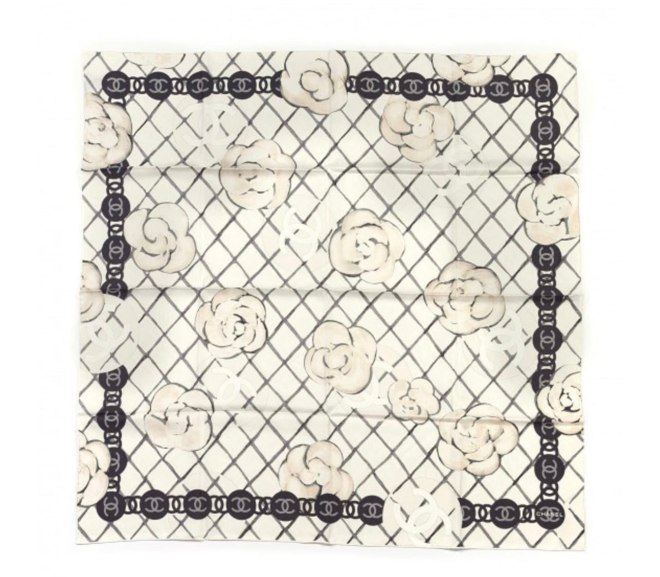CHANEL CC CAMELLIA SQUARE SILK SCARF