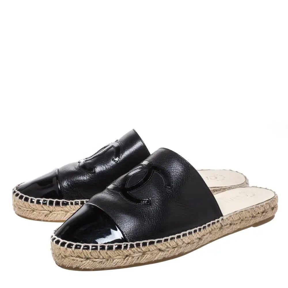 Crafted from leather, these black mules feature glossy cap toes, the CC logo on the uppers, and espadrille detailing. Chanel understands your need for comfort and style in these flats.