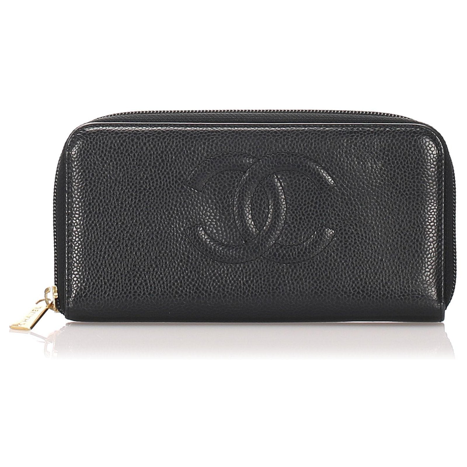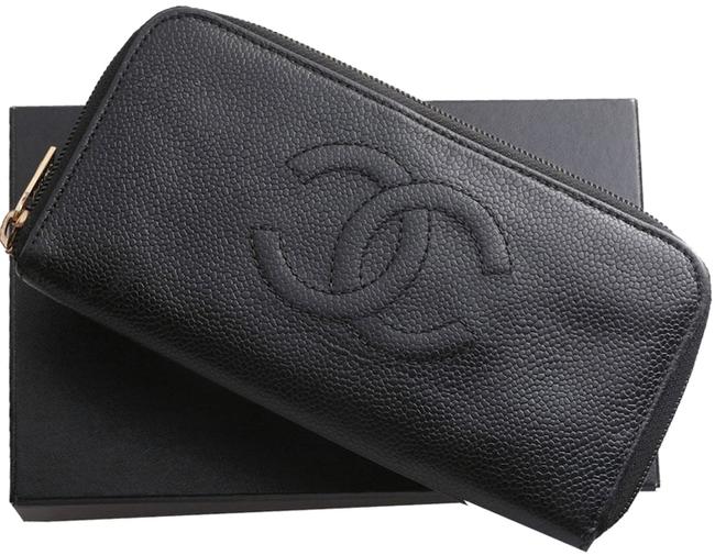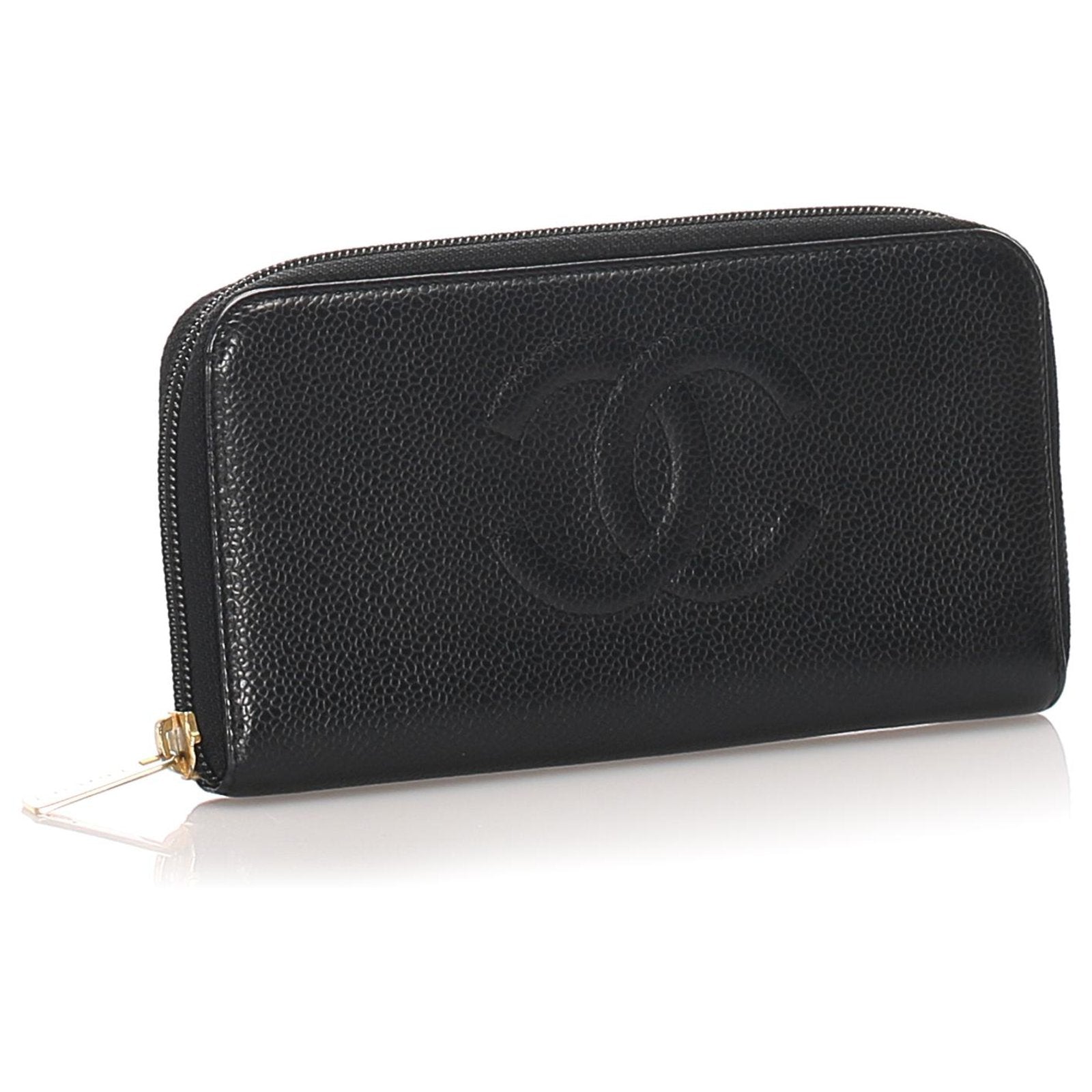 Chanel CC Caviar Leather Zip Around Wallet