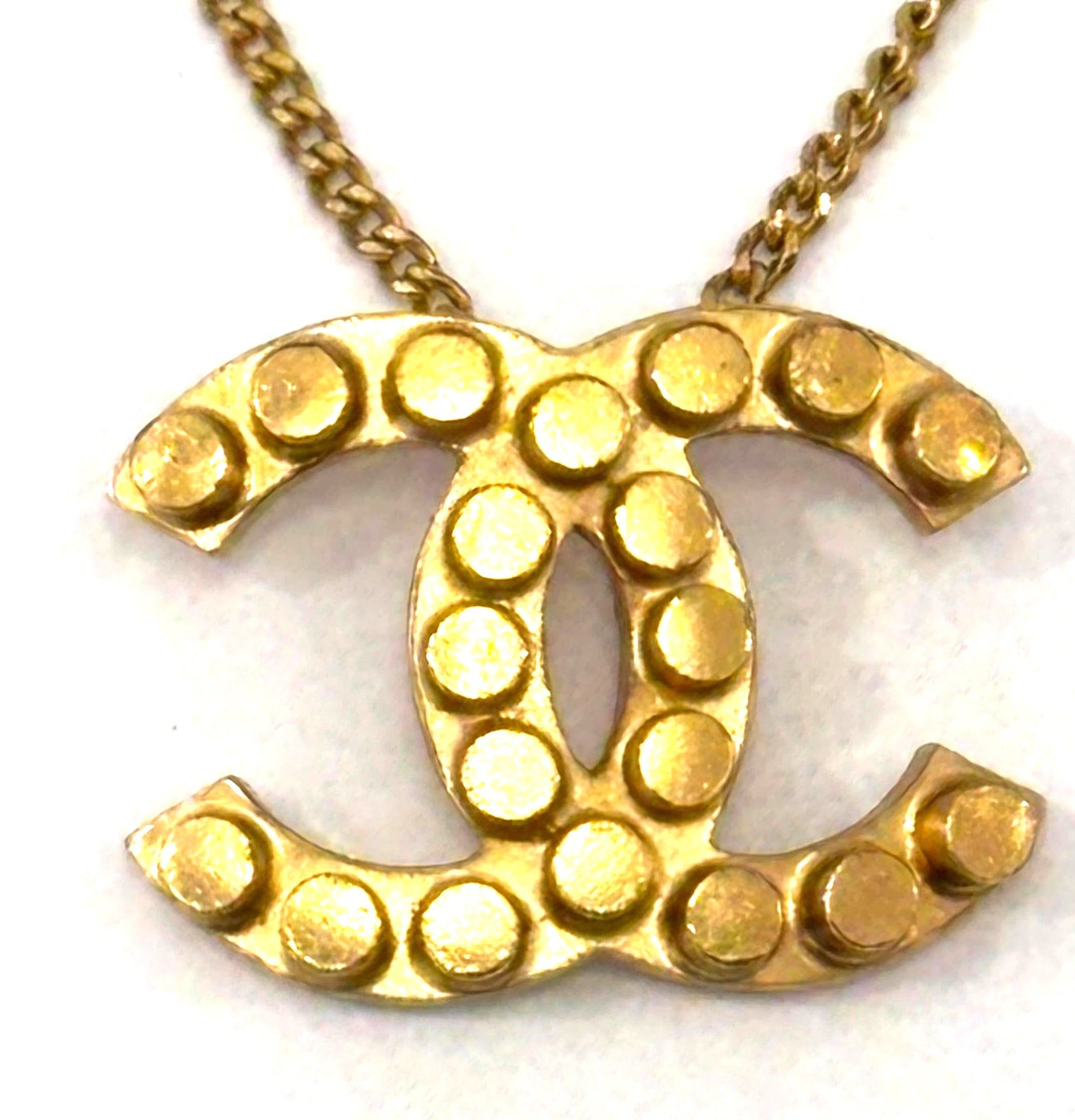 This Elegant Chanel Necklace showcases the iconic CC pendant in a luxurious Gold-tone finish. A timeless piece that embodies the sophistication and style of the House of Chanel, it adds a touch of understated glamour to any look.