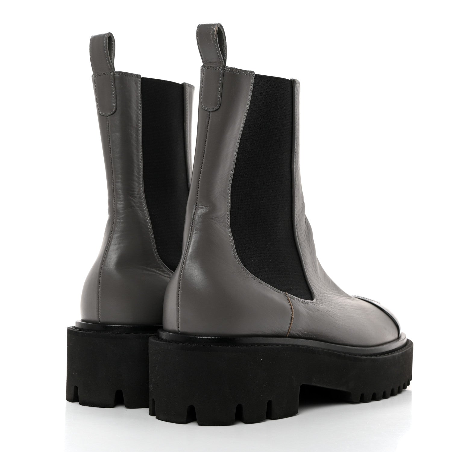These Stylish Ankle Boots are Crafted of Luxurious Calfskin Leather in Gray.