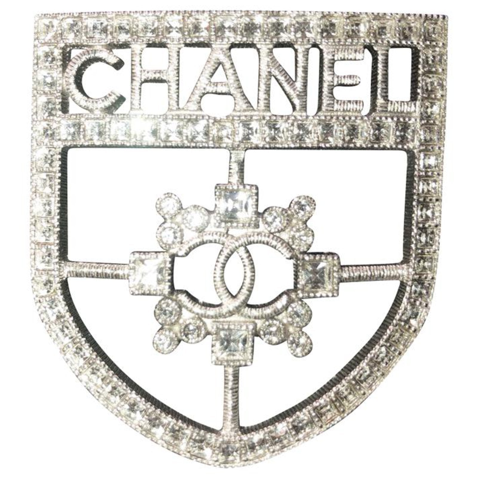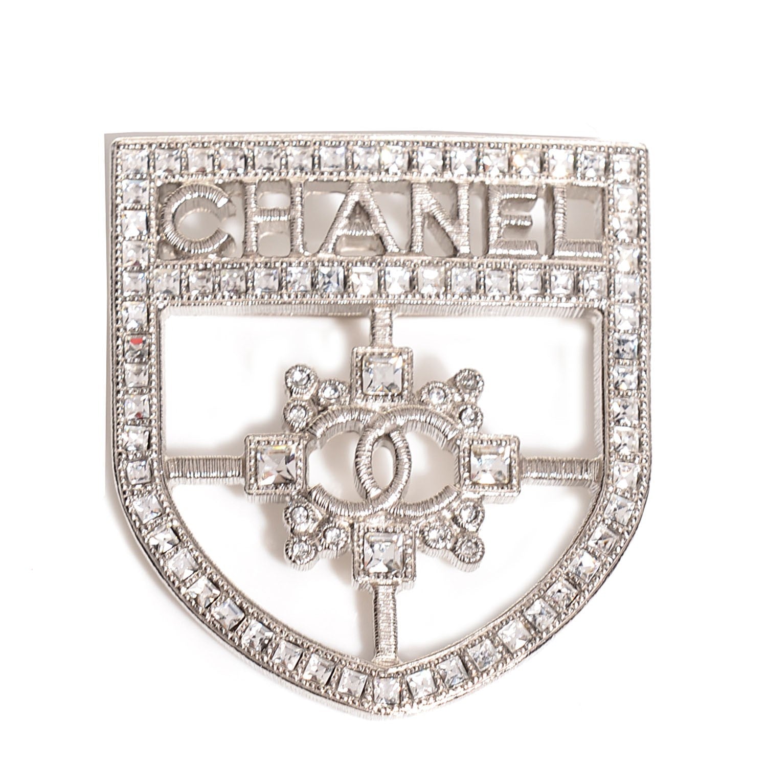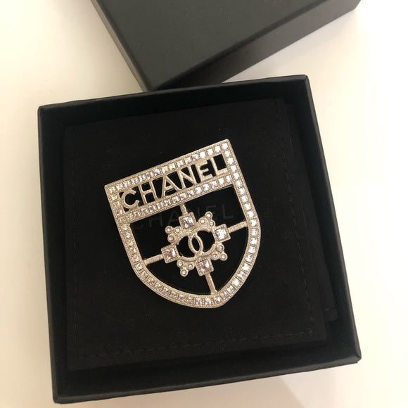 CHANEL CC Crystal Crest Shield Armor BroochCHANEL CC Crystal Crest Shield Armor Brooch