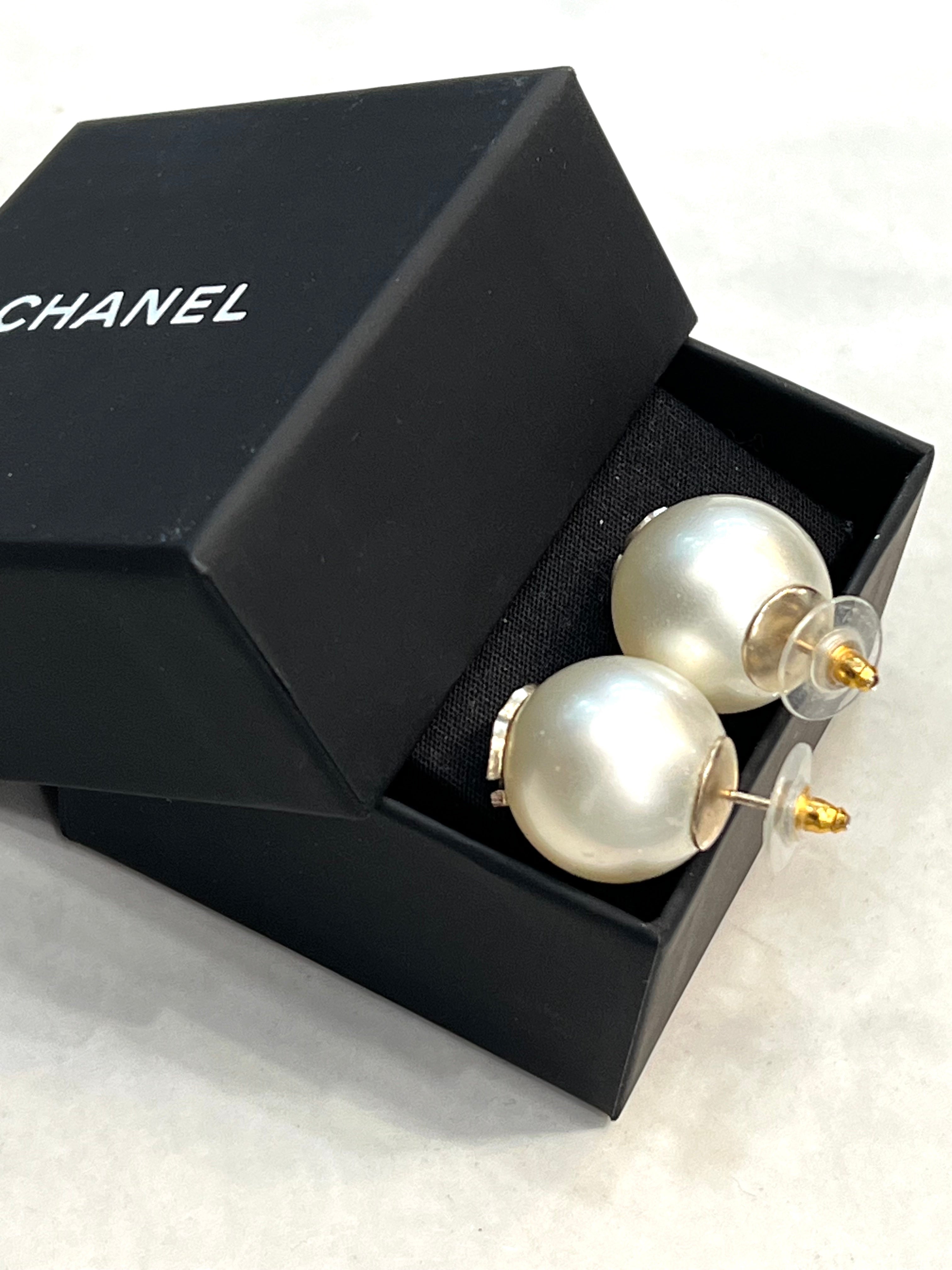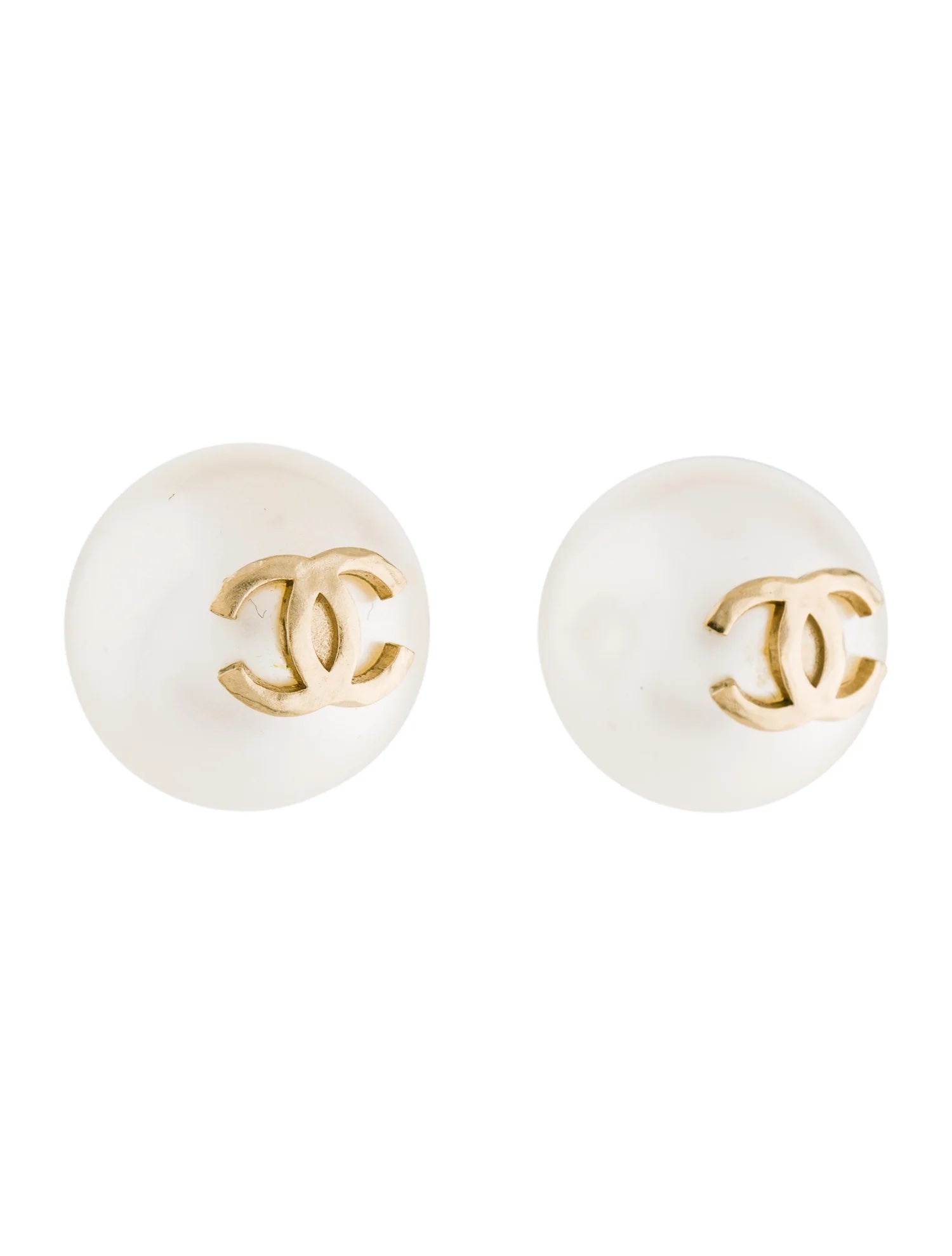 Classic Chanel Earrings, crafted from faux pearls and feature the iconic CC logo in gold-tone on the front. They are complete with push backs.