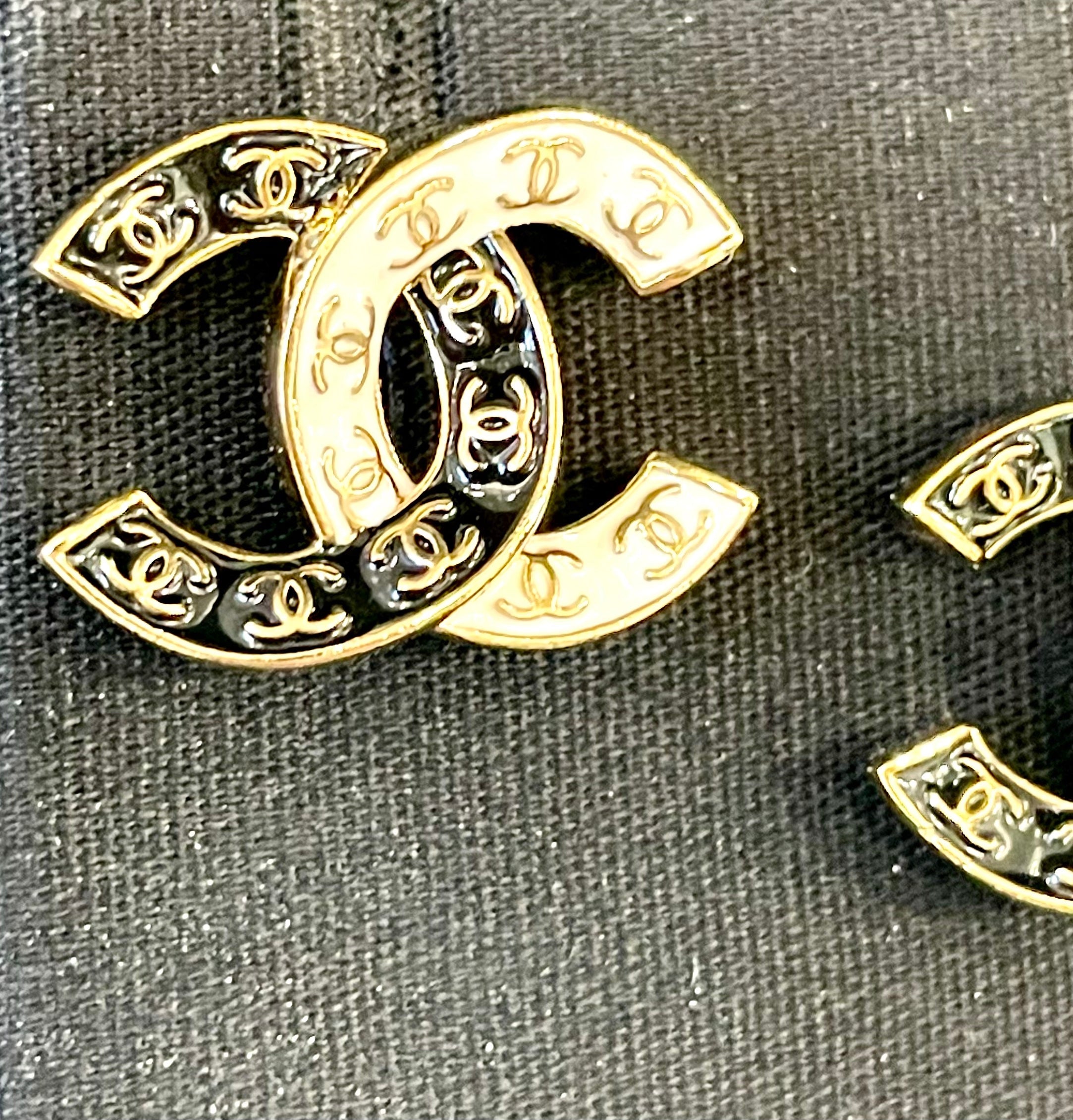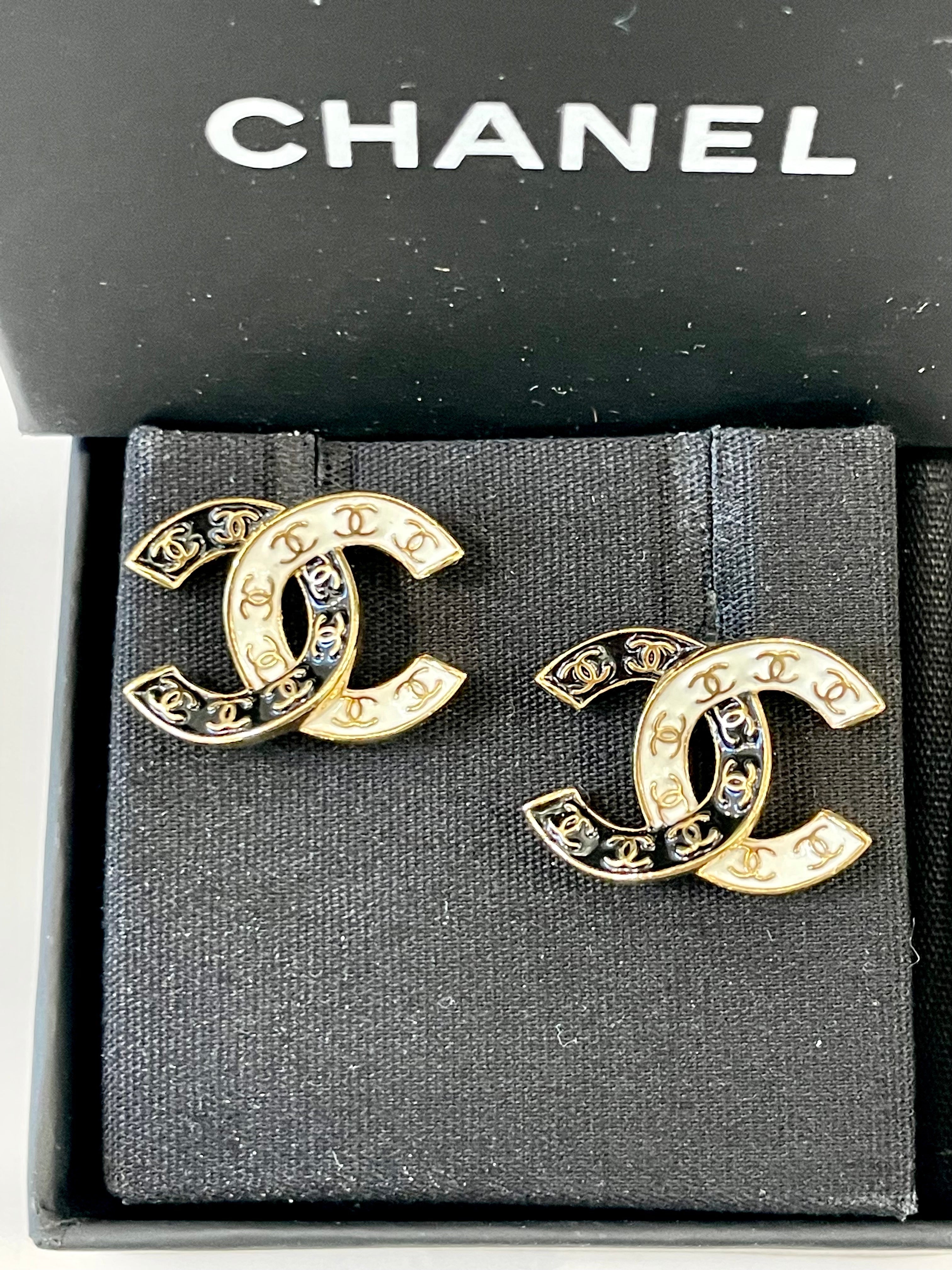 CHANEL CC GOLD TONE & ENAMEL STUD EARRINGS