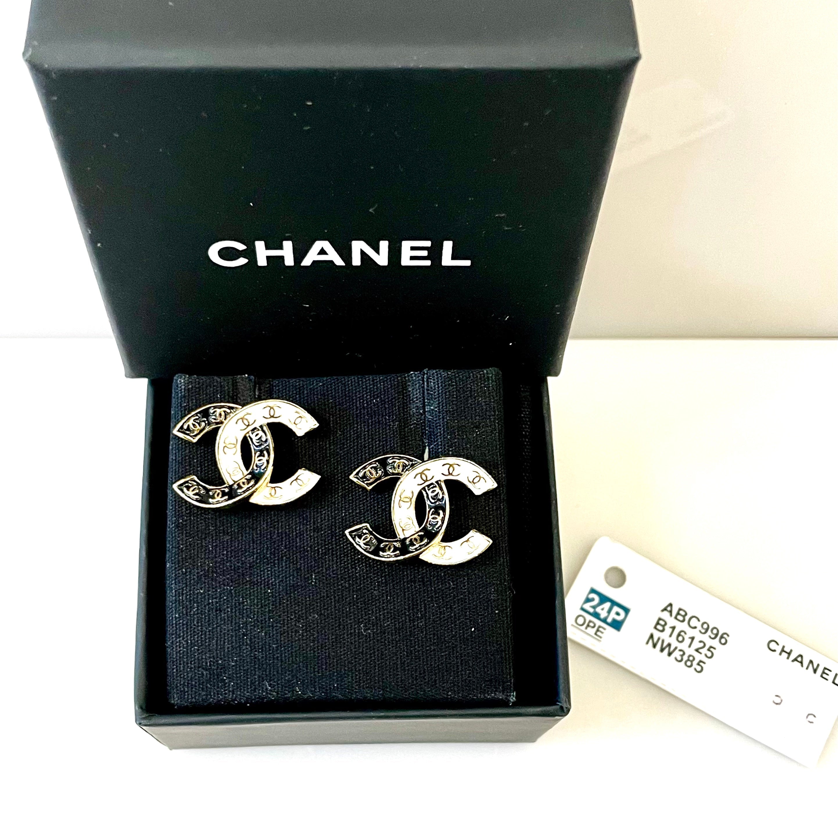Introducing the epitome of timeless elegance: the Chanel CC Stud Earrings in Gold Tone and Black & White Enamel. Exuding the unmistakable charm of Chanel, these earrings are a testament to the brand’s enduring legacy of sophistication and style.