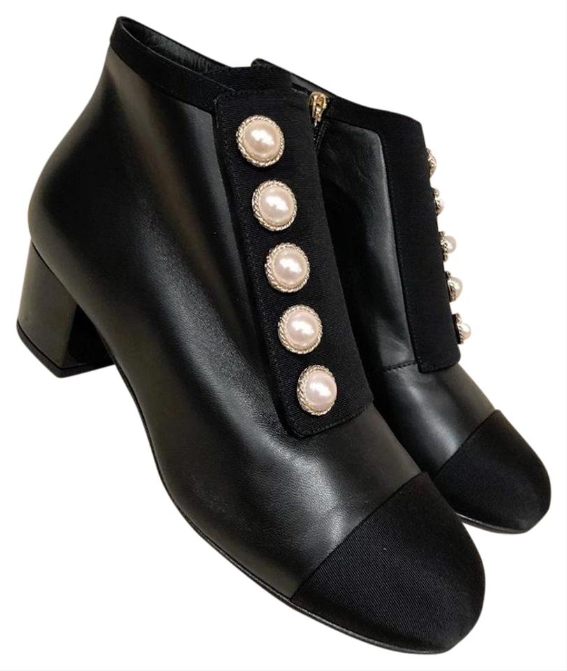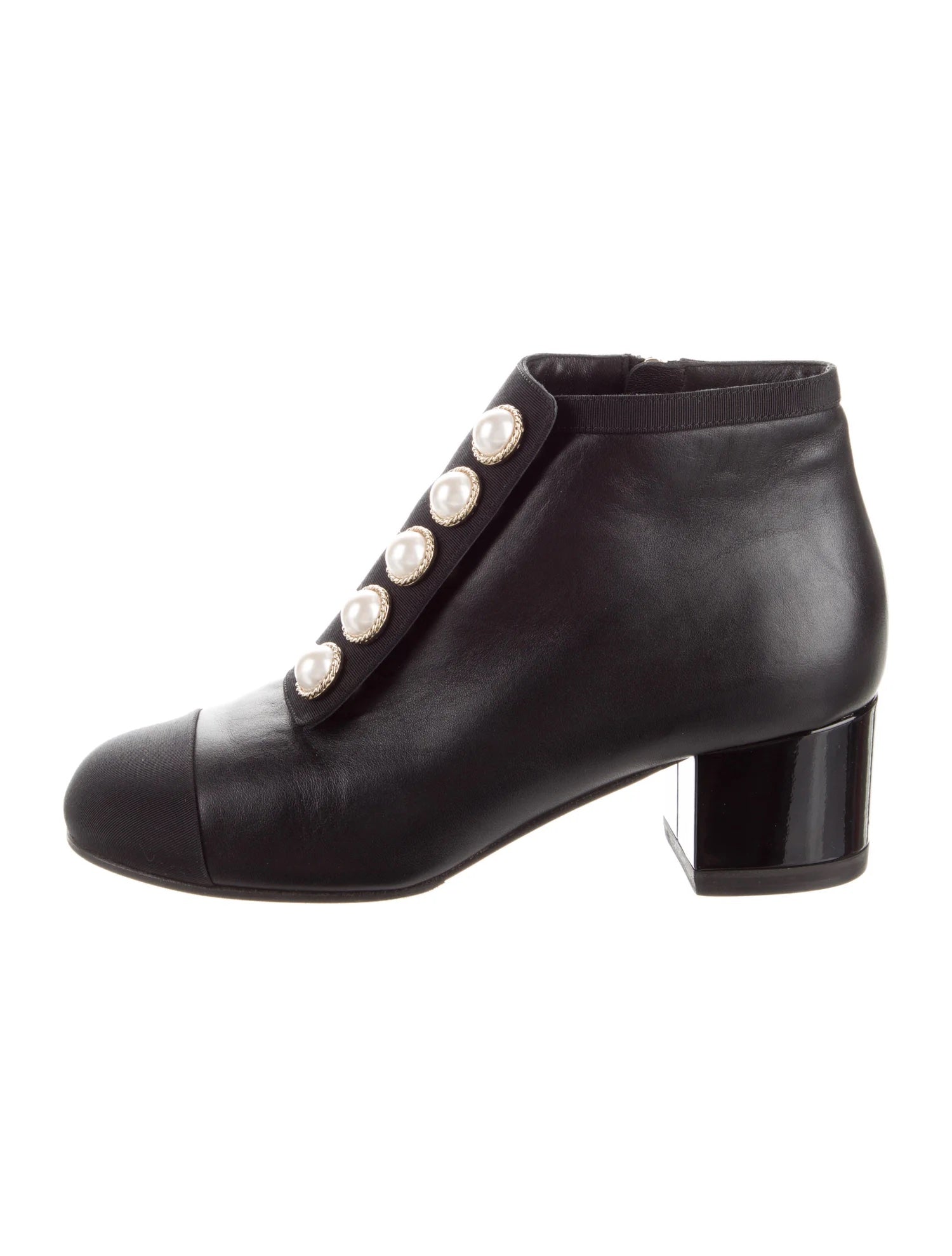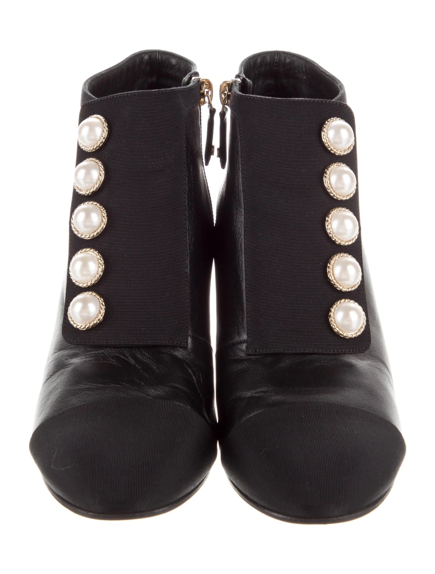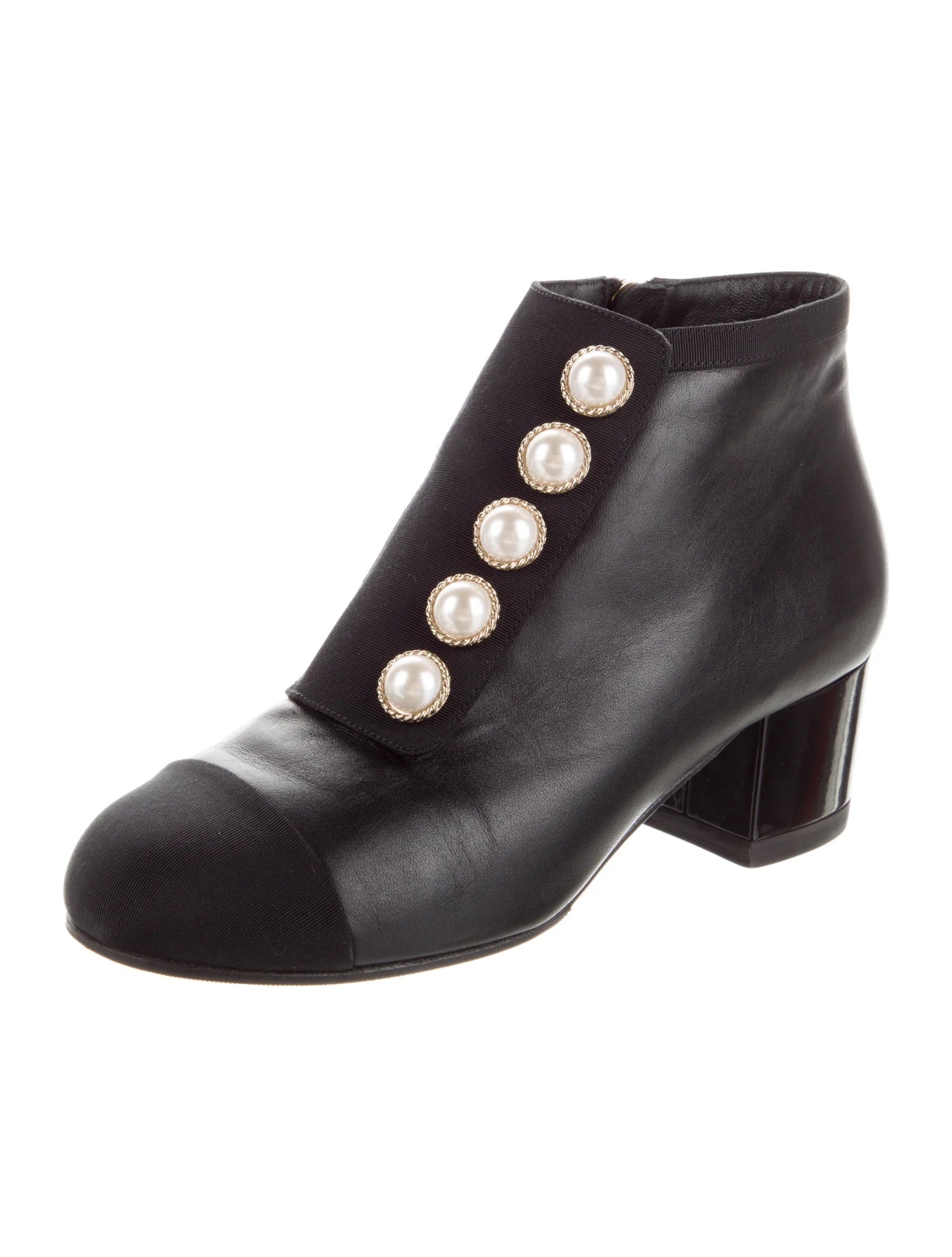 CHANEL CC INTERLOCK PEARL ANKLE BOOTS